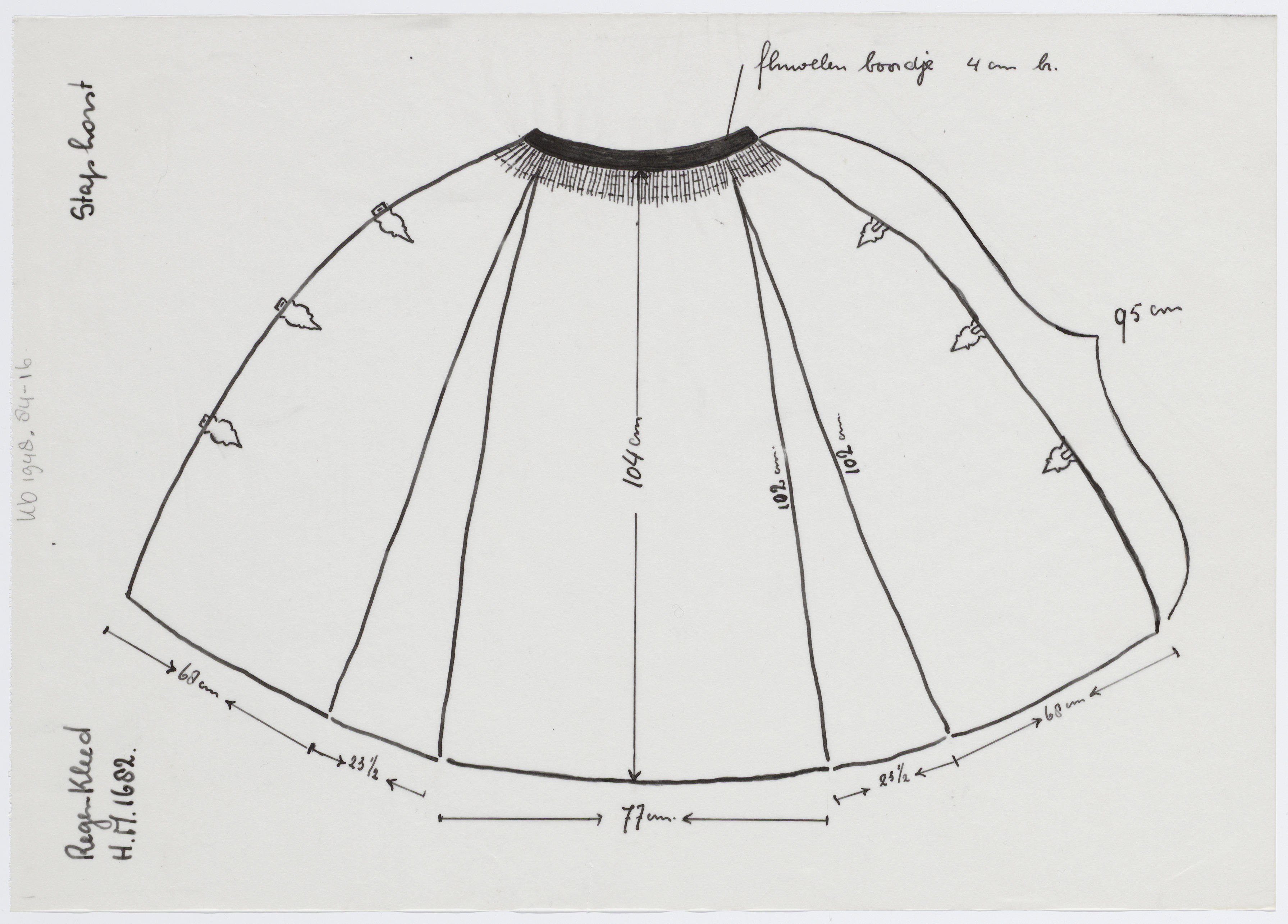 Tekening van een onderrok, Staphorst (opmetingsteken...