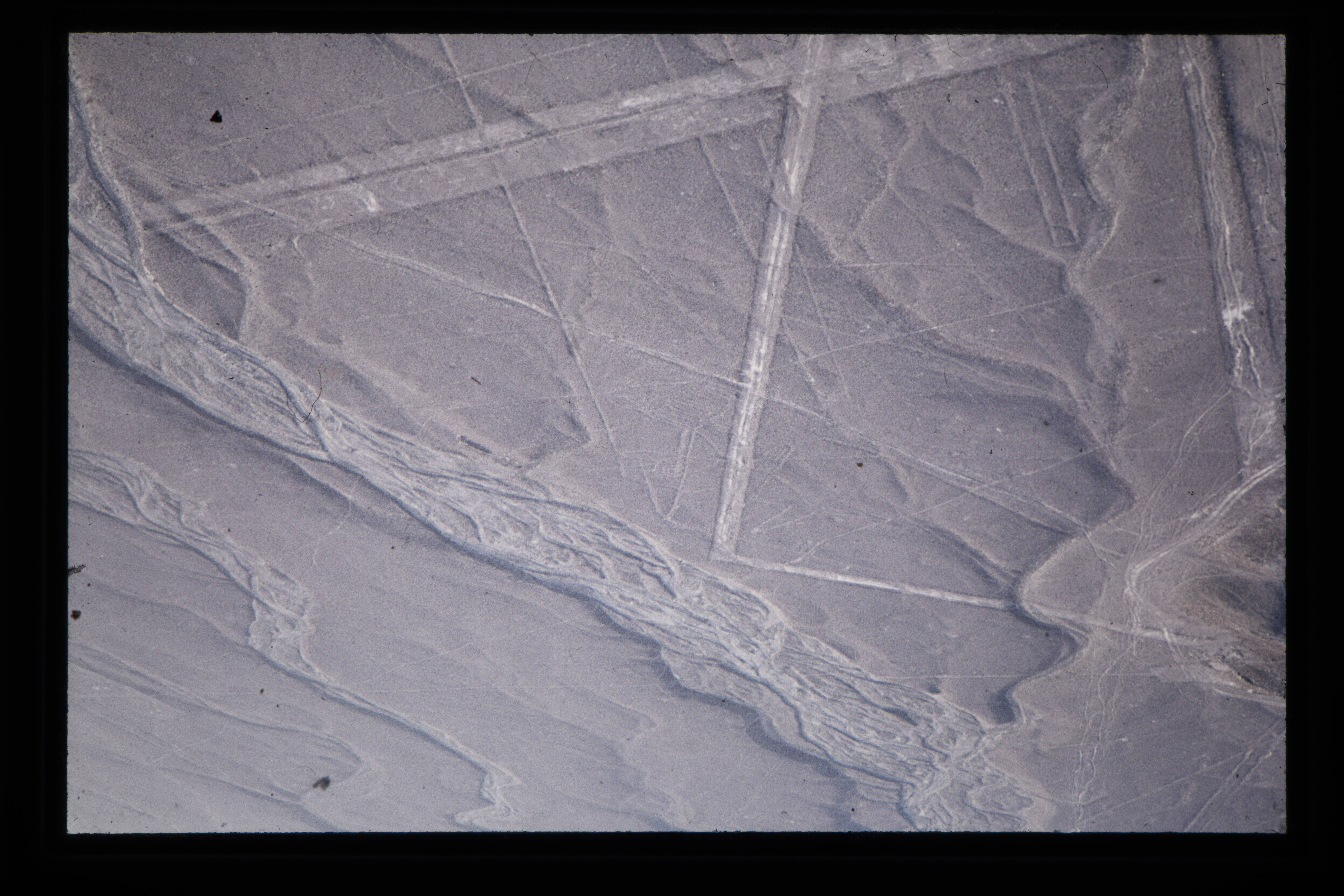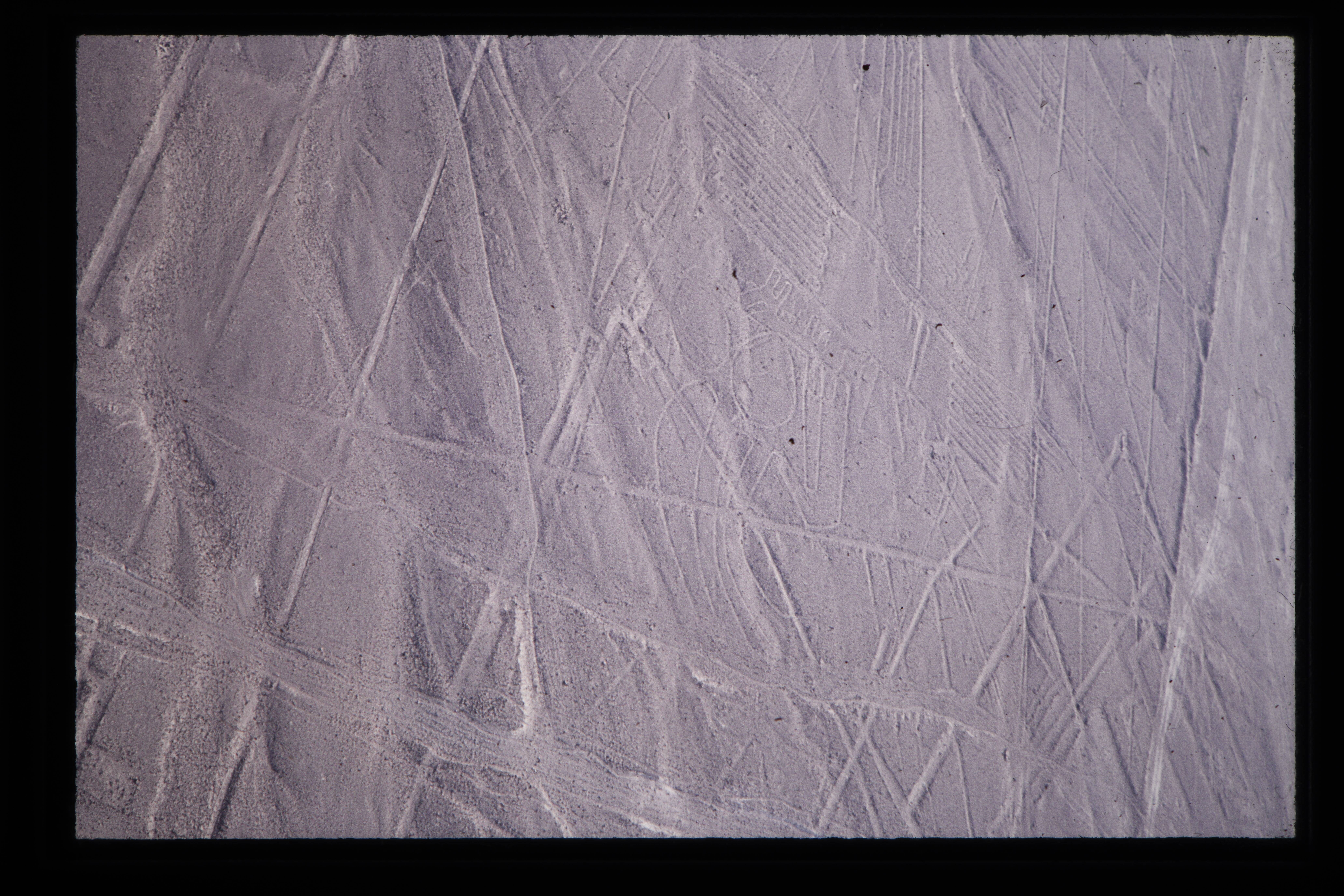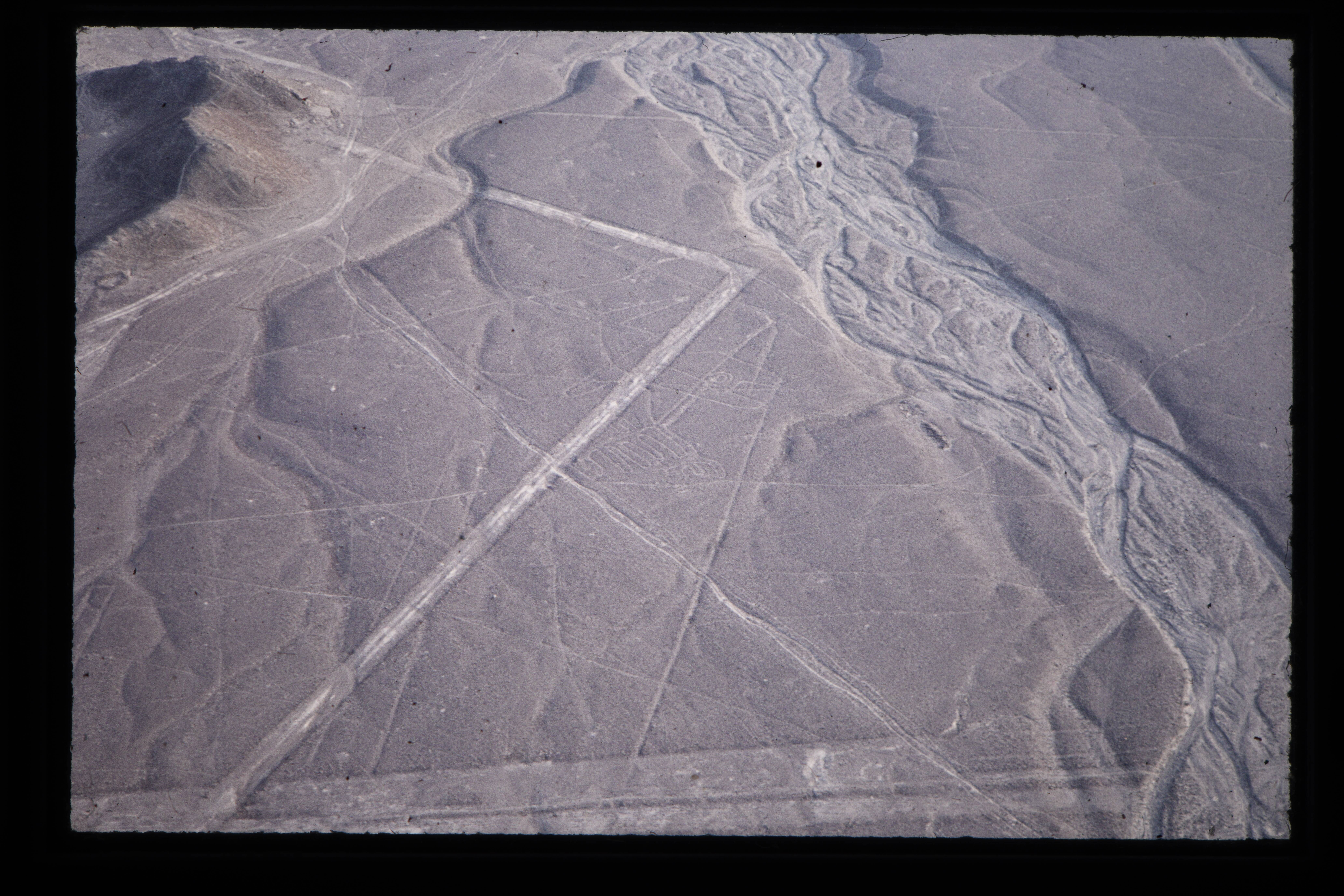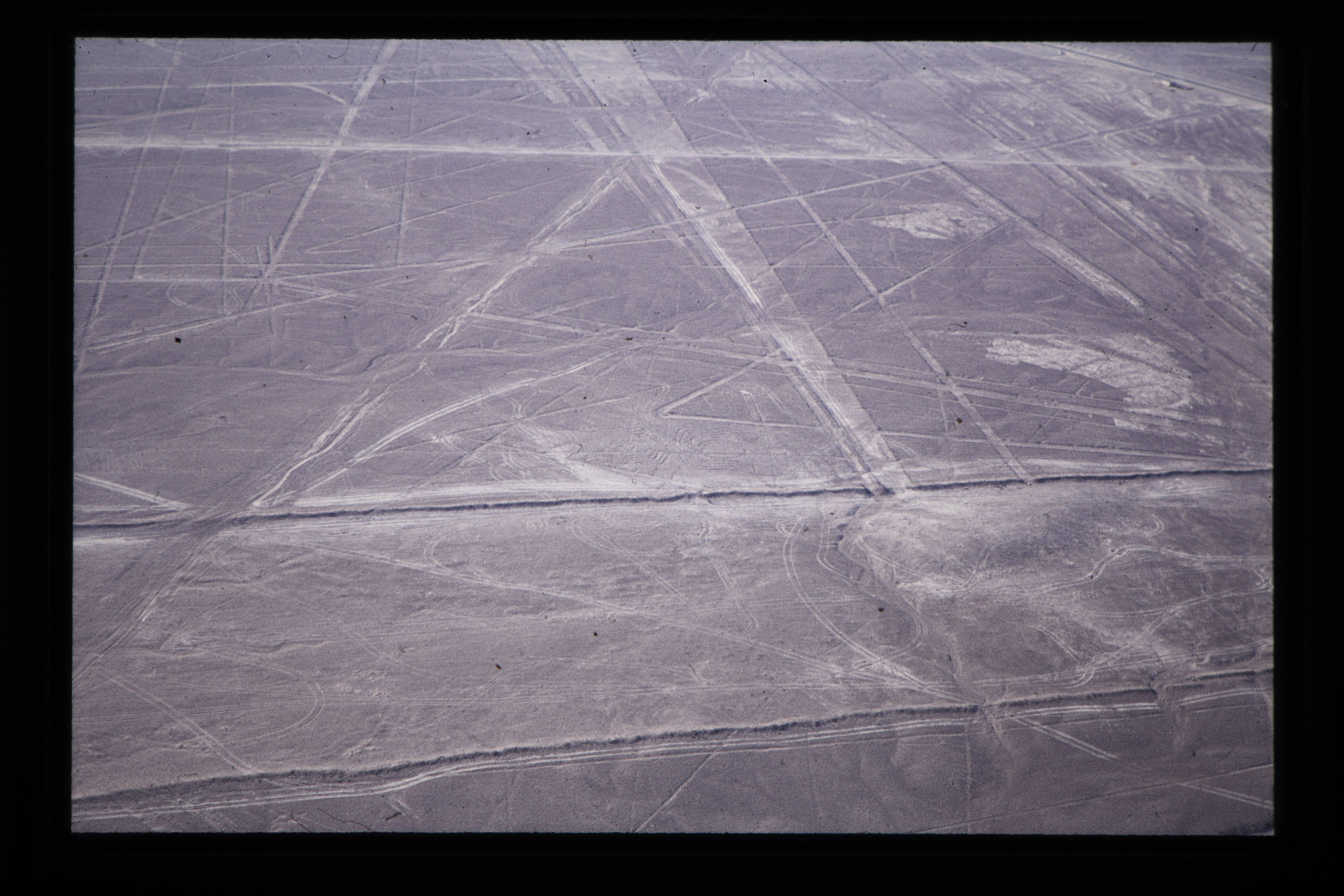 'Luchtopnamen Nasca-lijnen (woestijngebied); de teke...