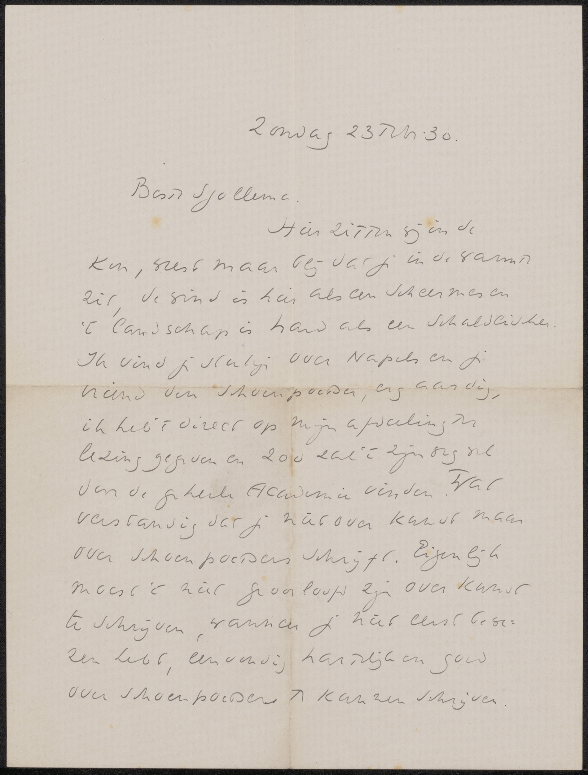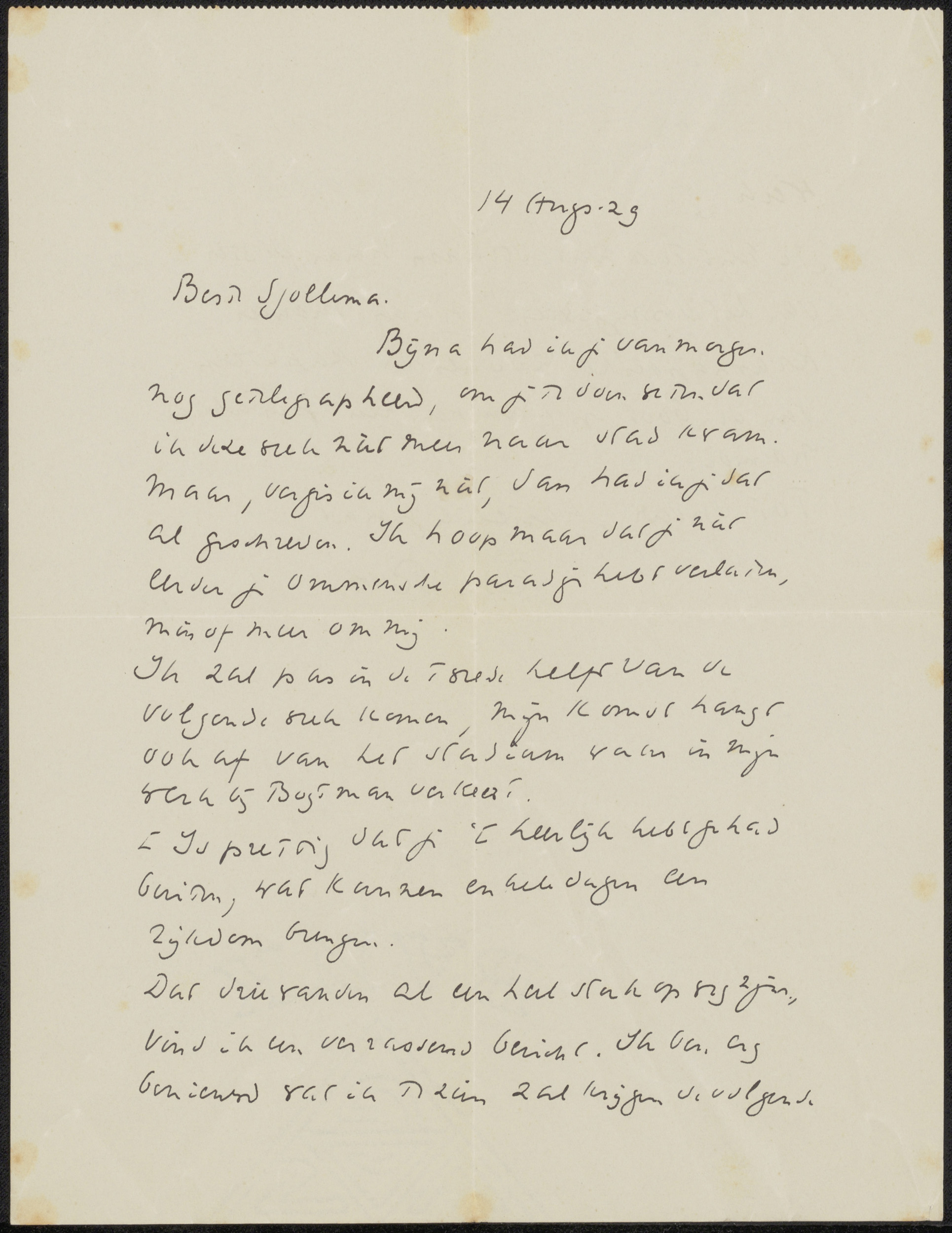 Brief aan Joop Sjollema