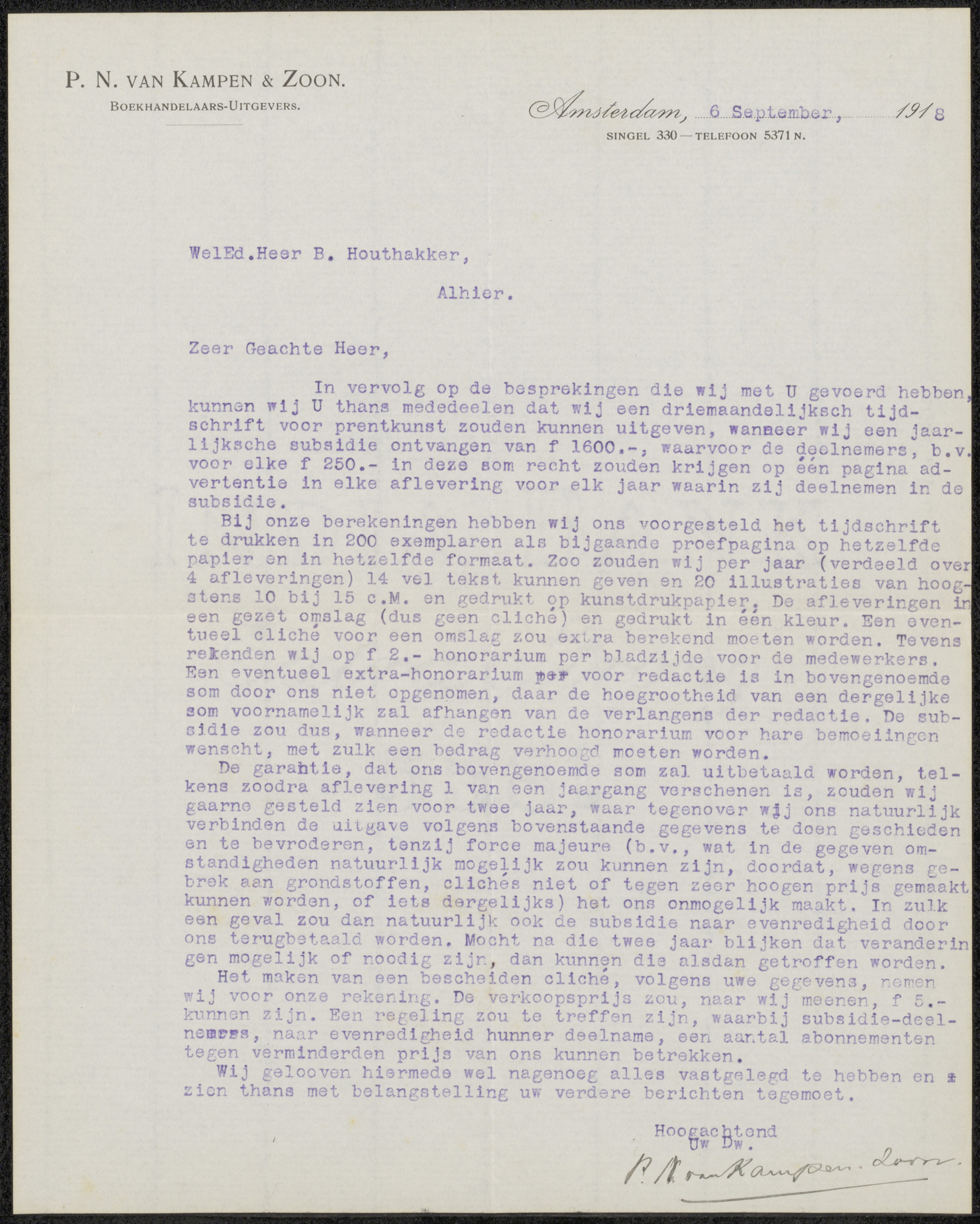 Brief aan Bernard Houthakker