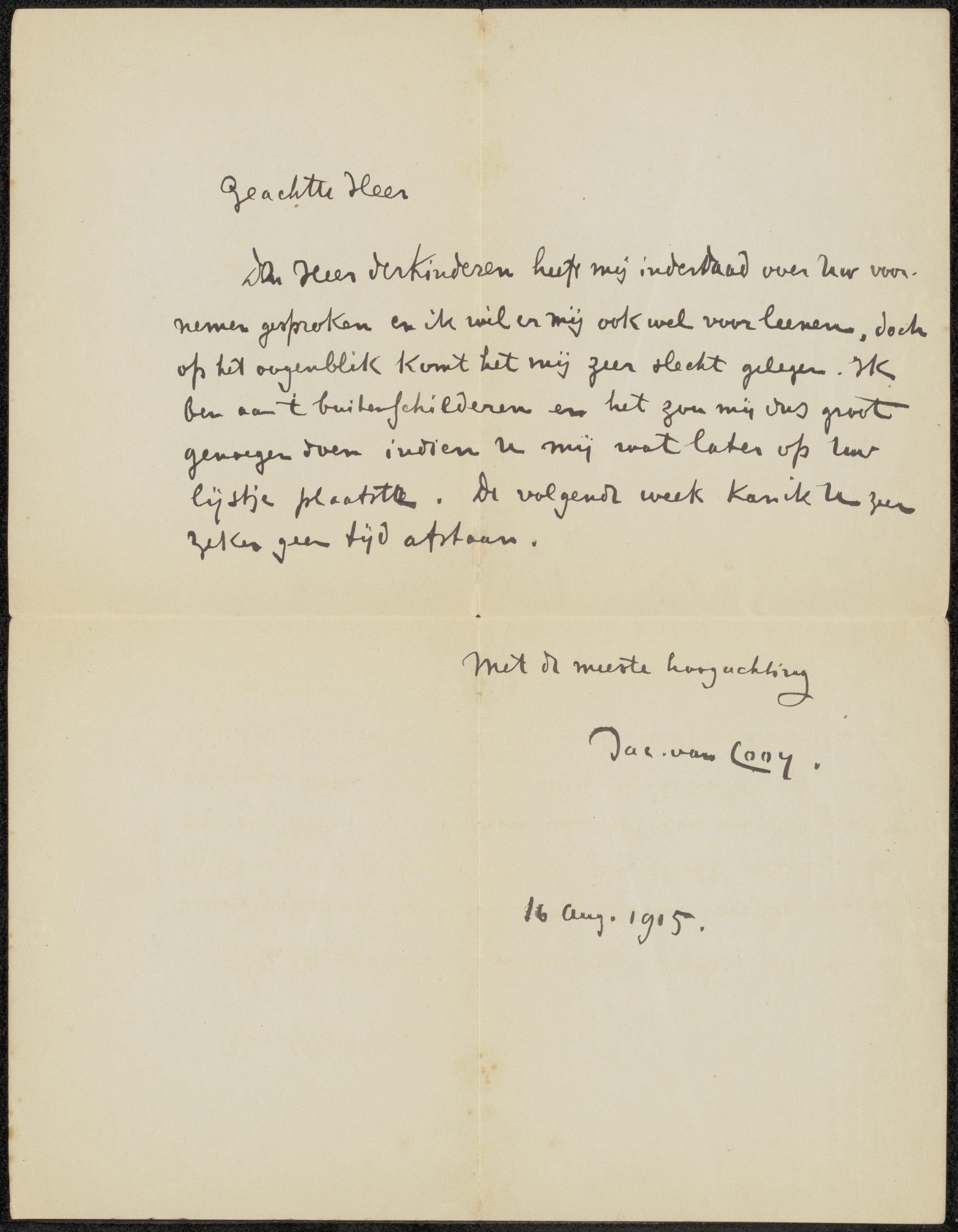 Brief aan Felicien Bobeldijk