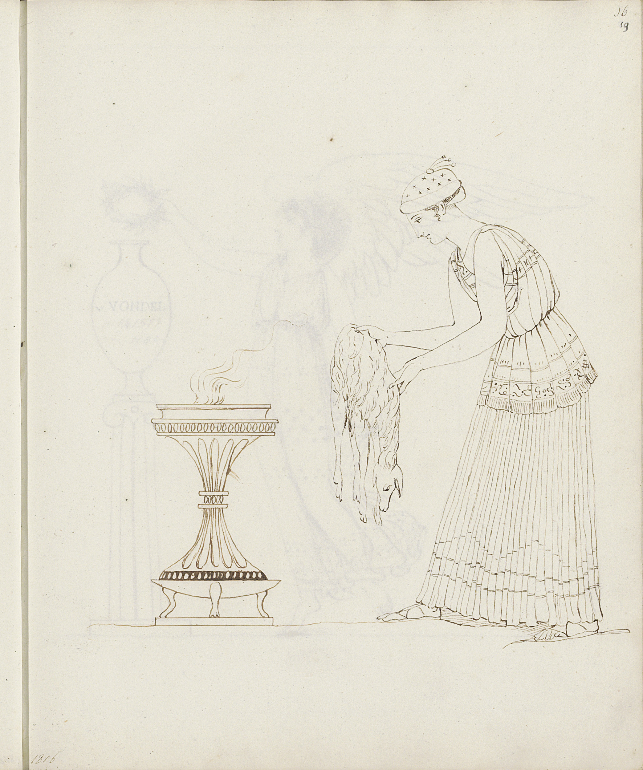 Vrouw die een schapenvel offert, naar klassiek voorb...