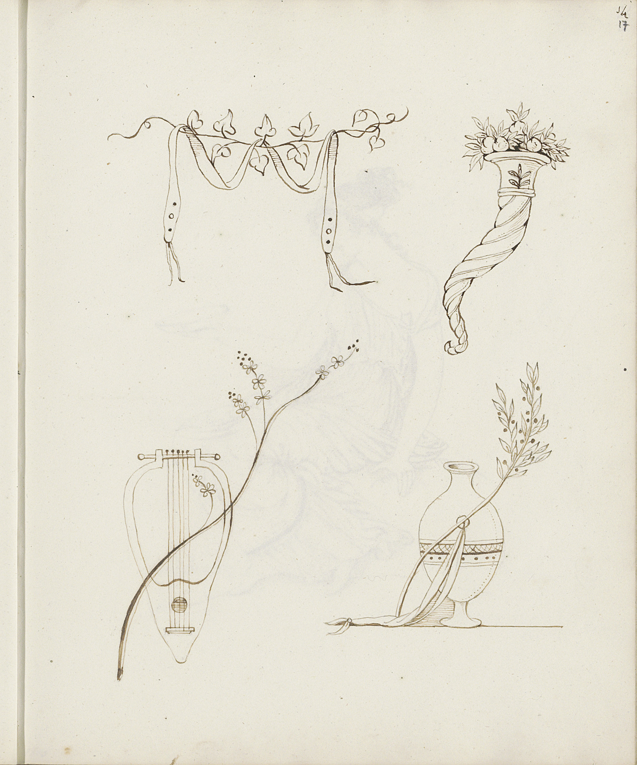 Guirlande, een cornucopia, een lier en een Griekse v...