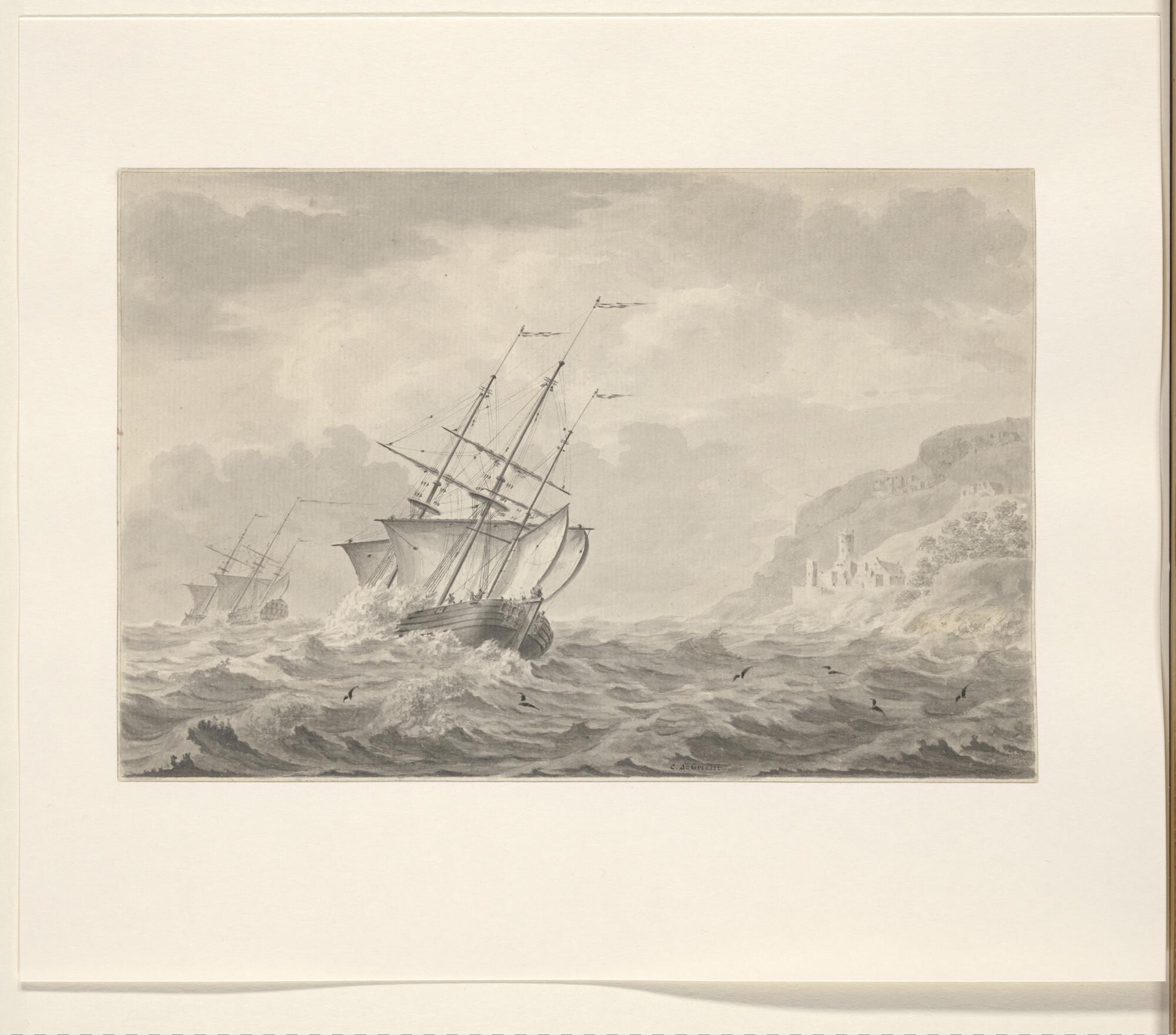 Een driemasthoekerschip en een fregatschip voor een ...
