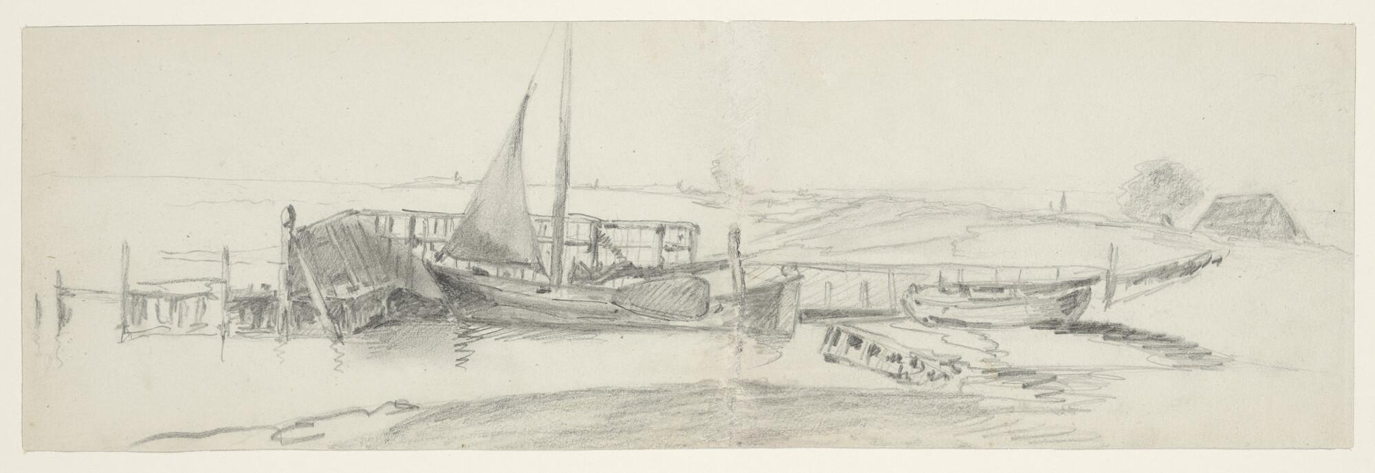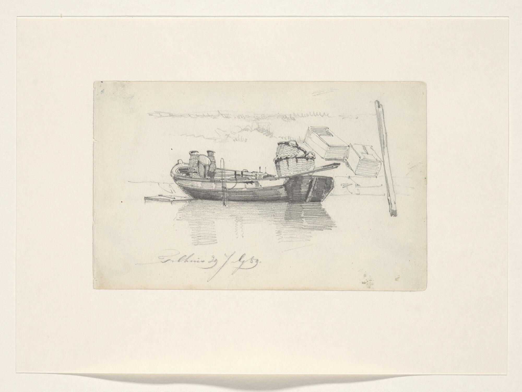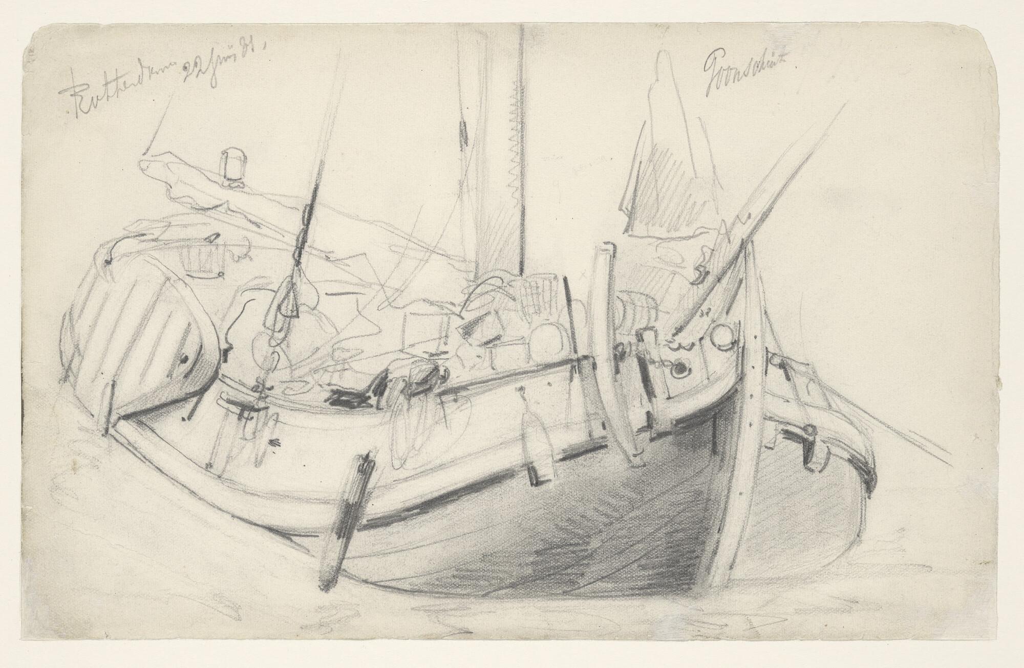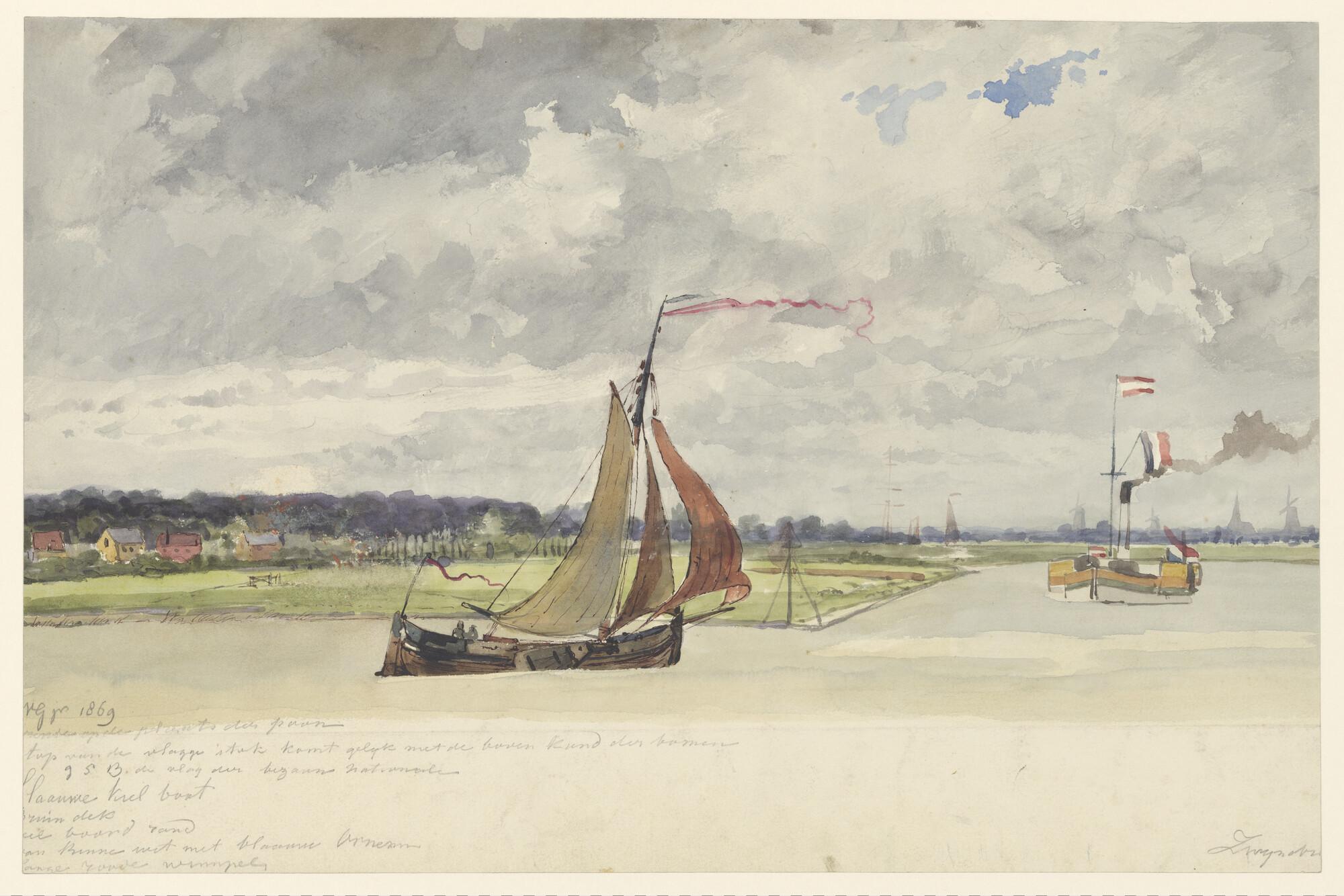Een poon en een raderstoomschip op de Oude Maas bij ...