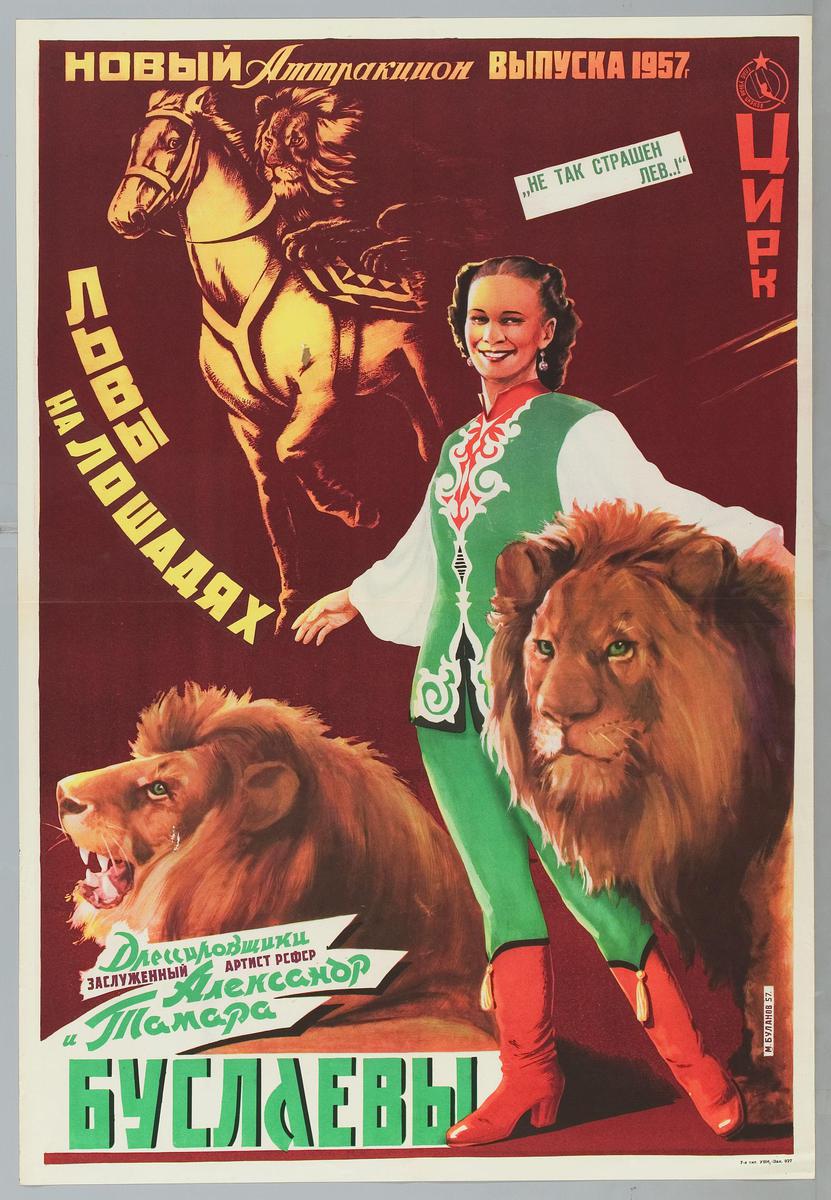 Russisch Staatscircus - vrouwelijke dompteur met lee...