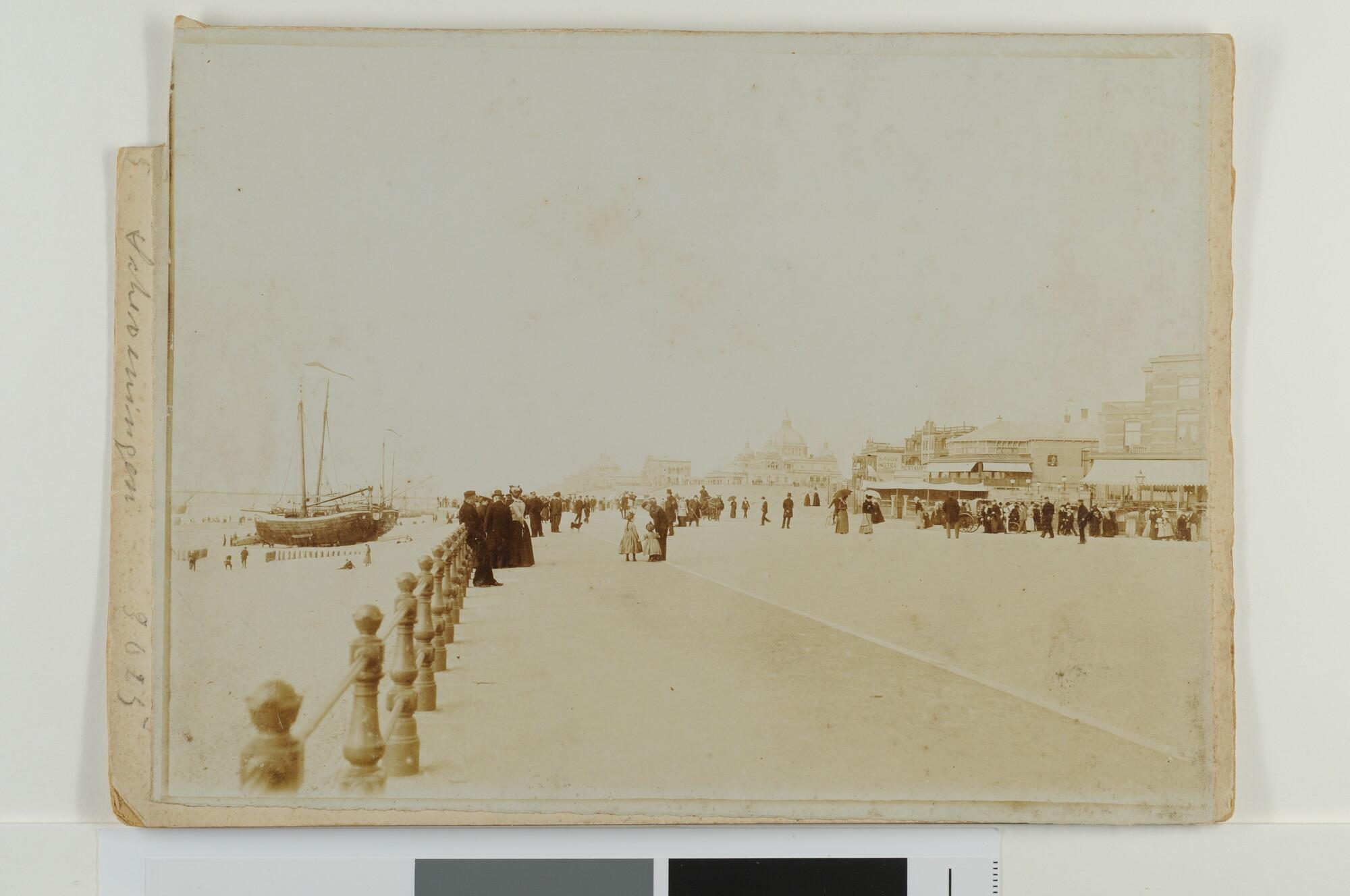 Dagjesmensen op de boulevard in Scheveningen met het...