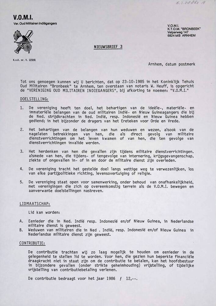 Nieuwsbrief V.O.M.I. Ver. oud militairen Indiëgangers