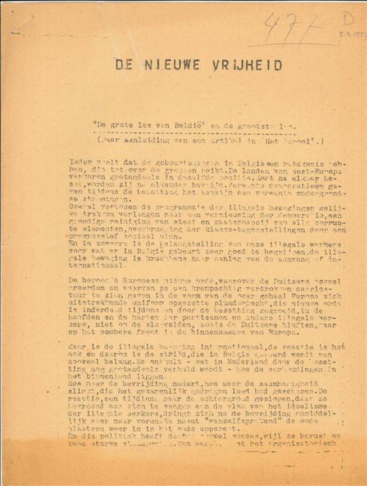 De Nieuwe Vrijheid, ongedateerd