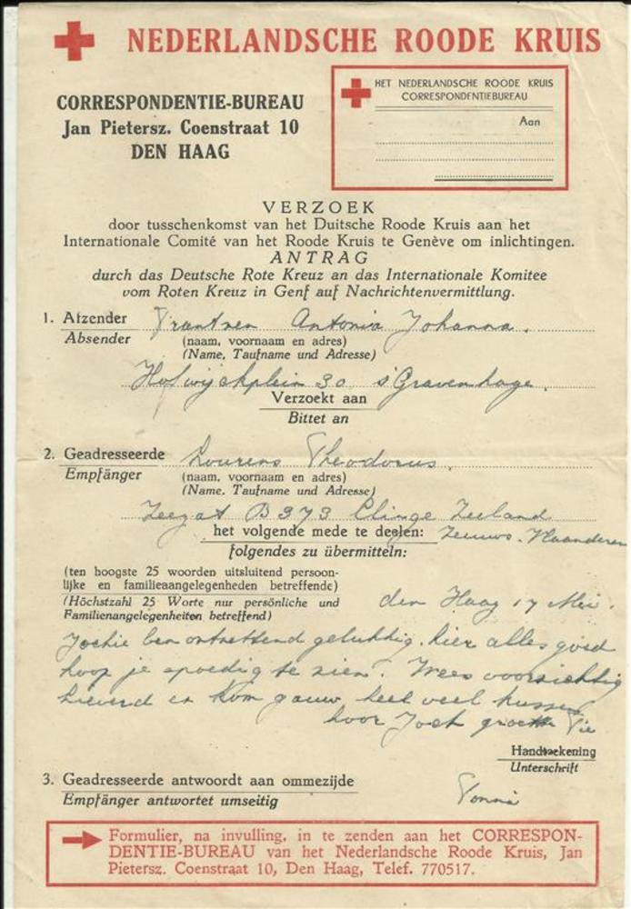 Verzoek door tussenkomst van het Duitsche Roode Krui...