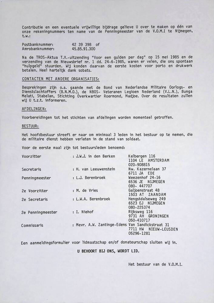 Nieuwsbrief V.O.M.I. Ver. oud militairen Indiëgangers