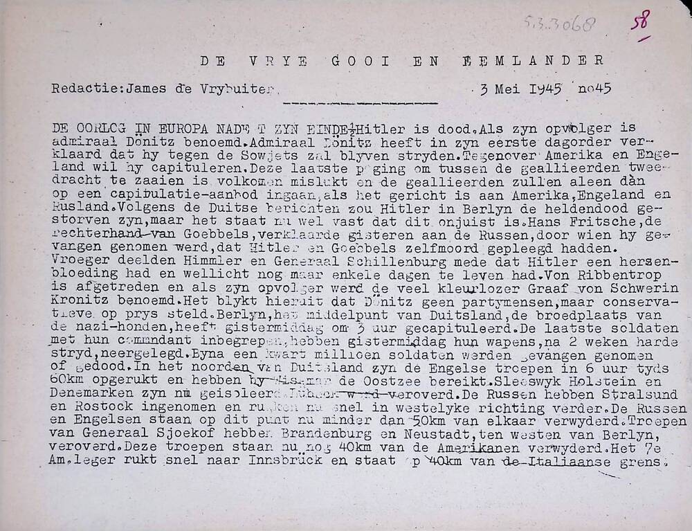 Vrije Gooi - en Eemlander, 3 Mei 1945