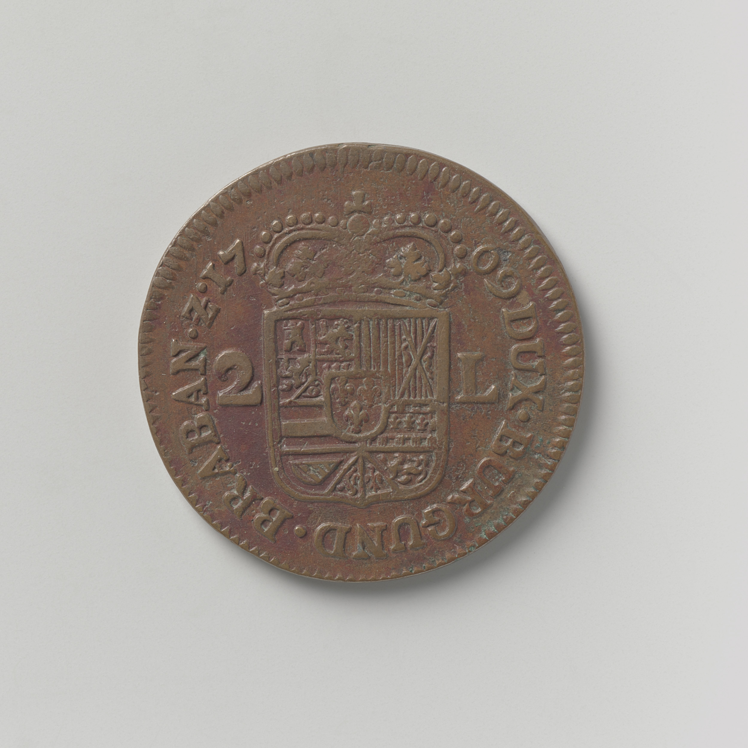 Twintig stuiver (loden afslag), noodmunt uit Breda, ...