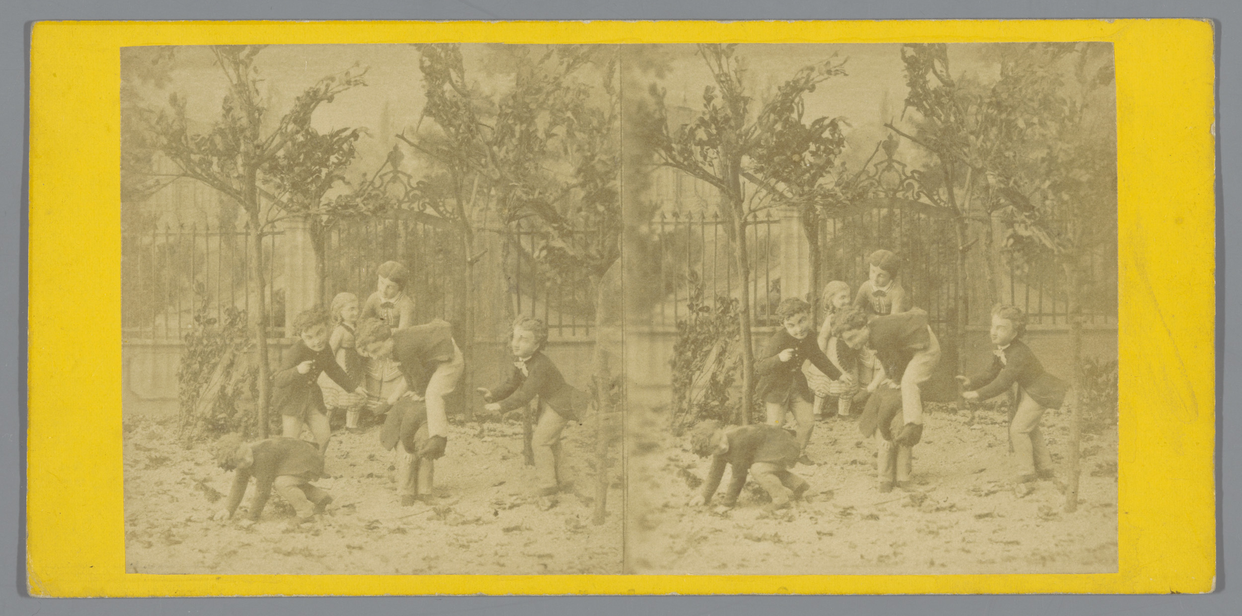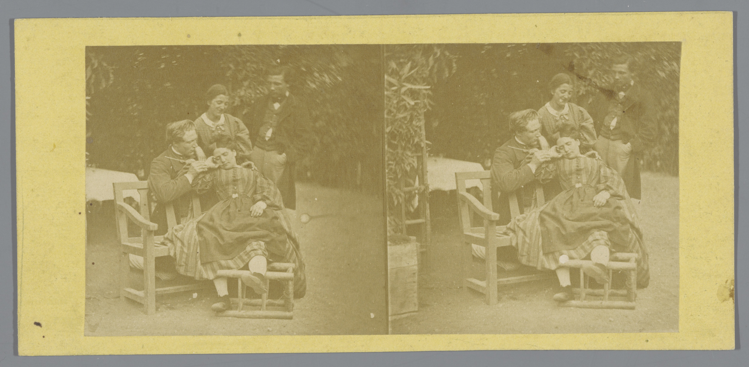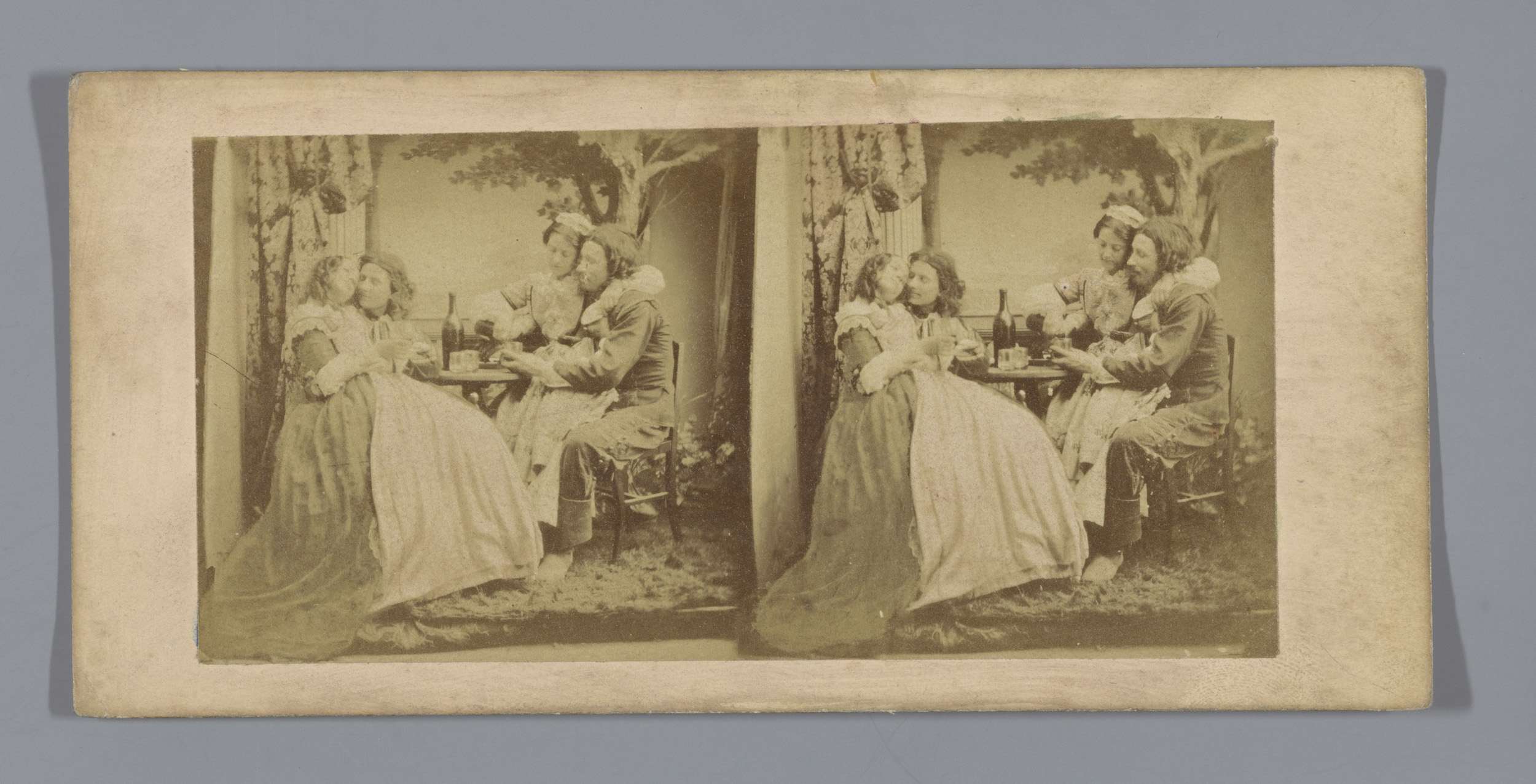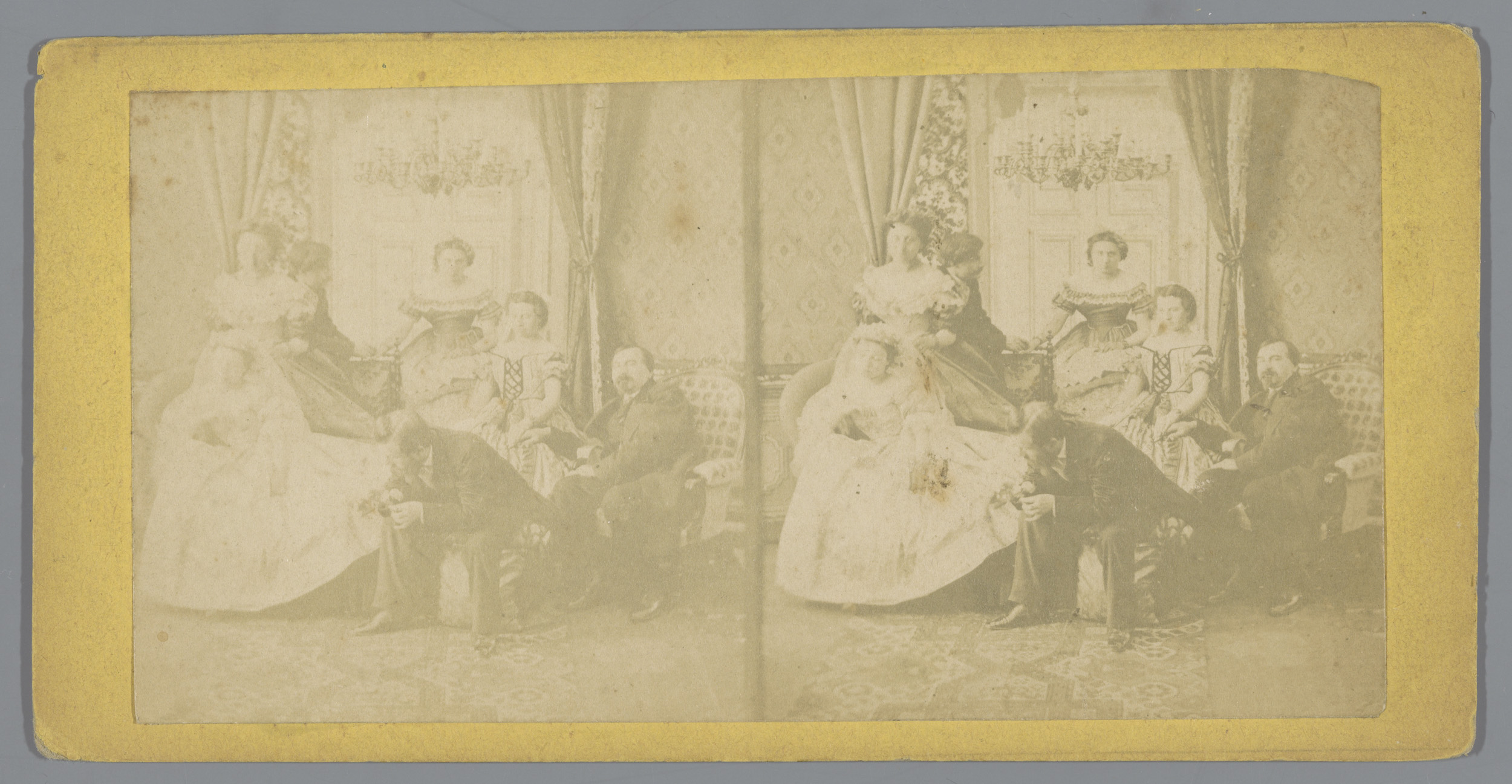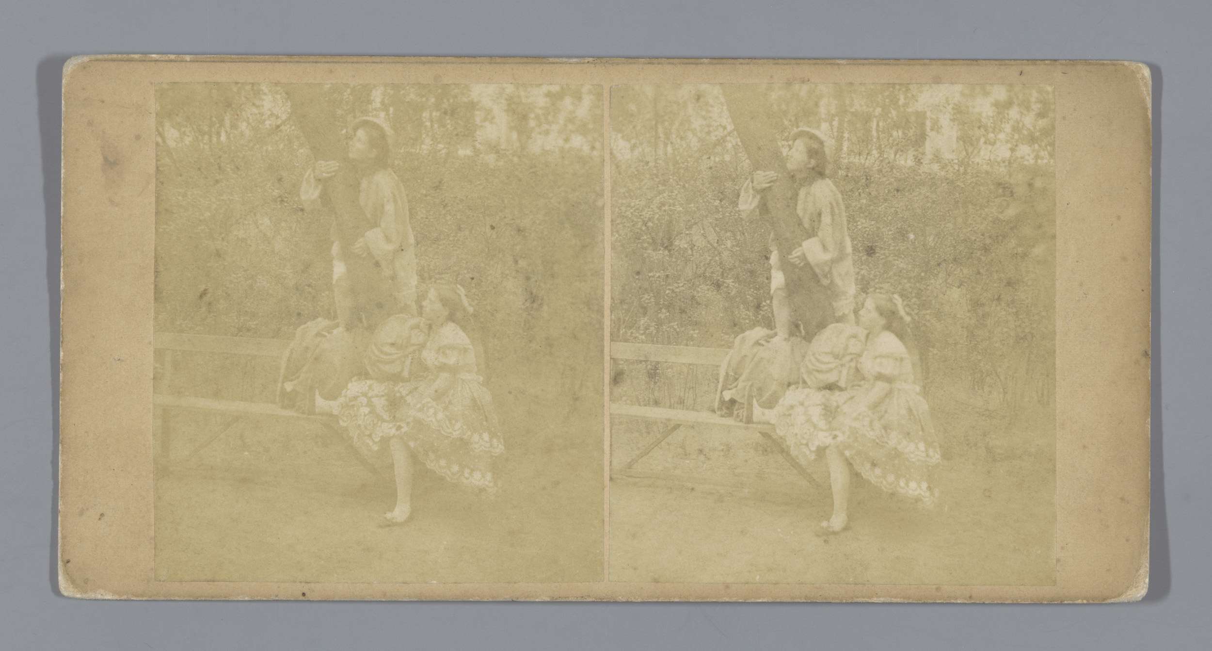 Meisjes rond een tafel waarop mogelijk een stereosco...