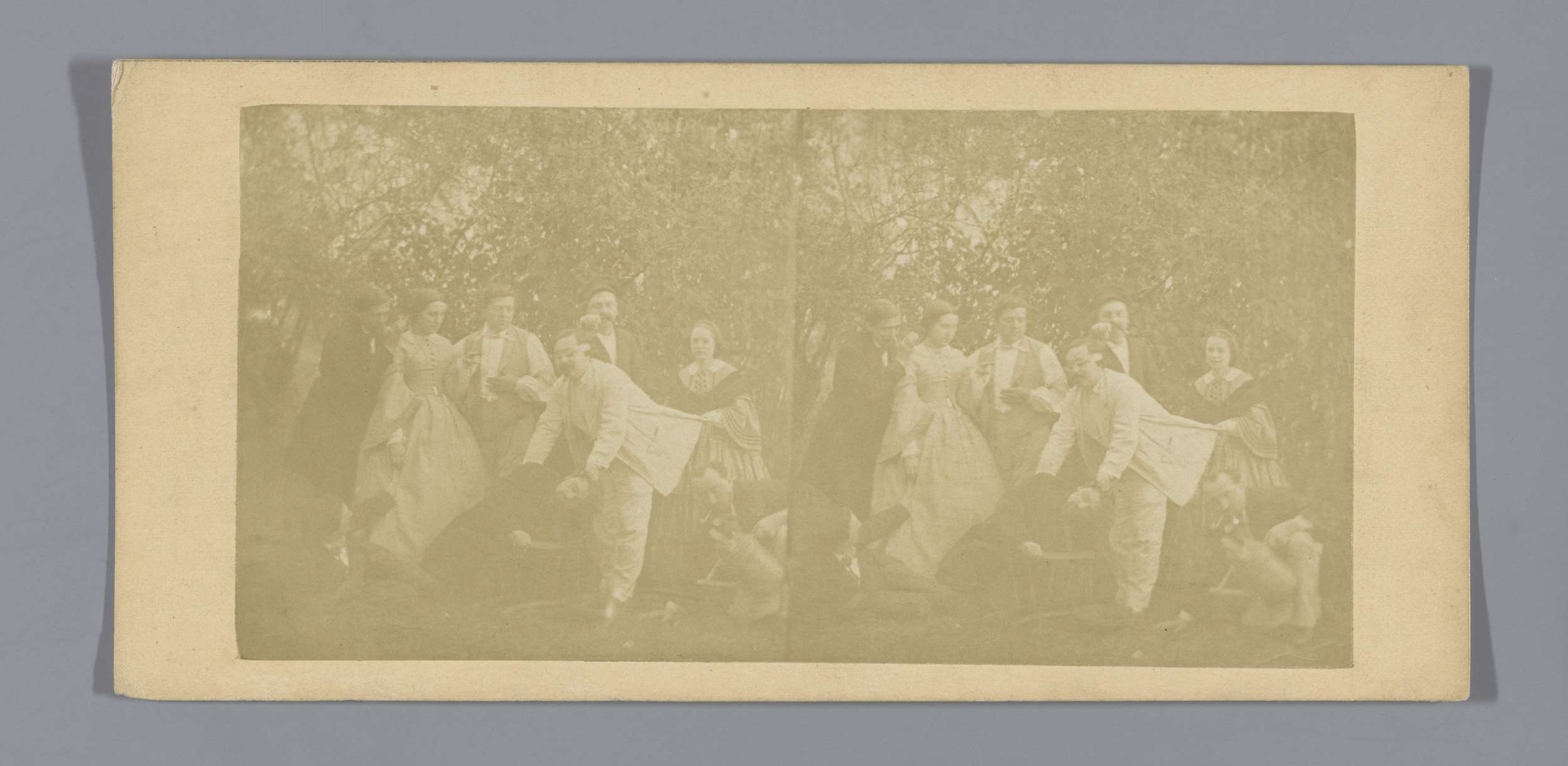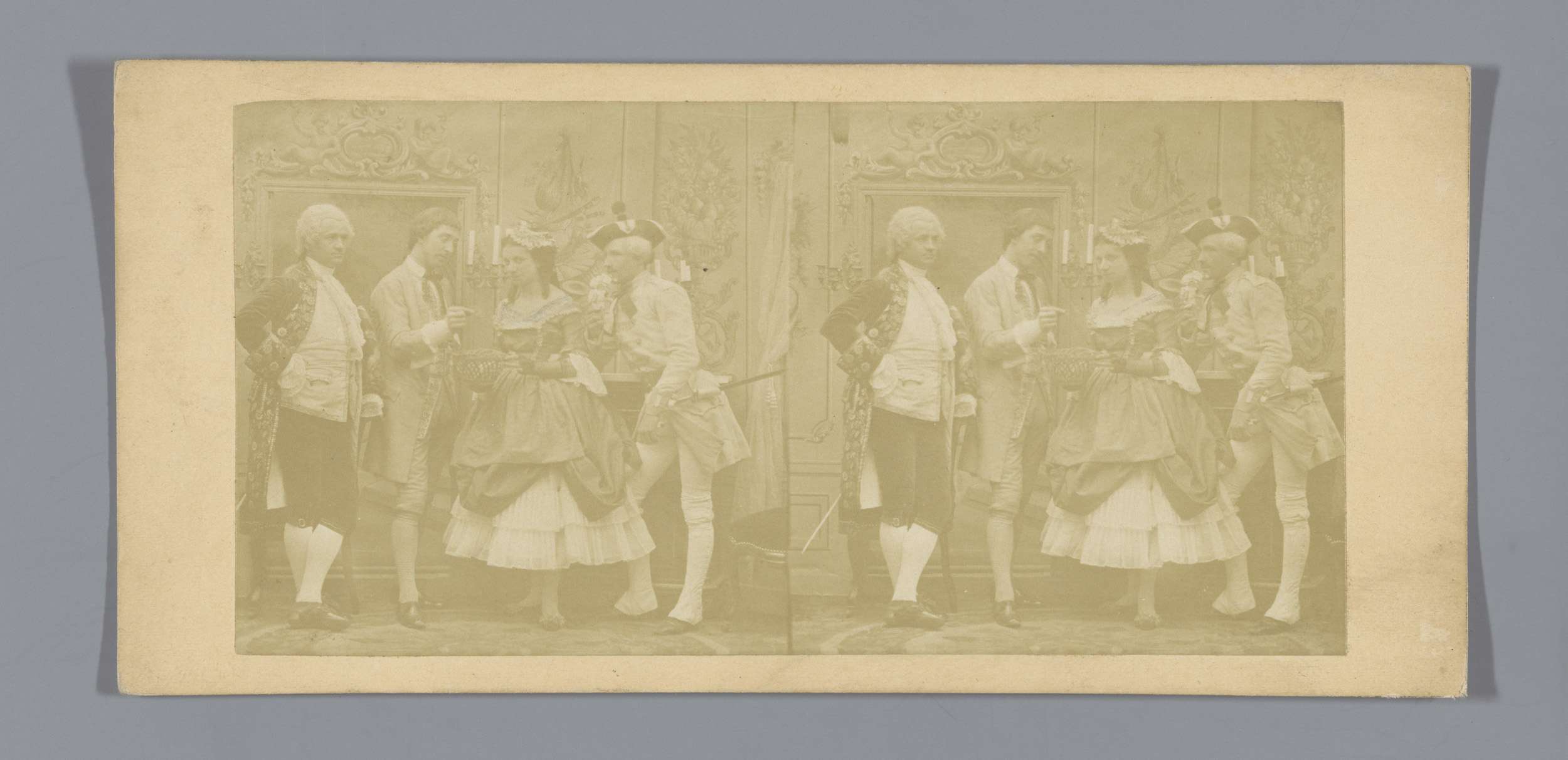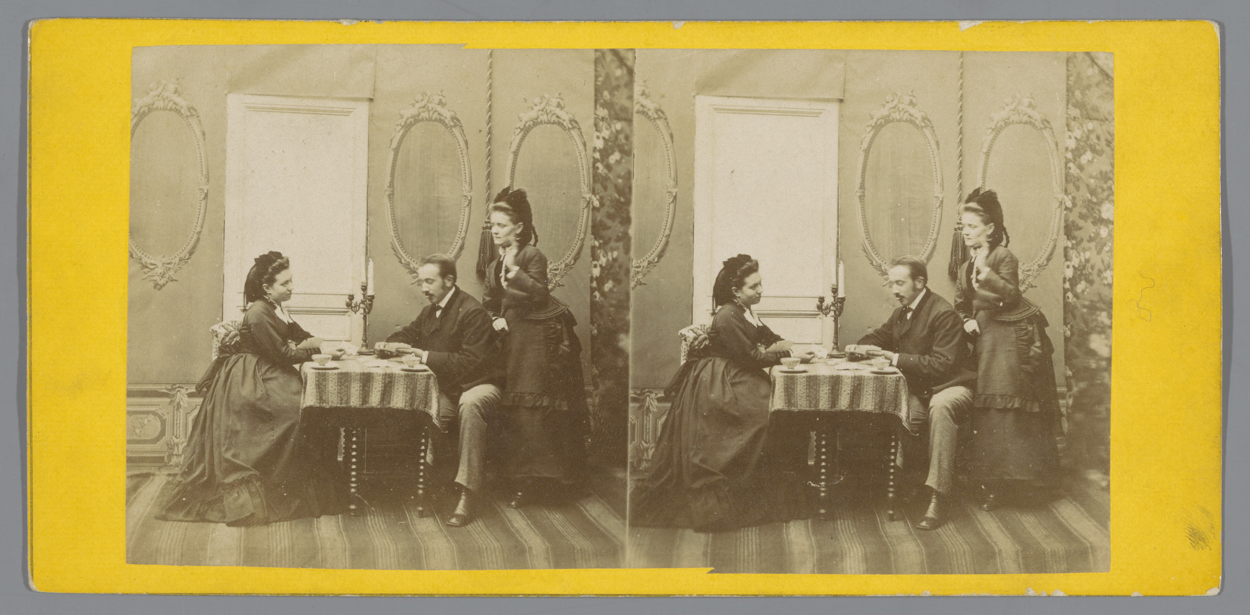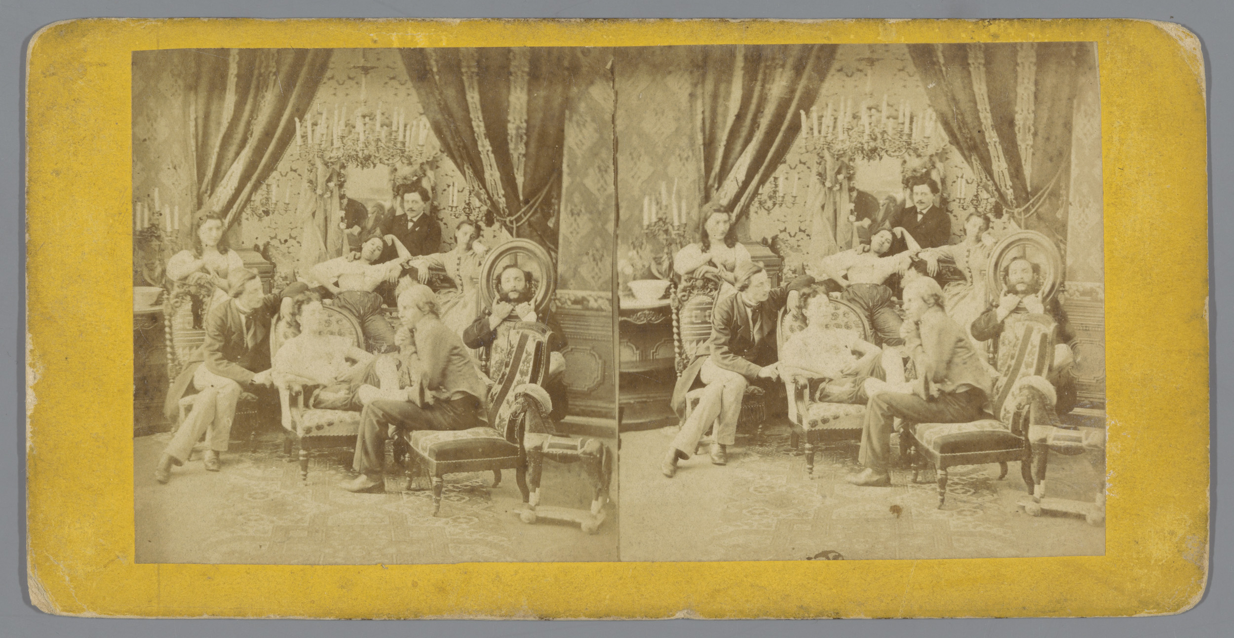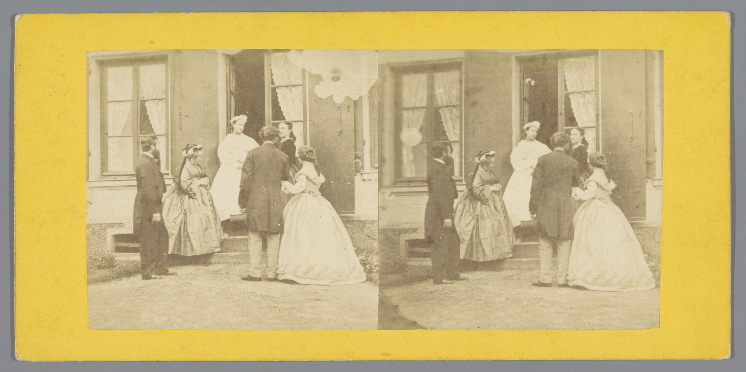 Meisjes rond een tafel waarop mogelijk een stereosco...
