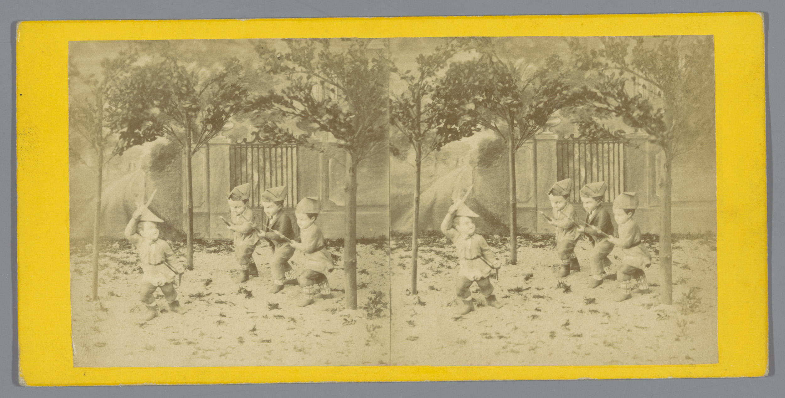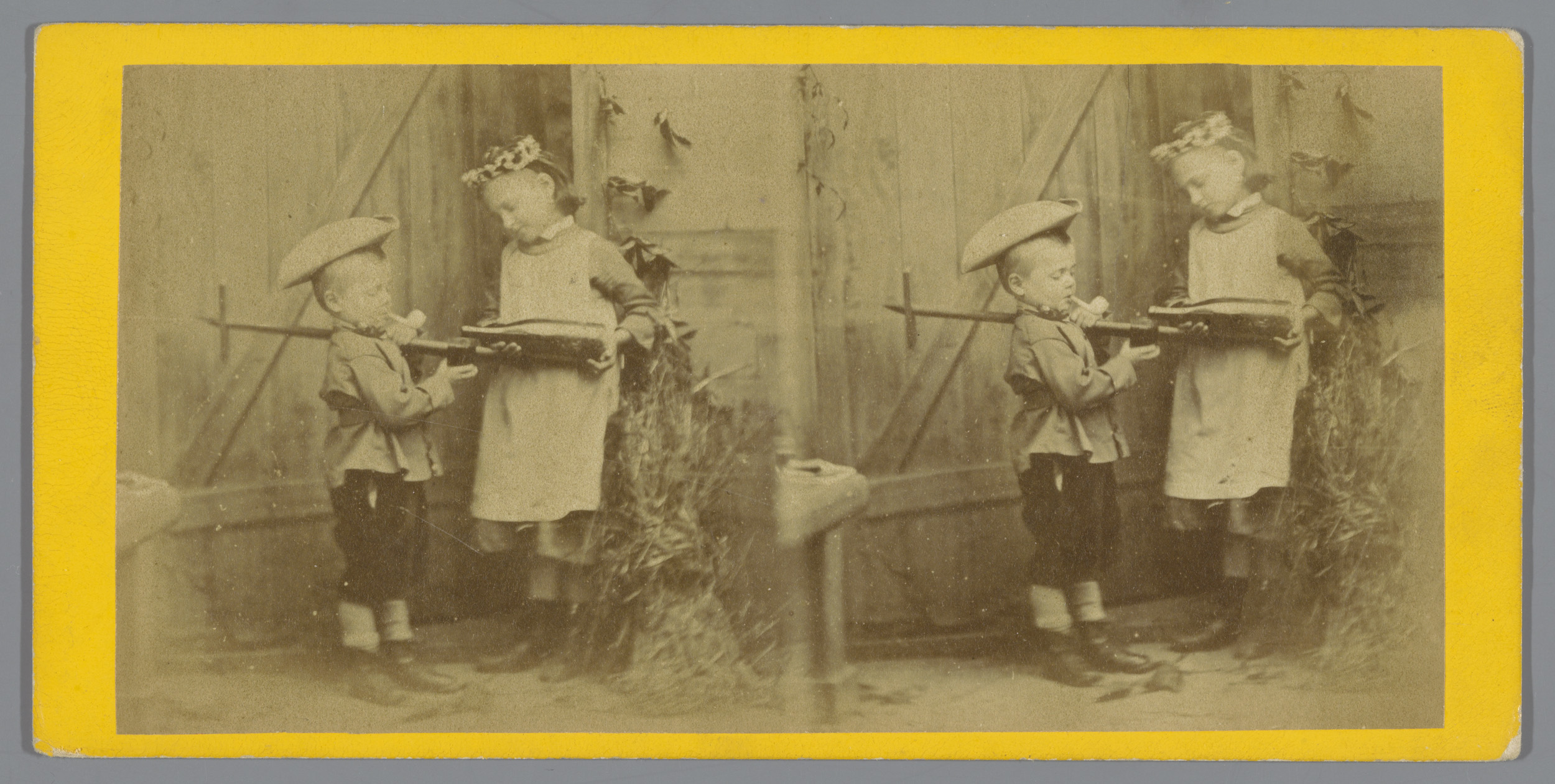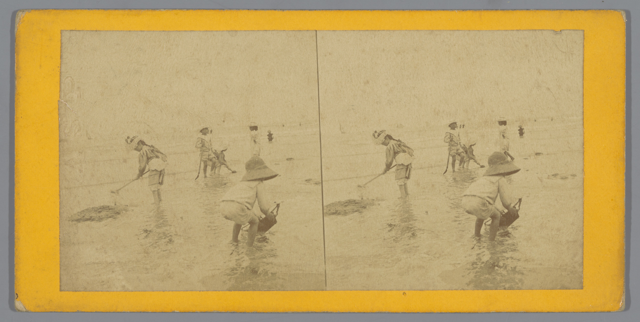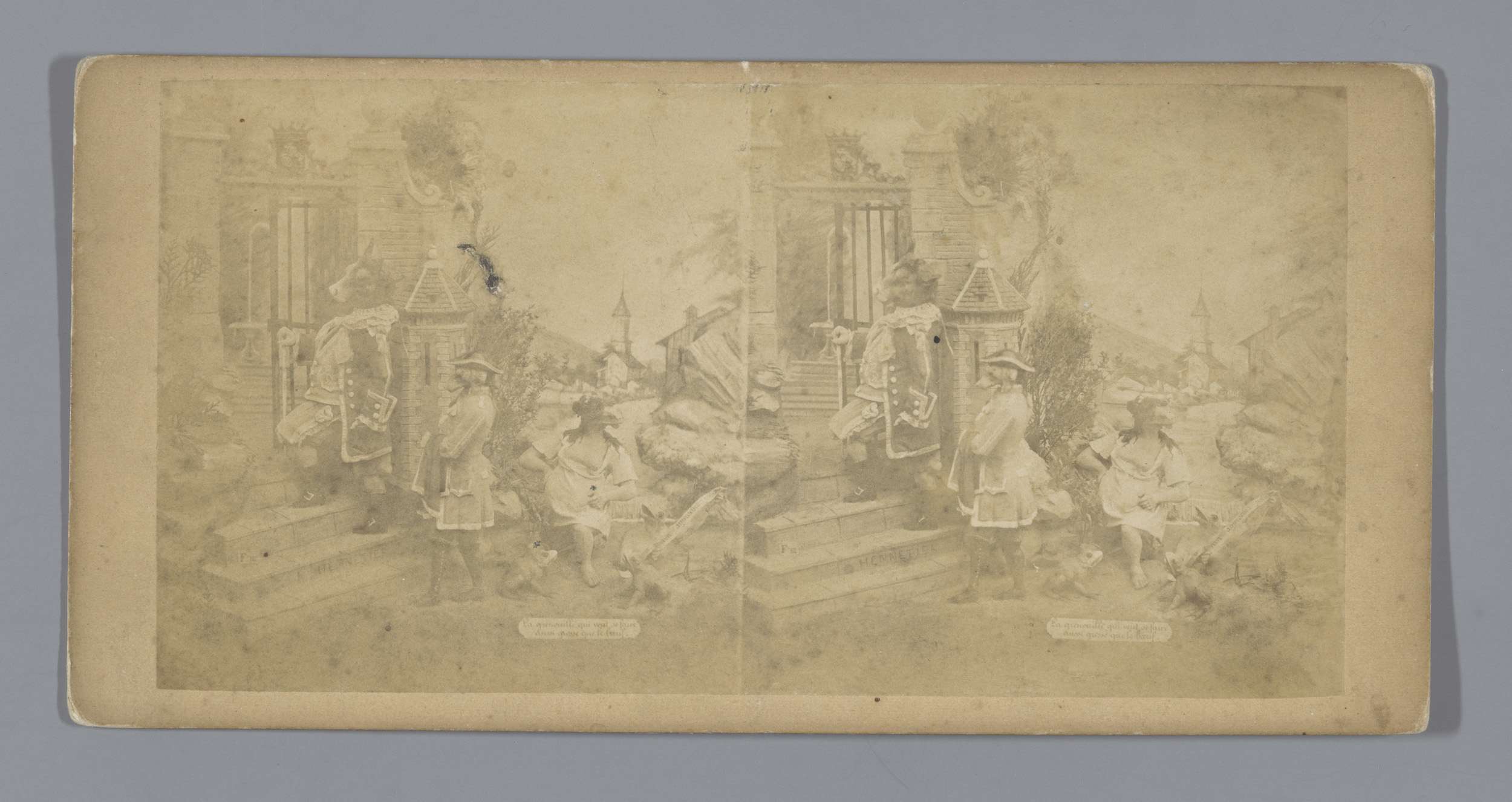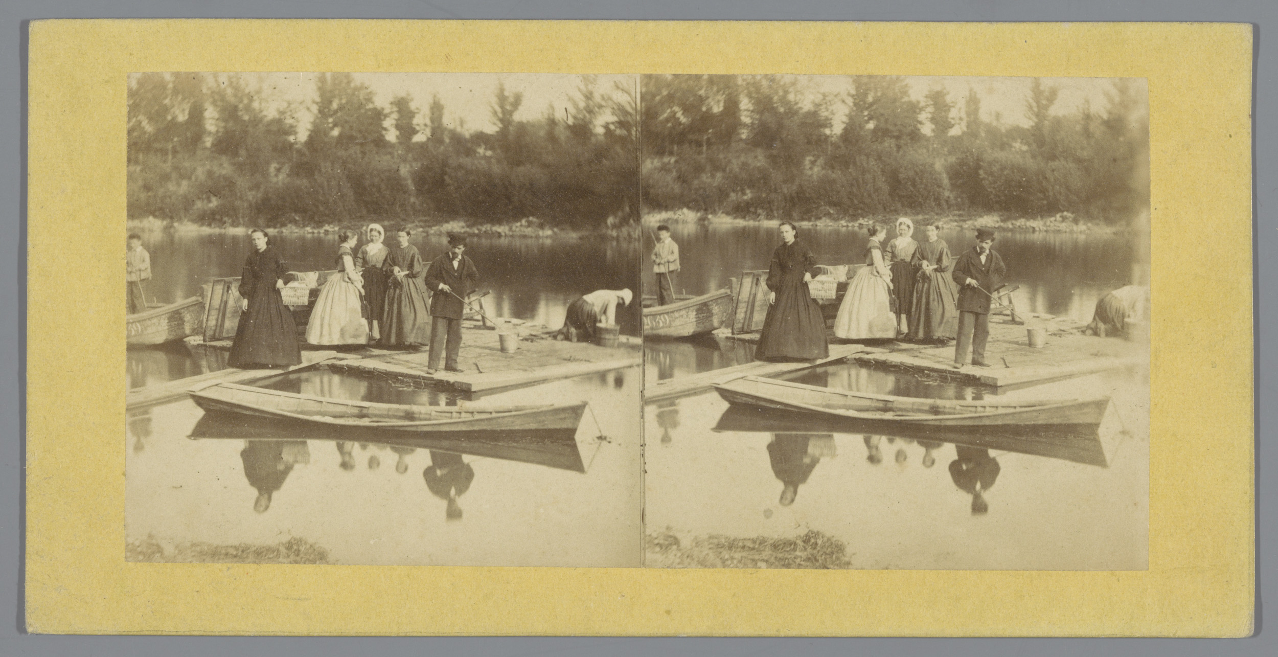 Meisjes rond een tafel waarop mogelijk een stereosco...
