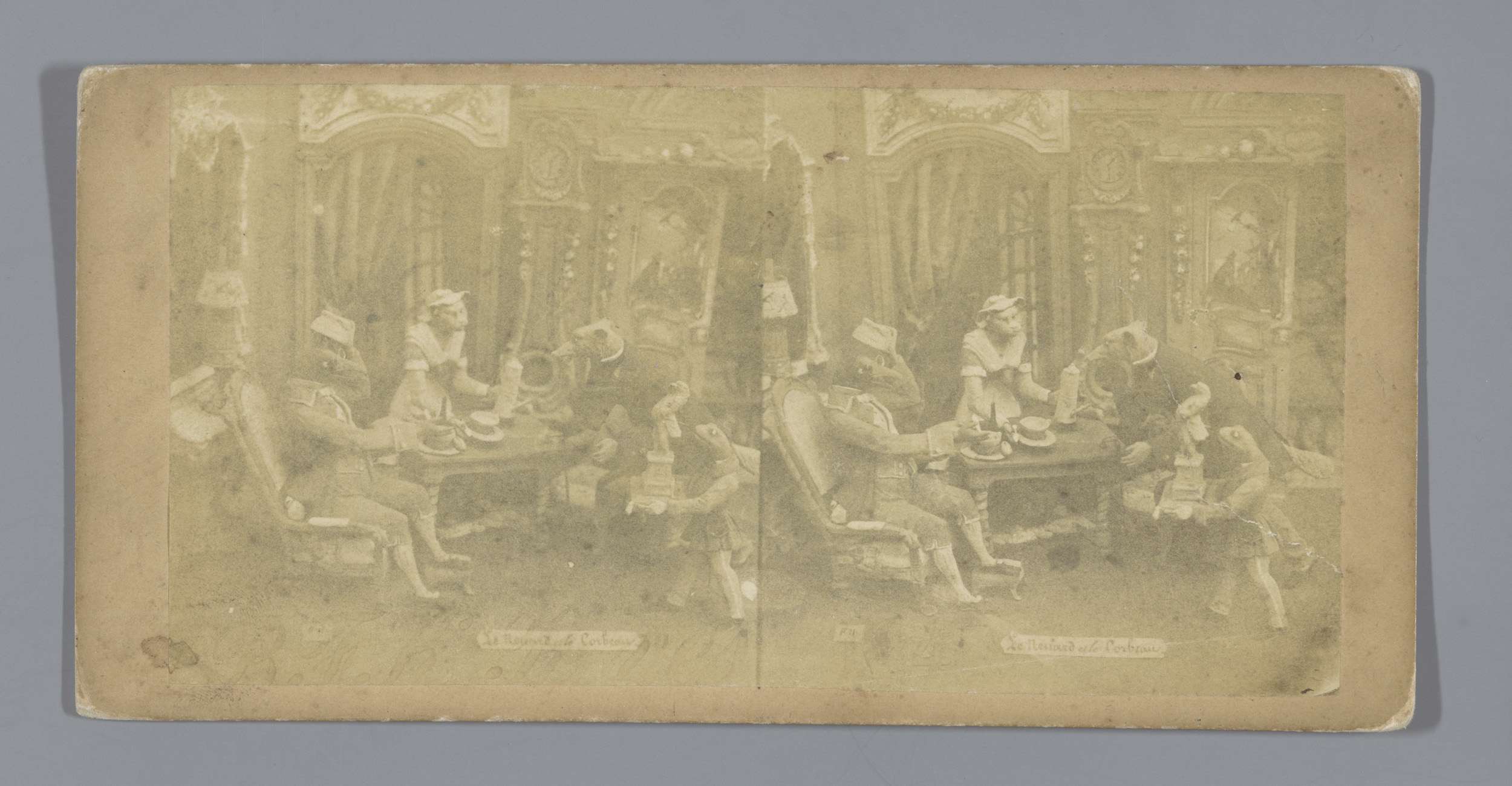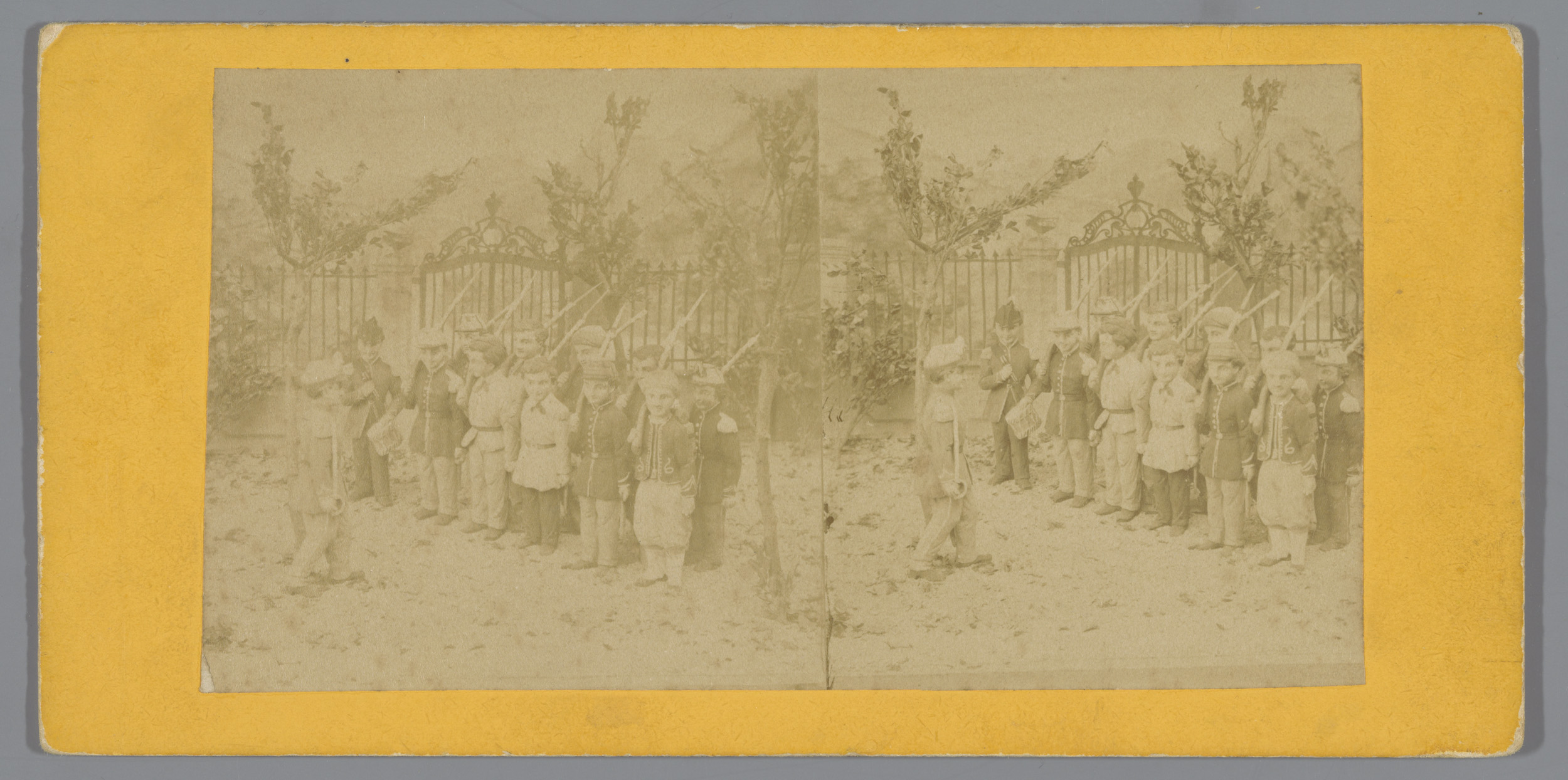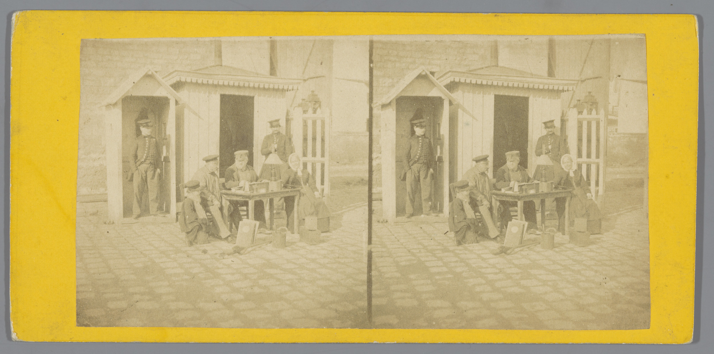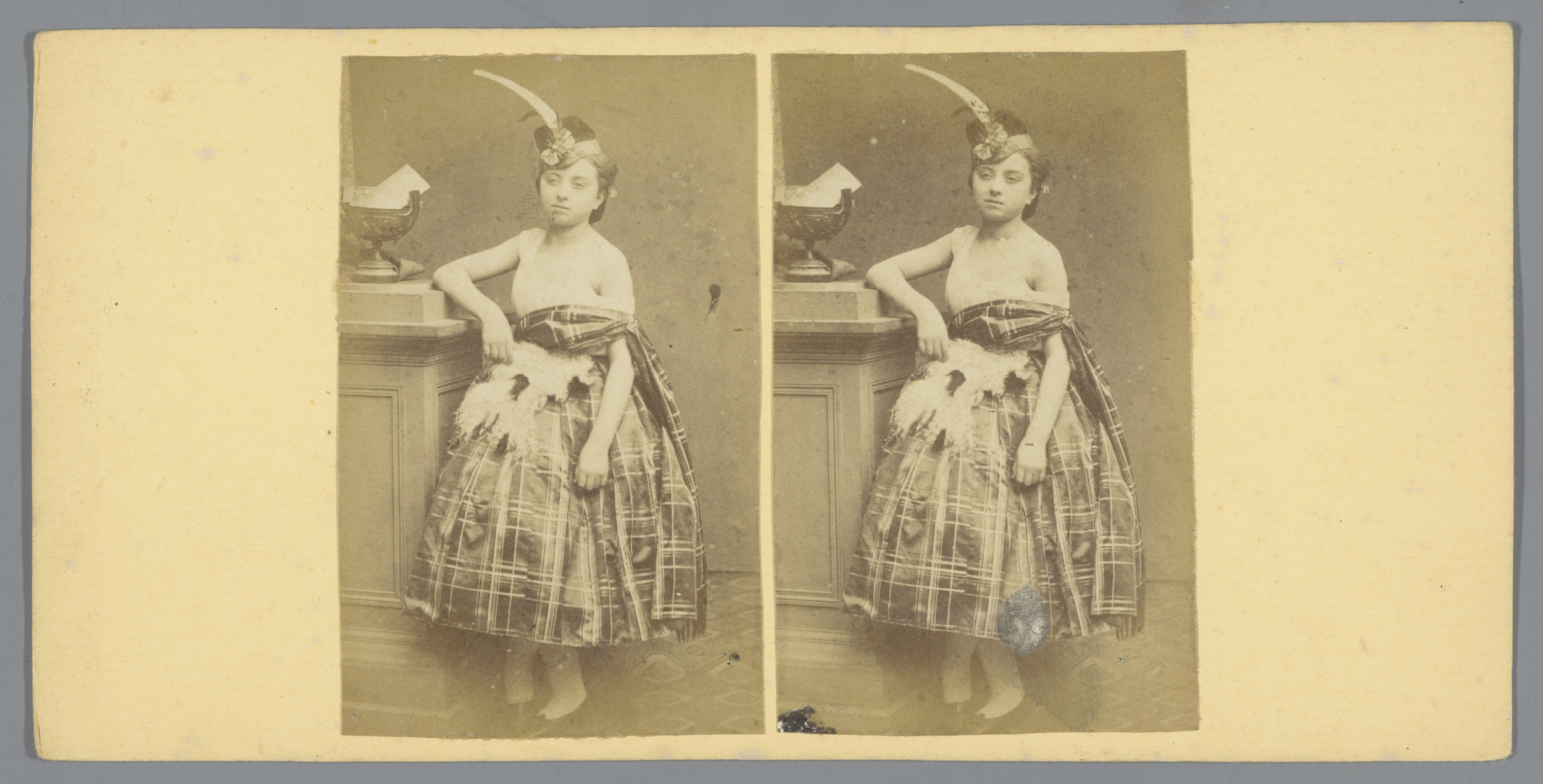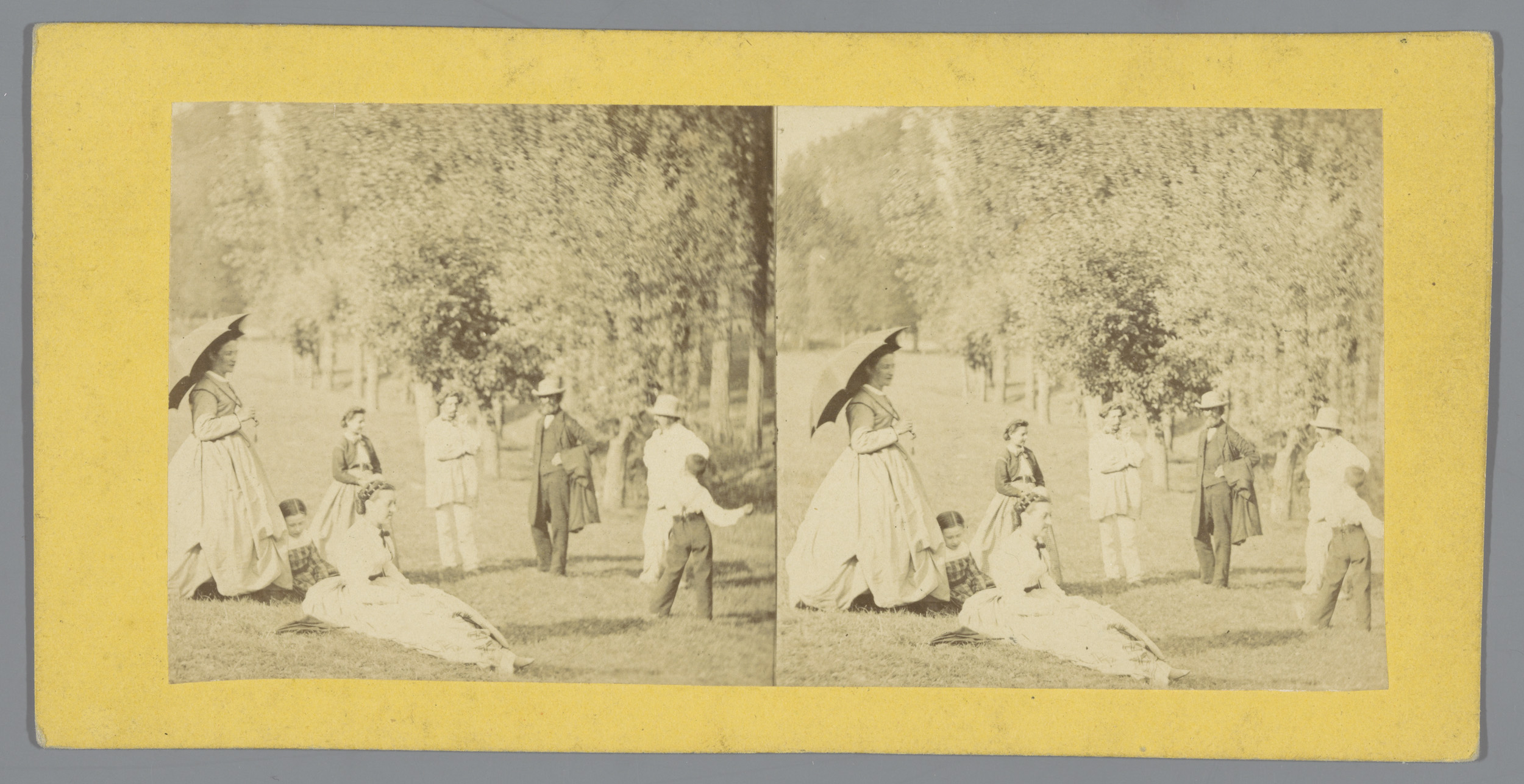 Meisjes rond een tafel waarop mogelijk een stereosco...