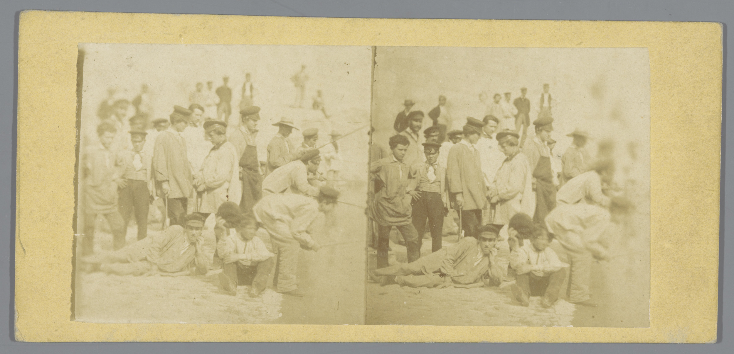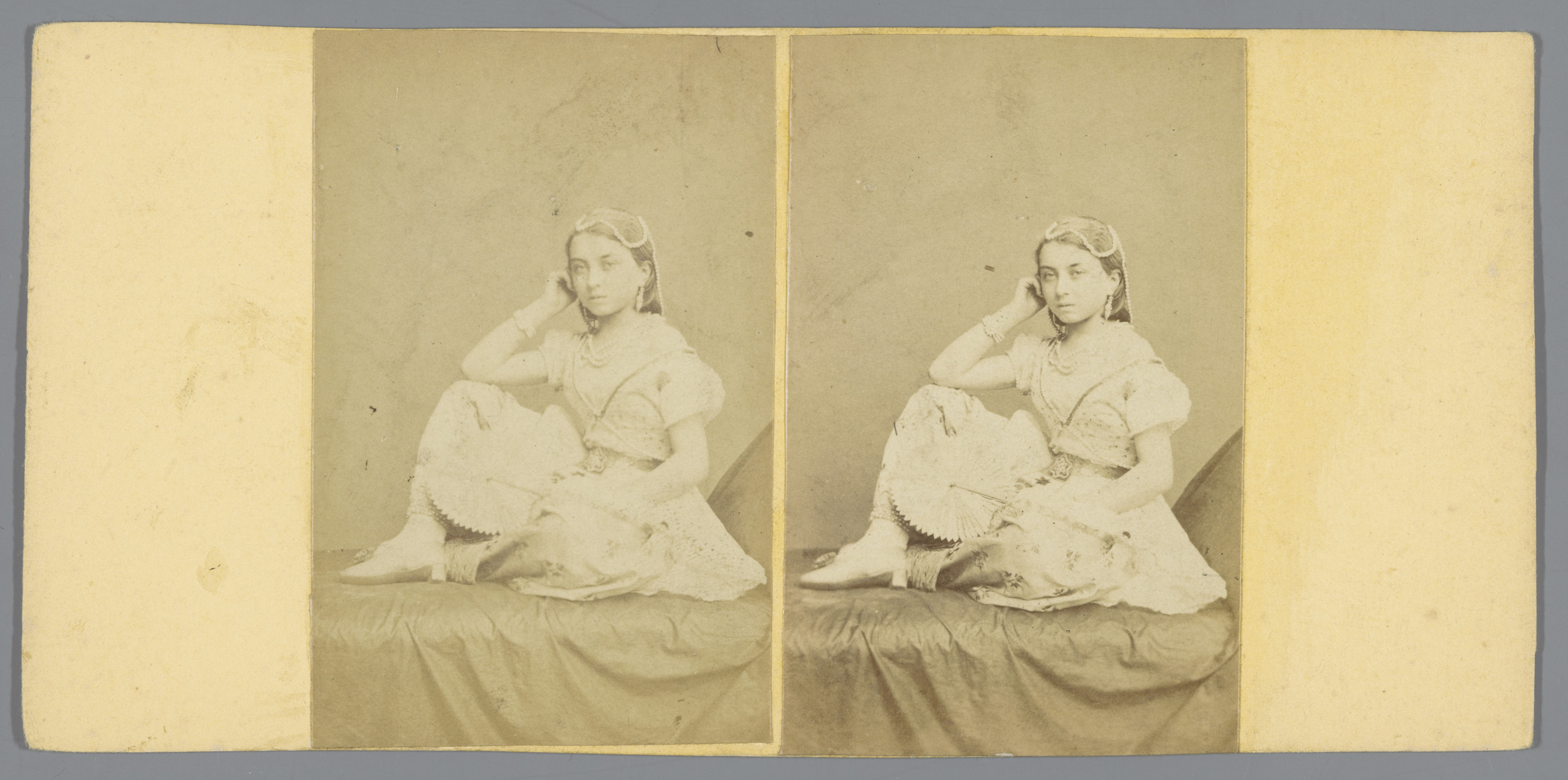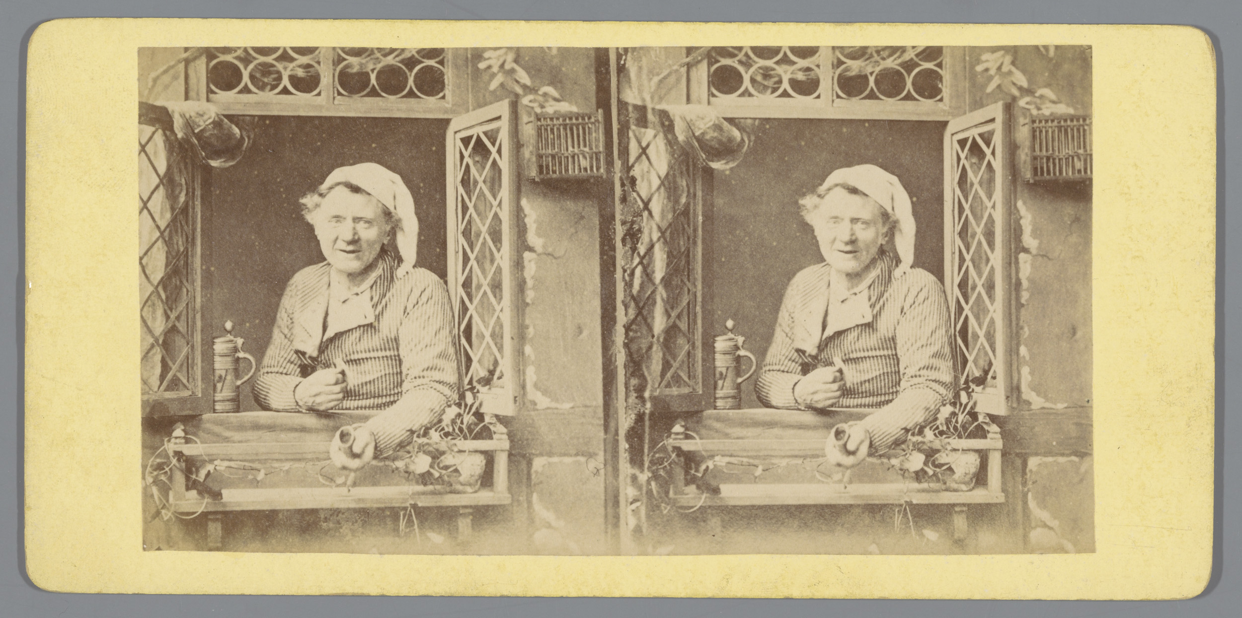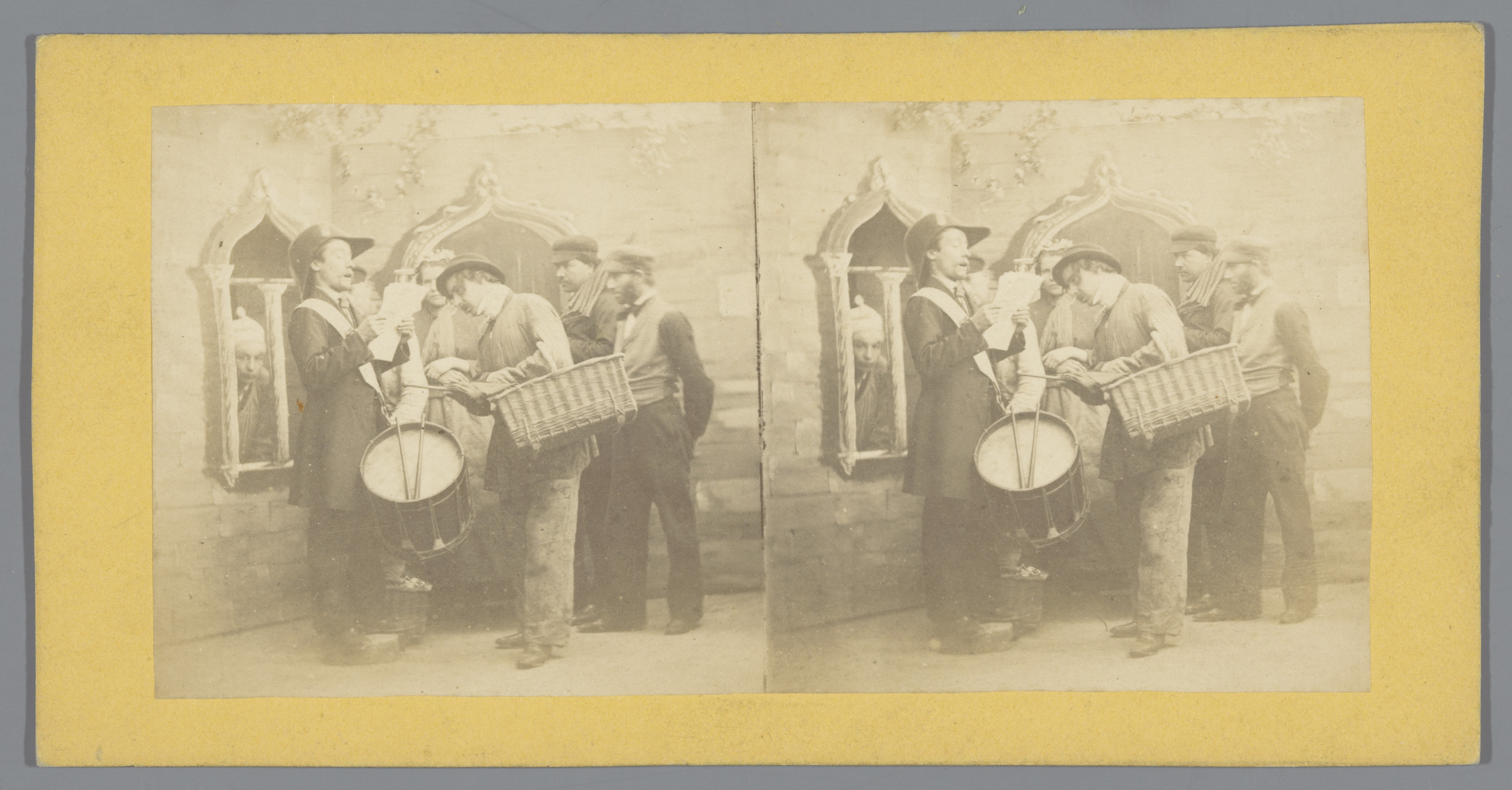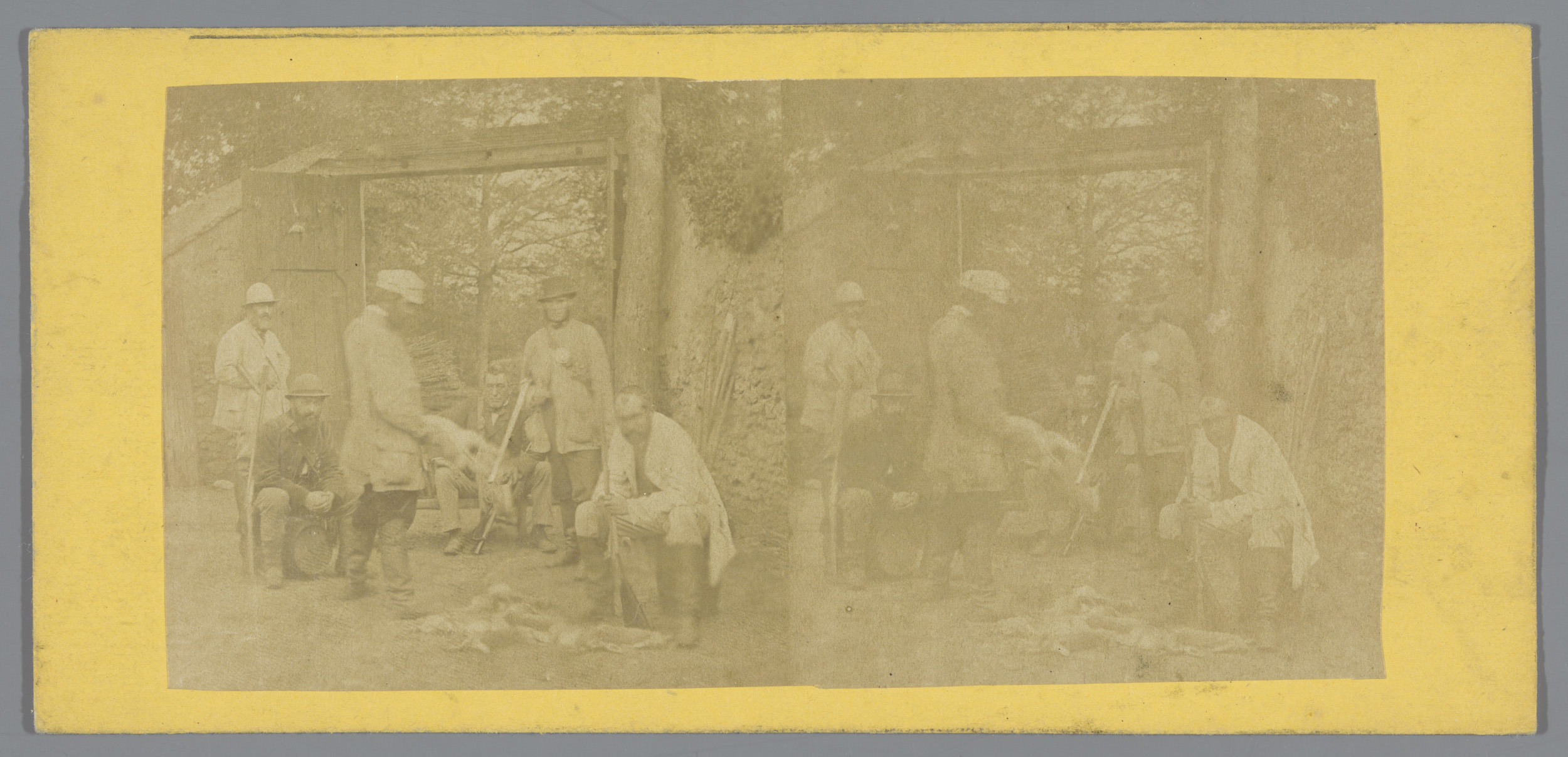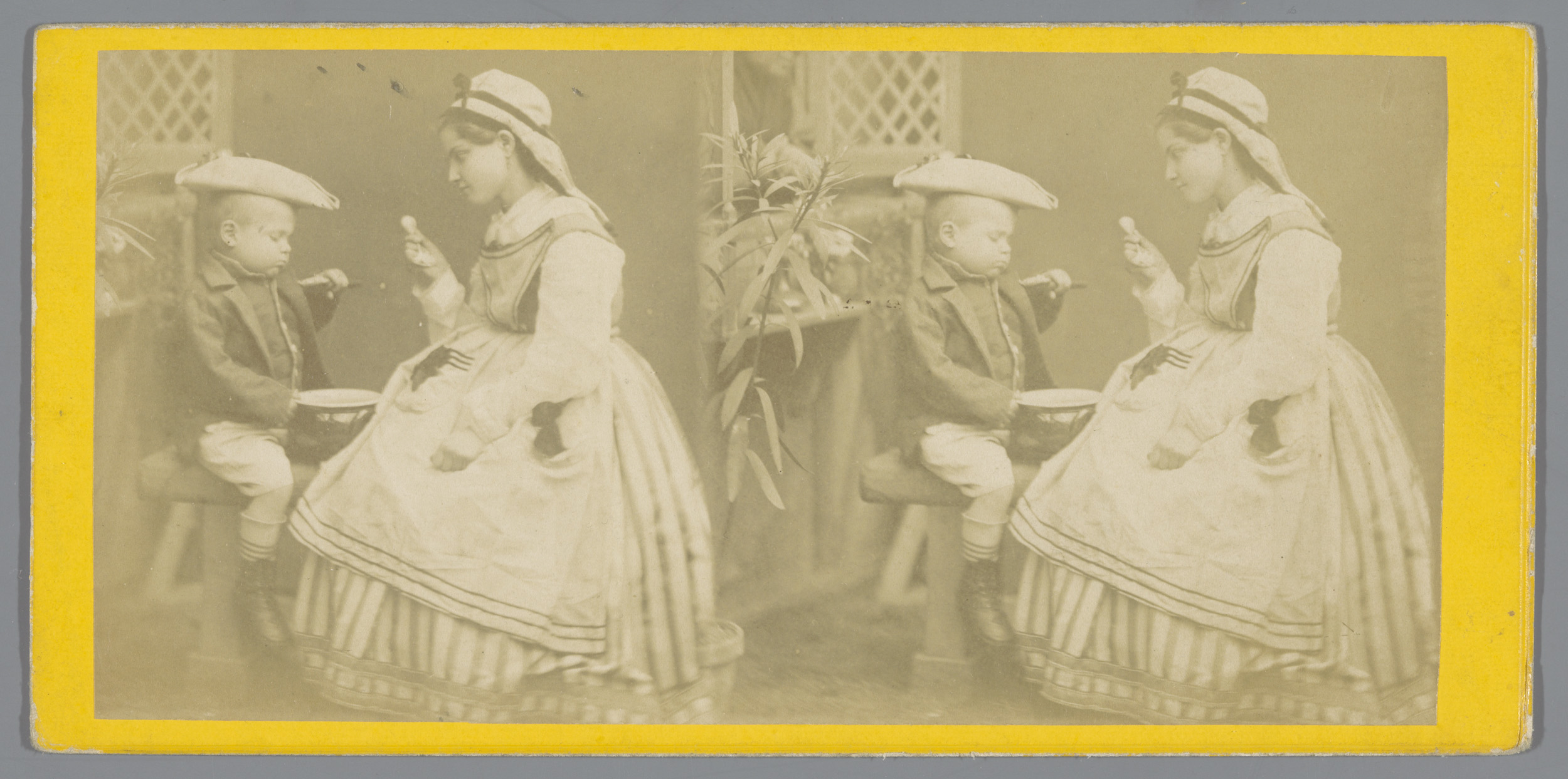 Meisjes rond een tafel waarop mogelijk een stereosco...