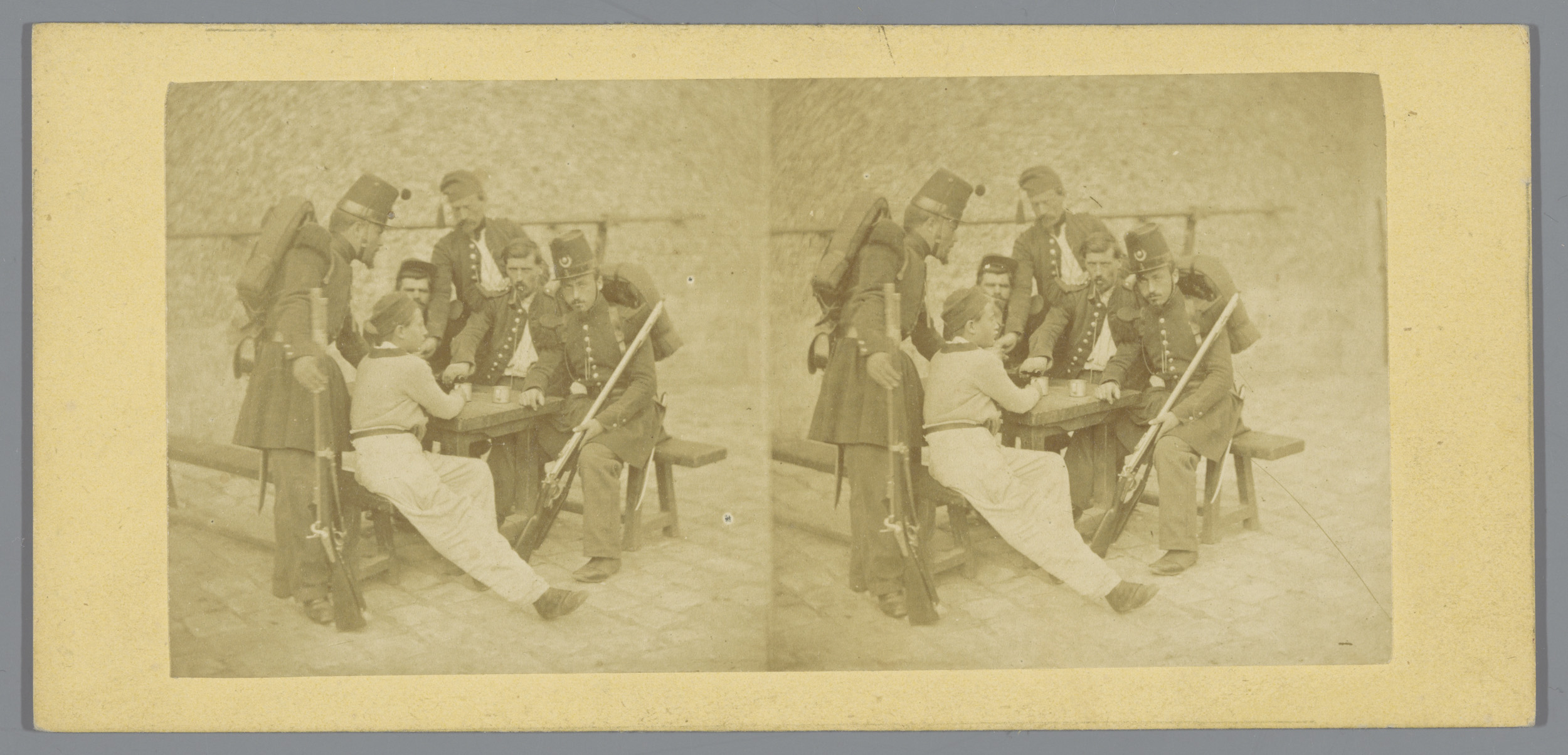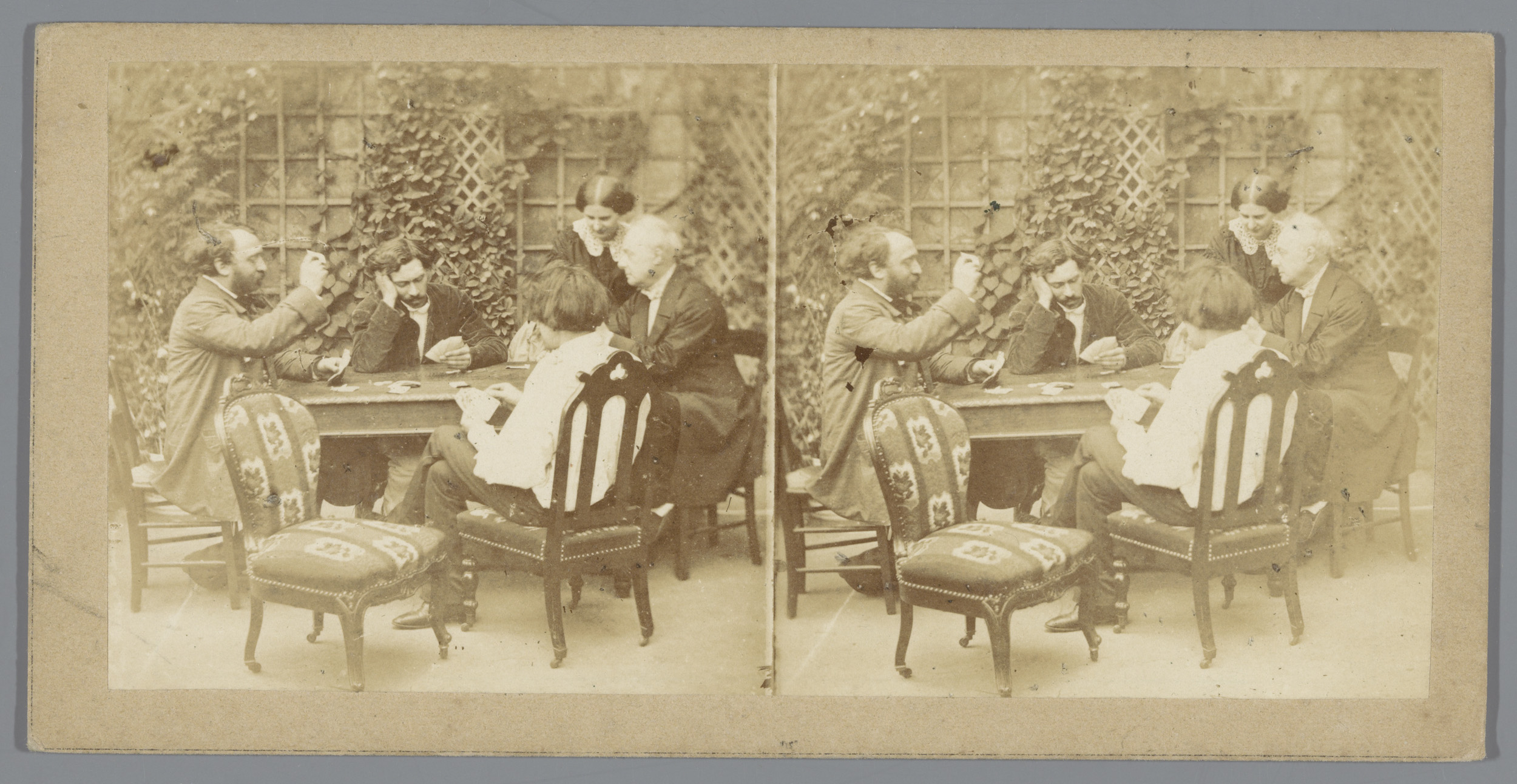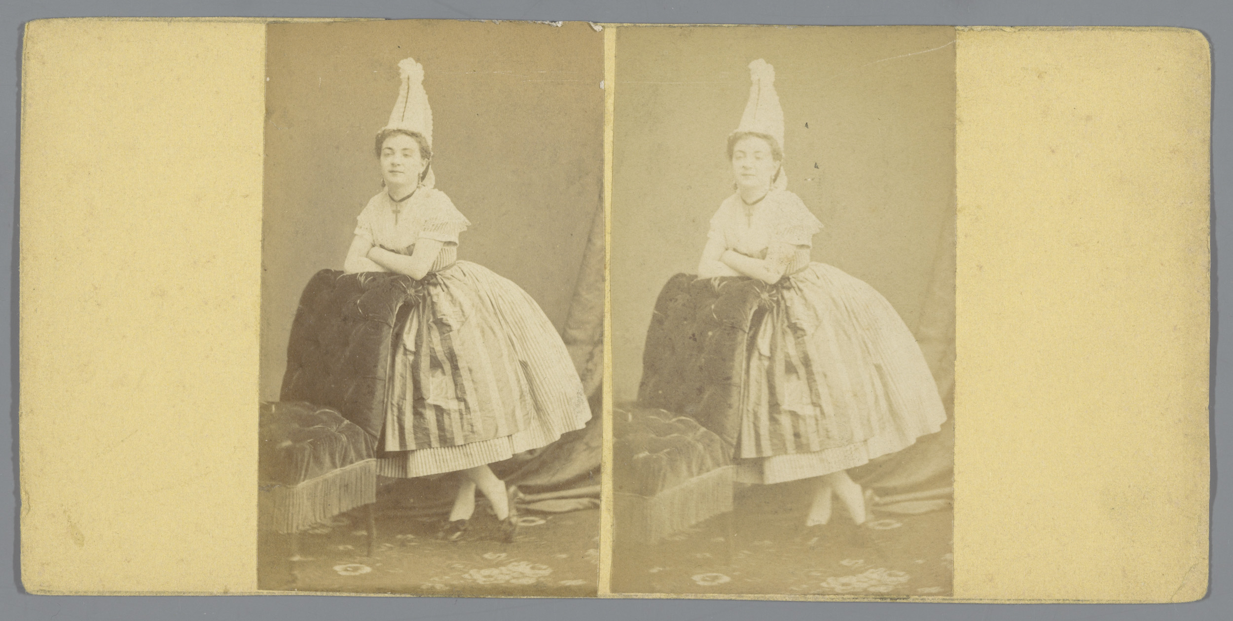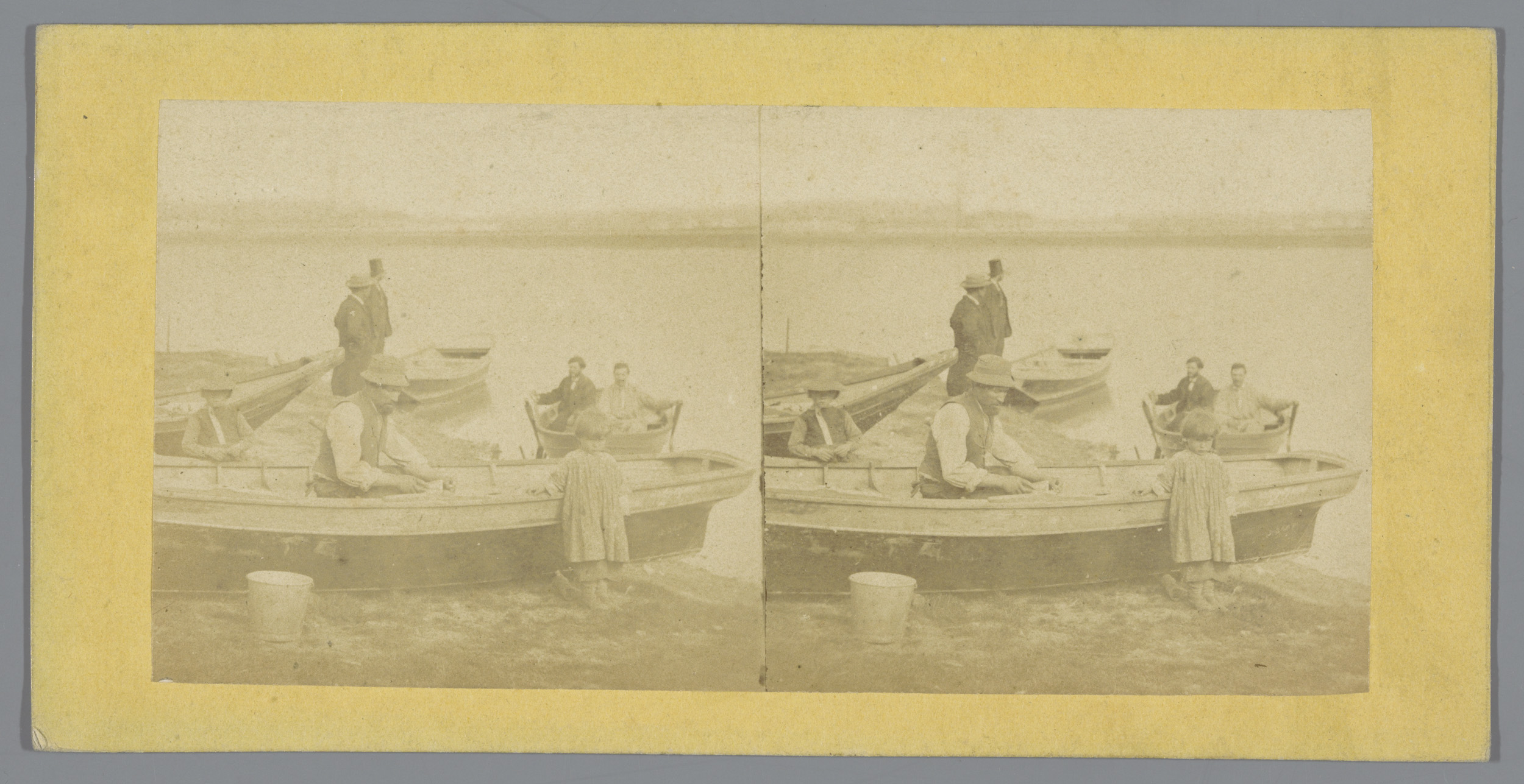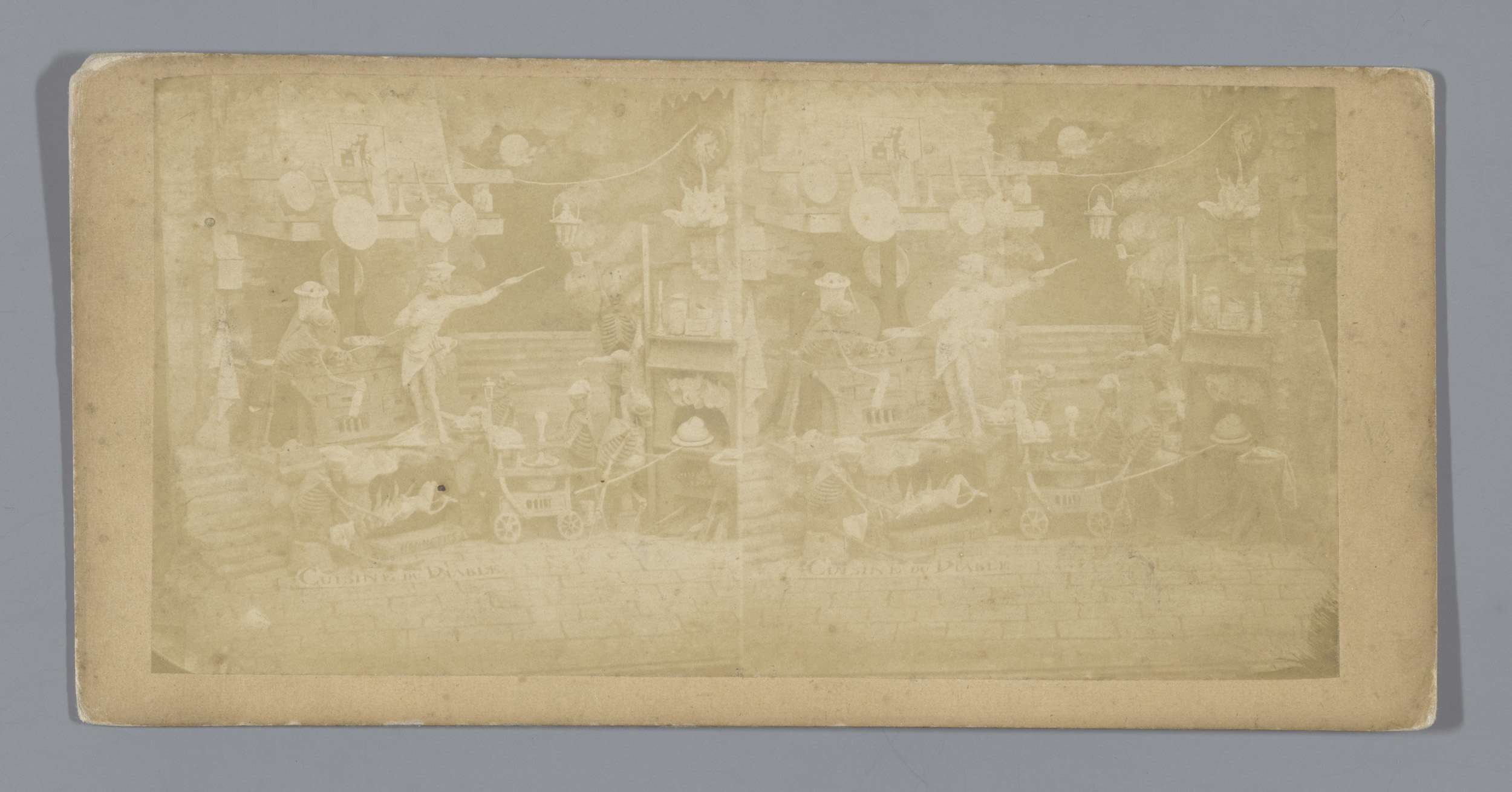 Meisjes rond een tafel waarop mogelijk een stereosco...