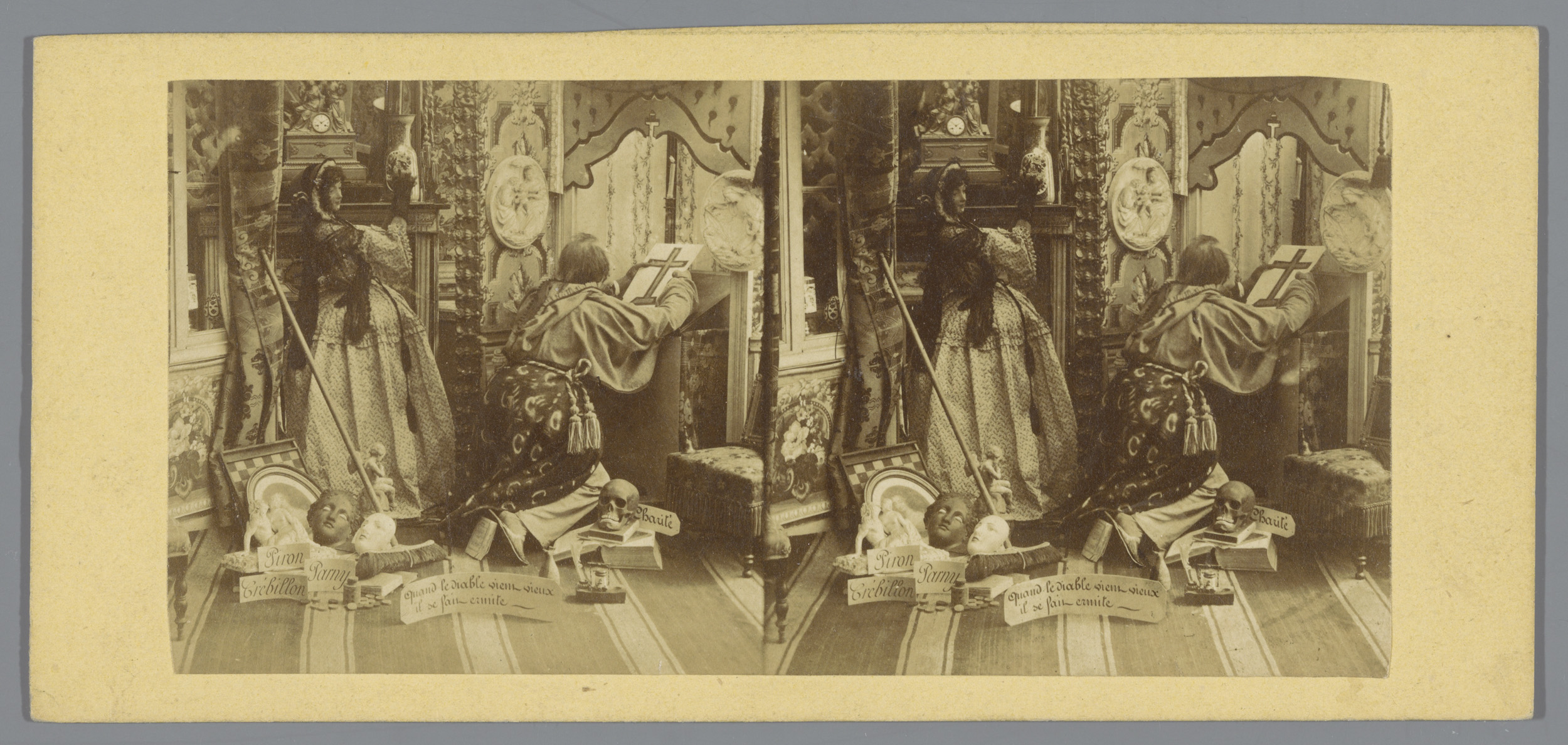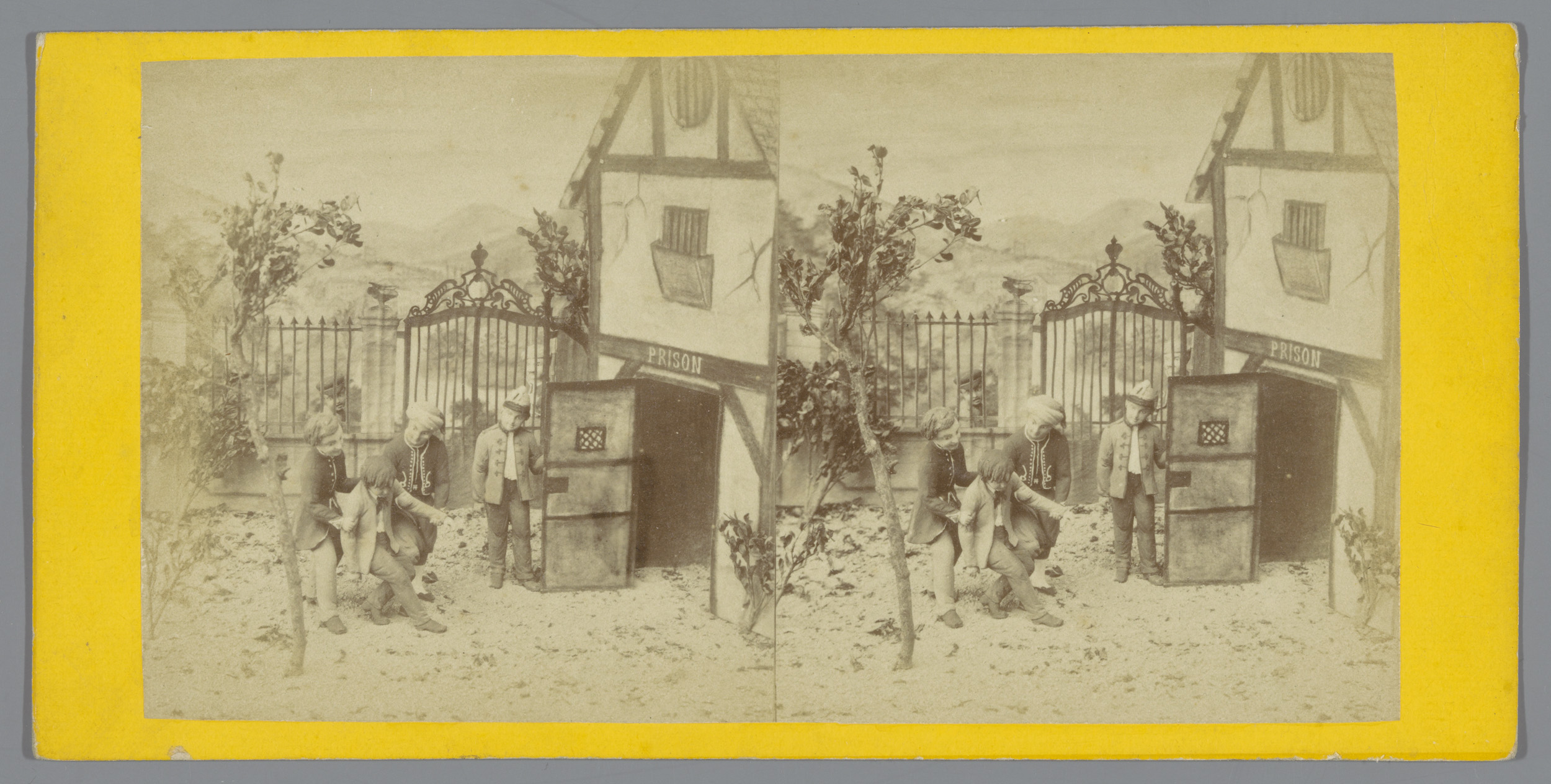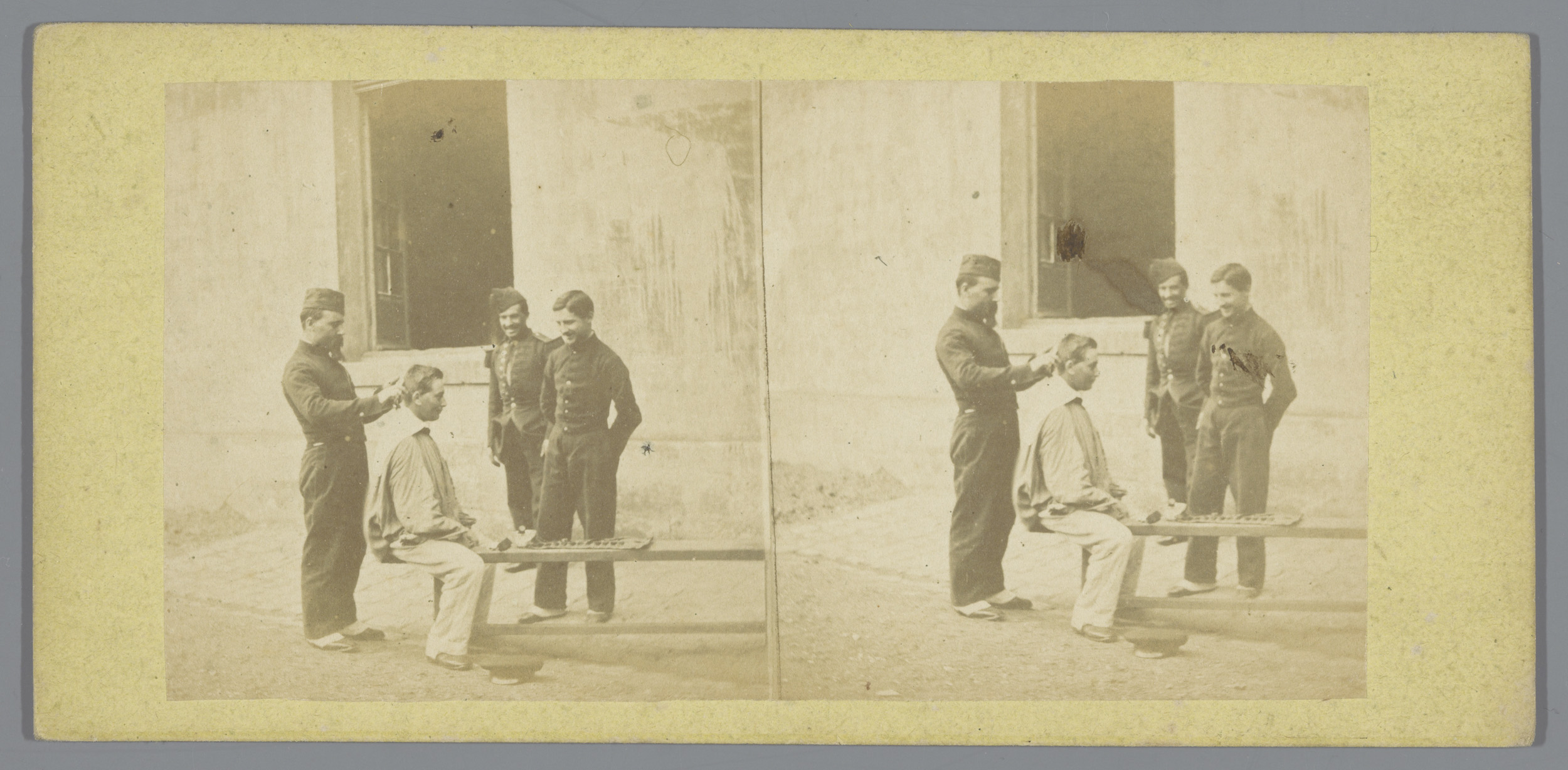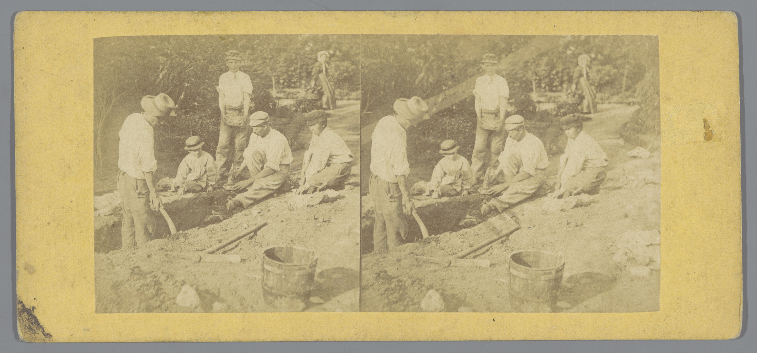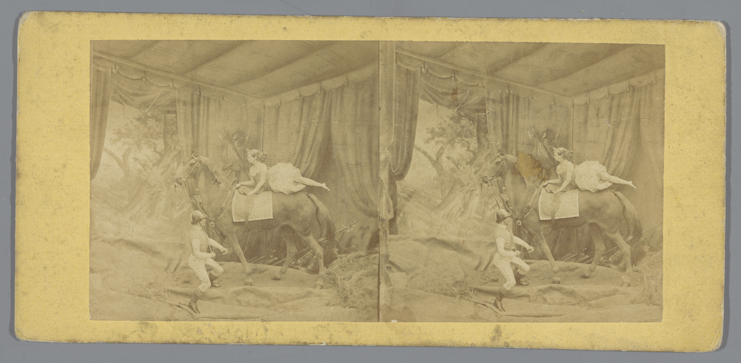 Meisjes rond een tafel waarop mogelijk een stereosco...