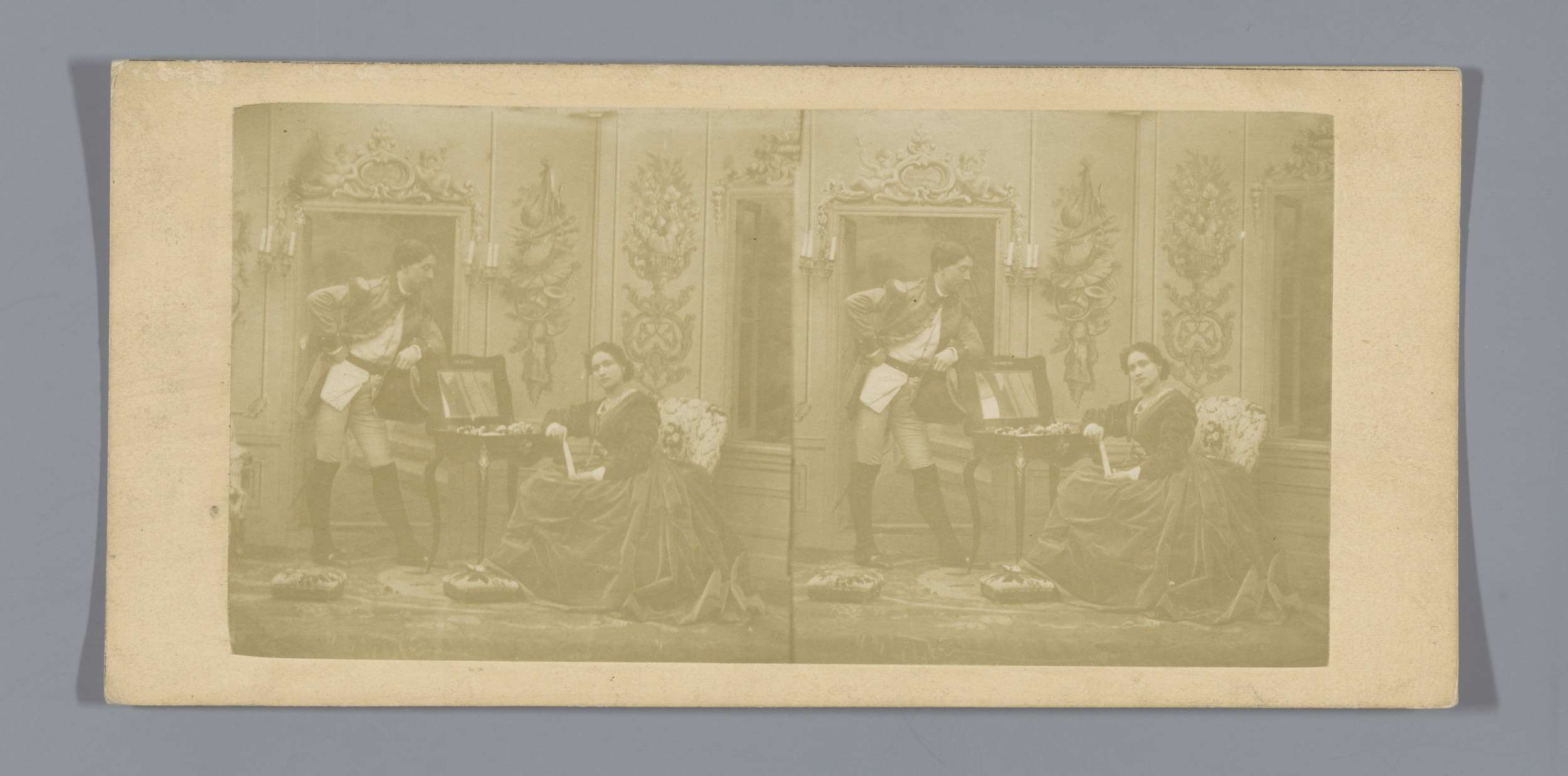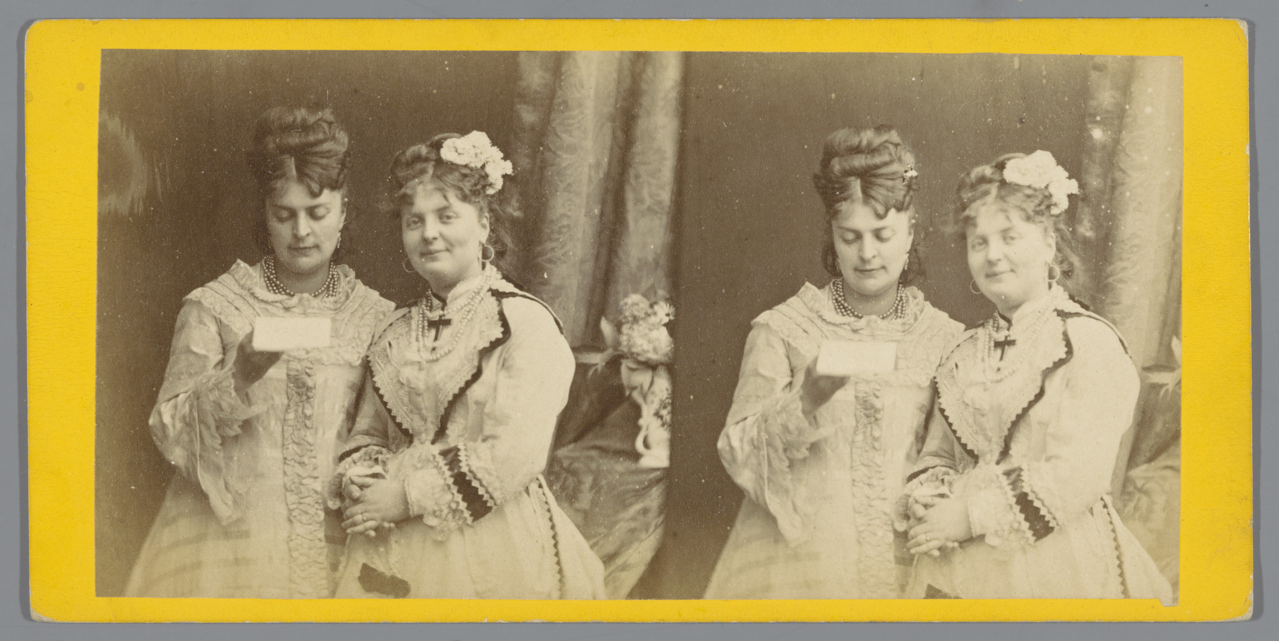 Twee vrouwen met een brief, de rechter vrouw kijkt n...