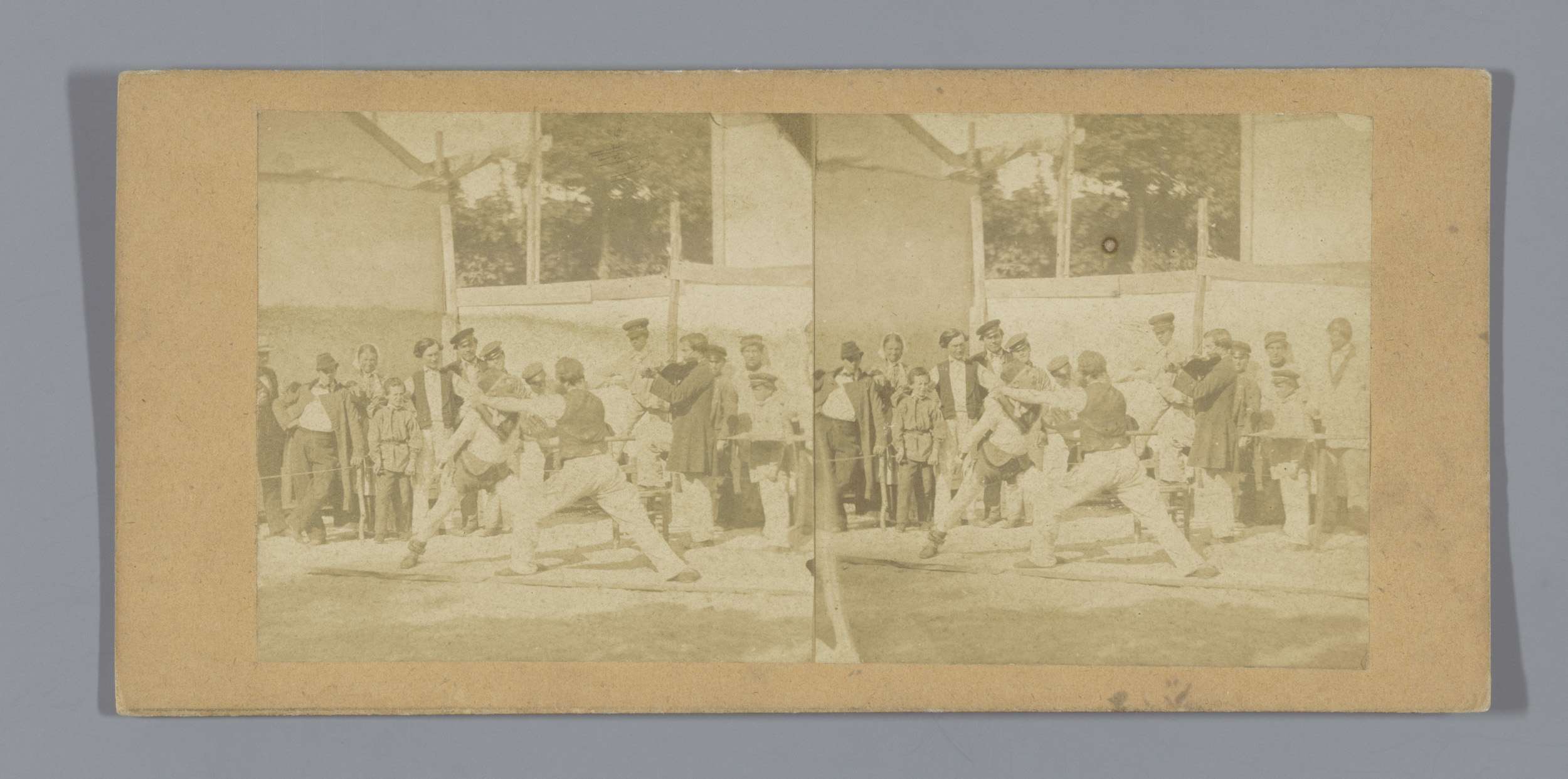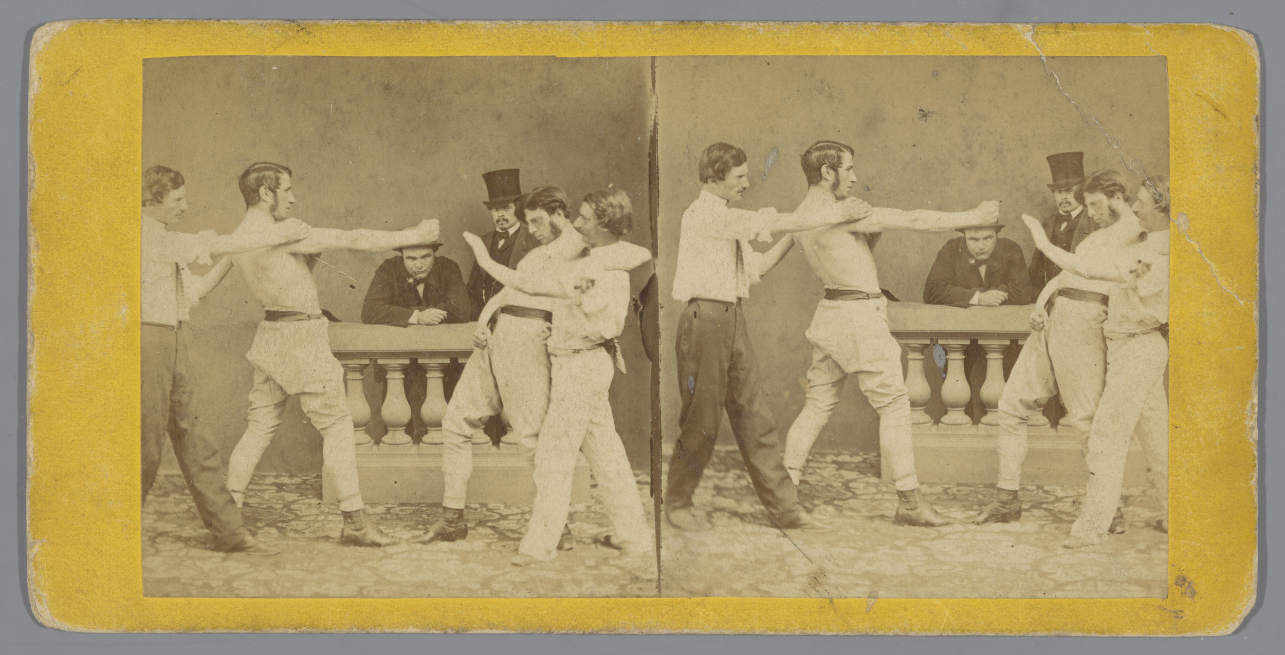 Geënsceneerd gevecht tussen twee mannen met er achte...