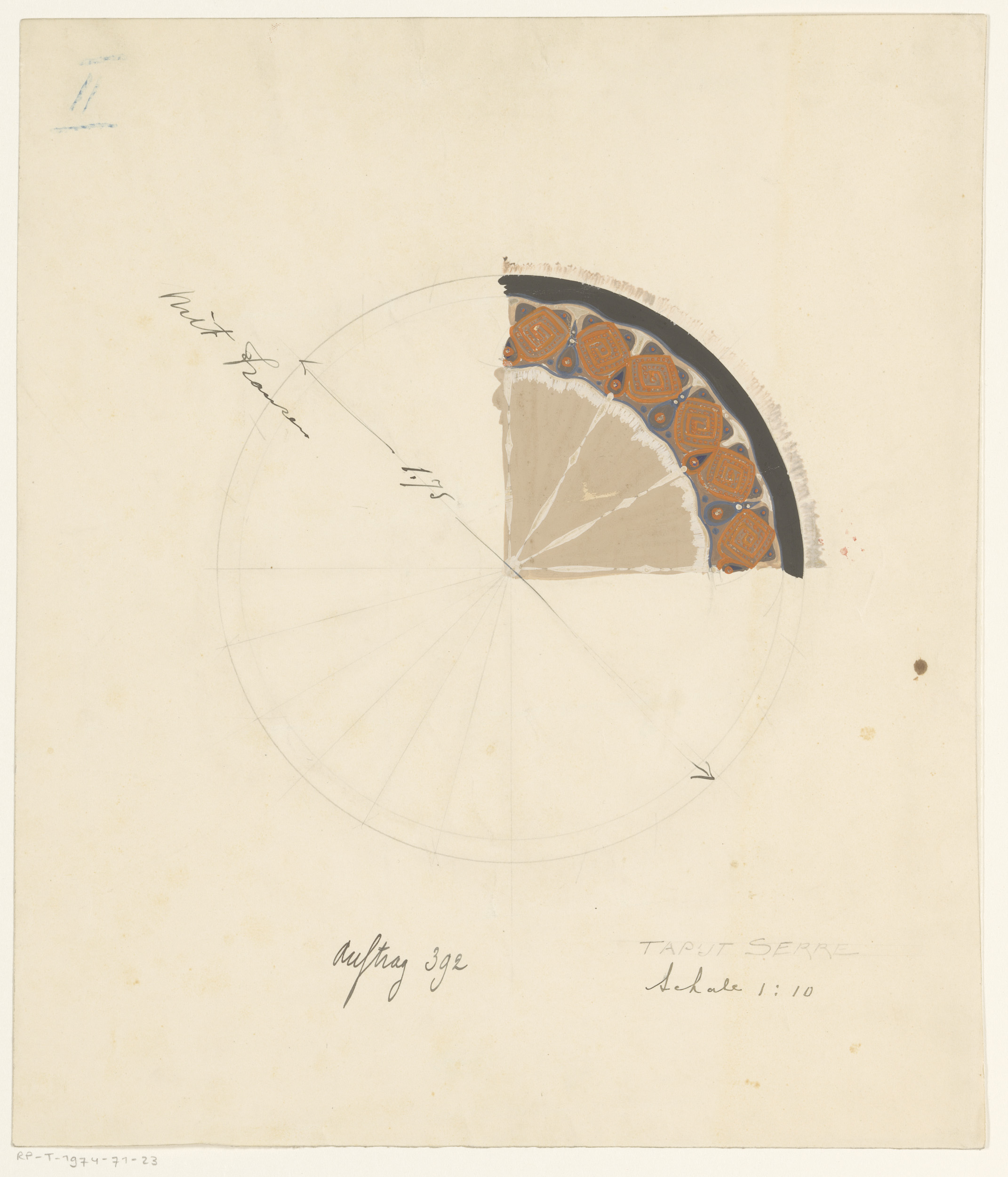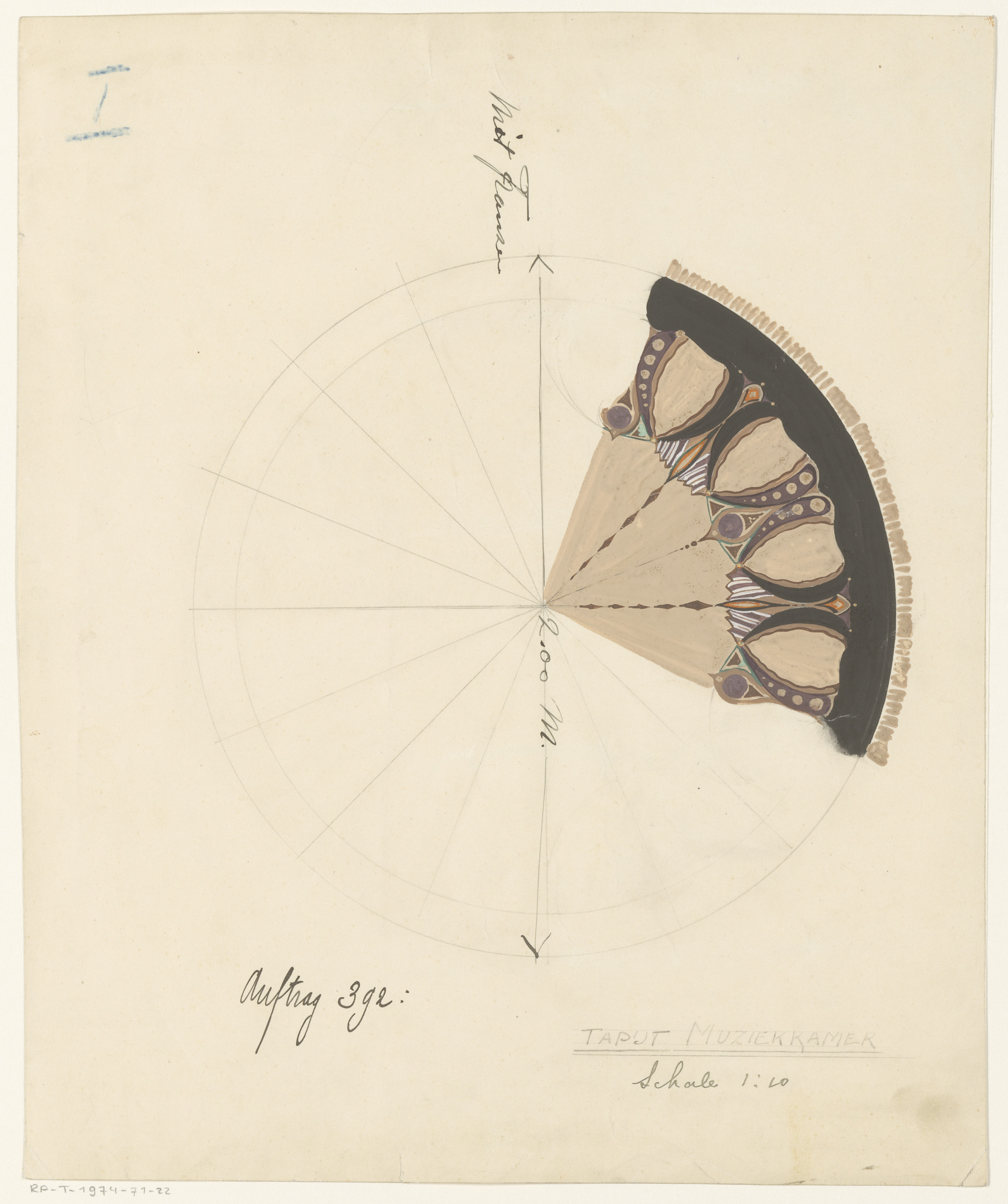 Ontwerp voor een rond tapijt voor een muziekkamer