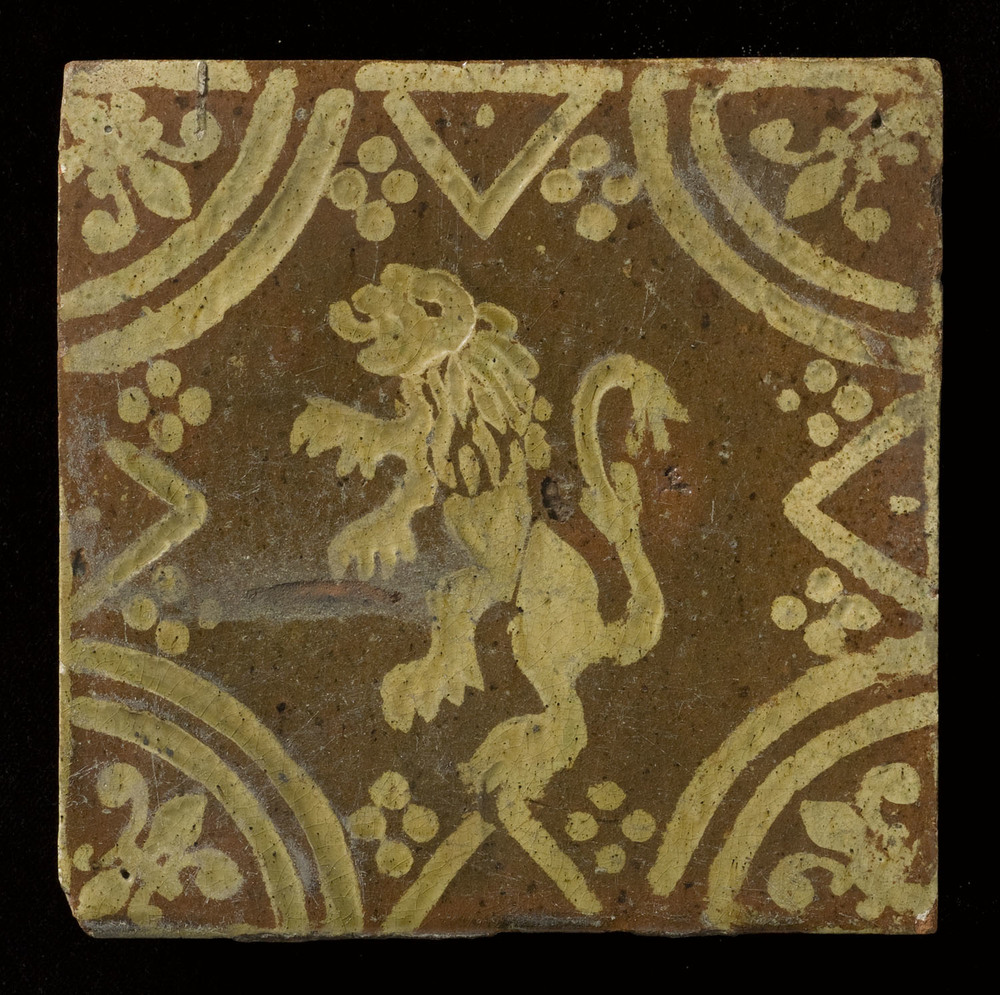 Tegel van keramiek met tinglazuur, voorstellende: he...
