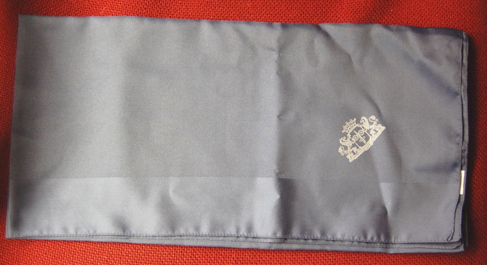 damessjaal. Blauw vierkant model met stadswapen vm. ...