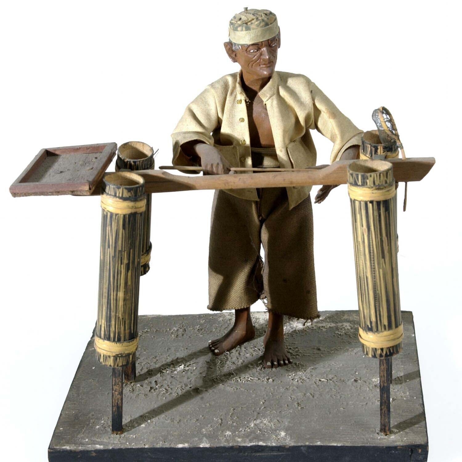 Gevlochten sigarenkoker van pandanblad met daarop vo...