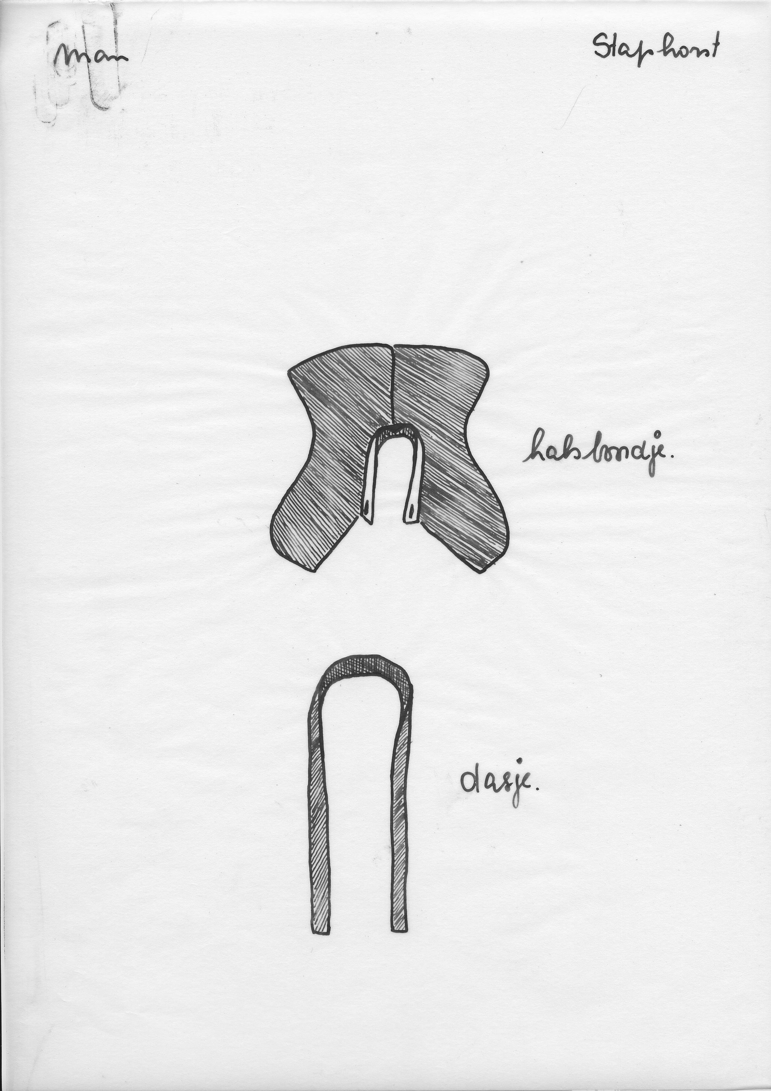 Tekening van een hemdrok en knoop, Staphorst (opmeti...
