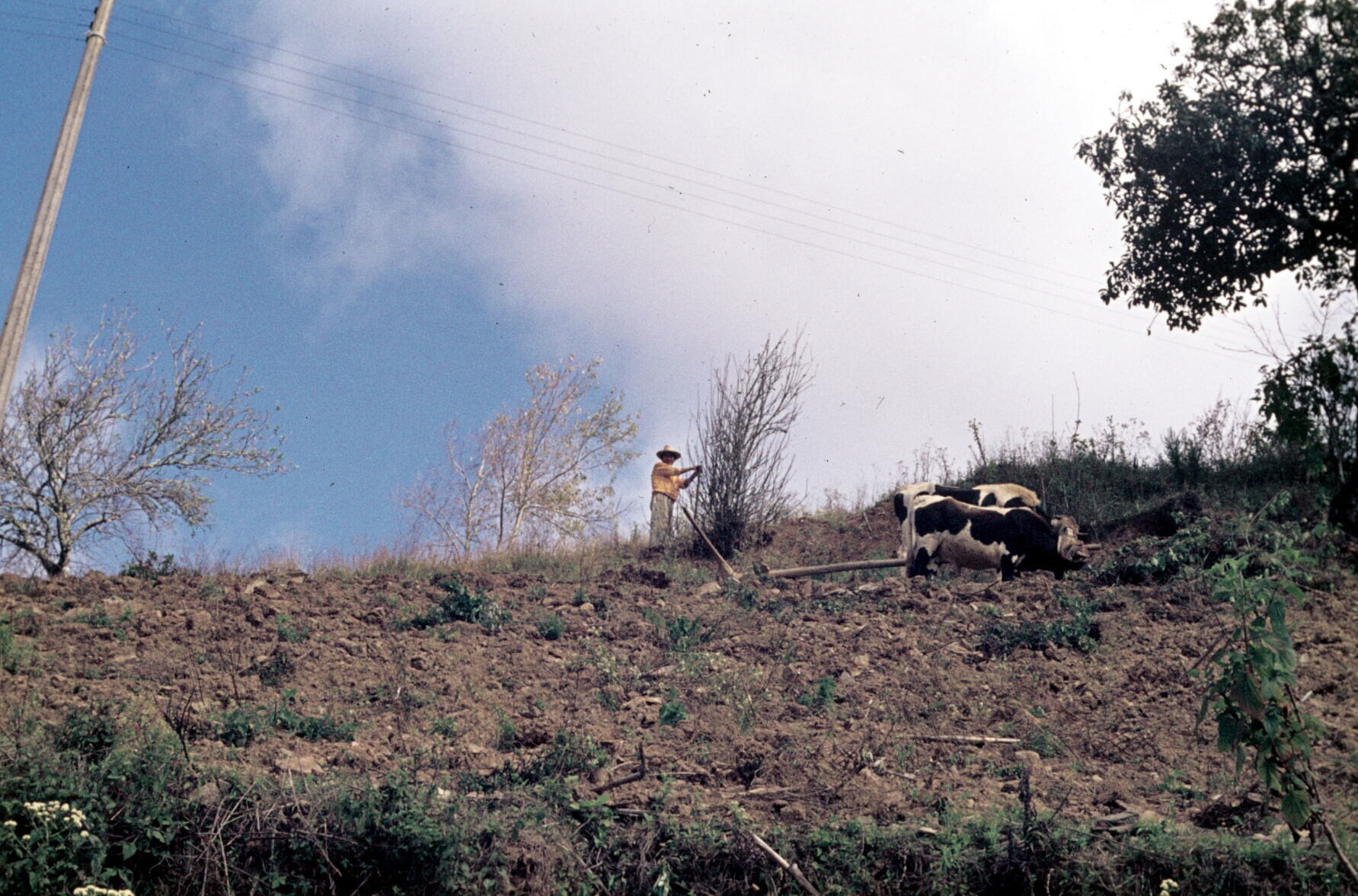 mannen en vee bij het ploegen