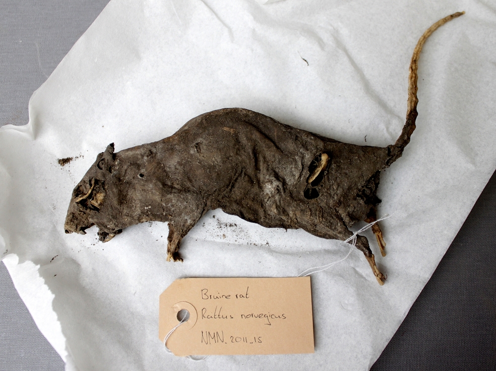 Bruine rat; gemummificeerd