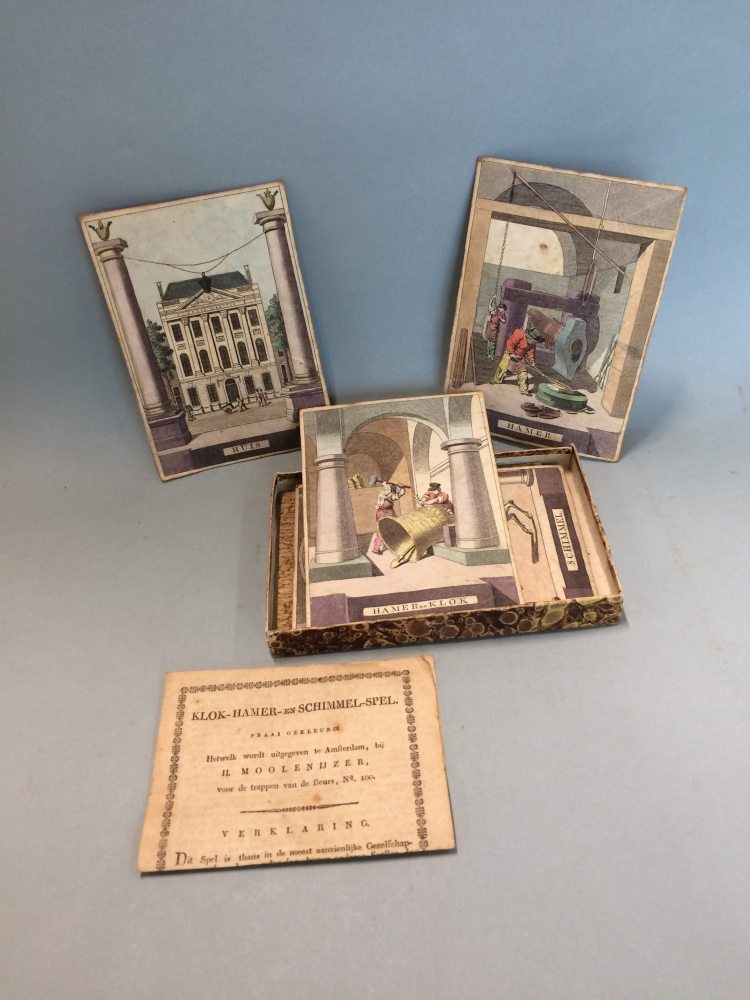 Klok-, hamer en schimmelspel in kartonnen doos met v...