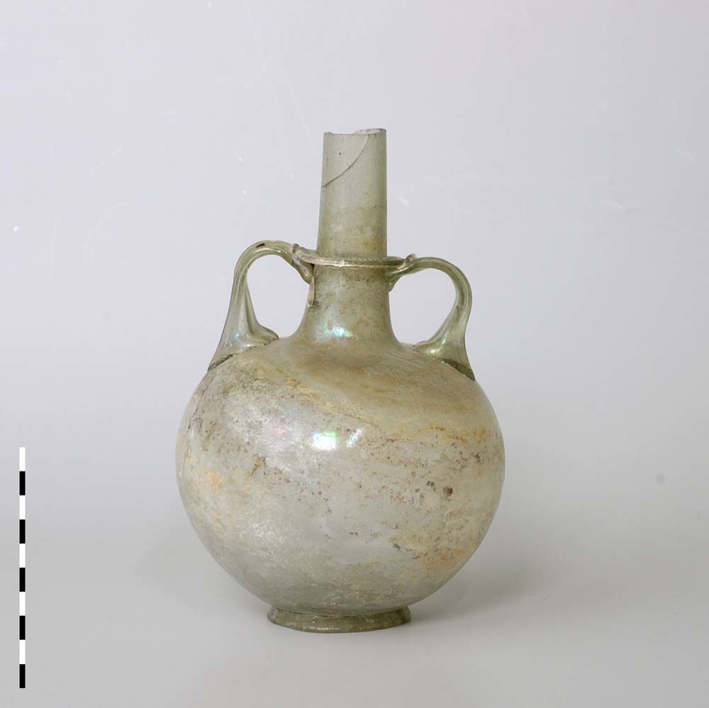 Fles van helder geelgroen glas uit de Romeinse tijd