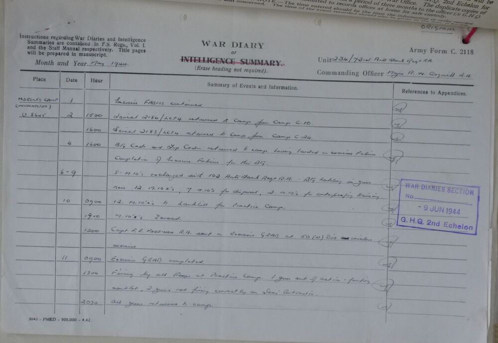 War Diary of 234 Anti-Tank Battery, april, mei en ok...