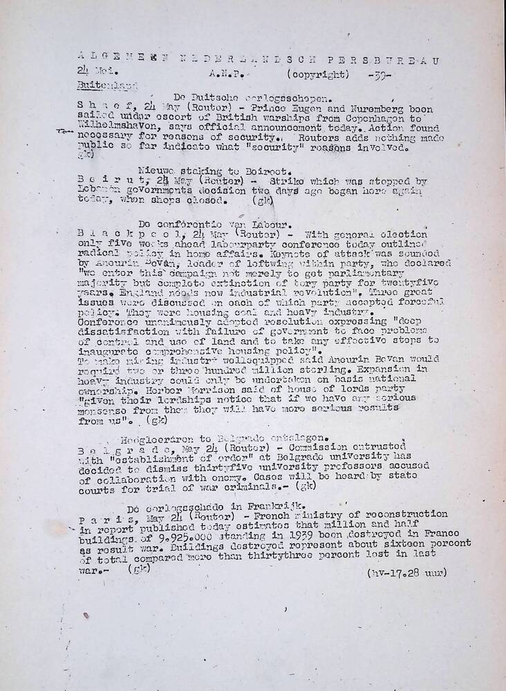 Algemeen Nederlandsch Persbureau, mededelingen, 24 m...