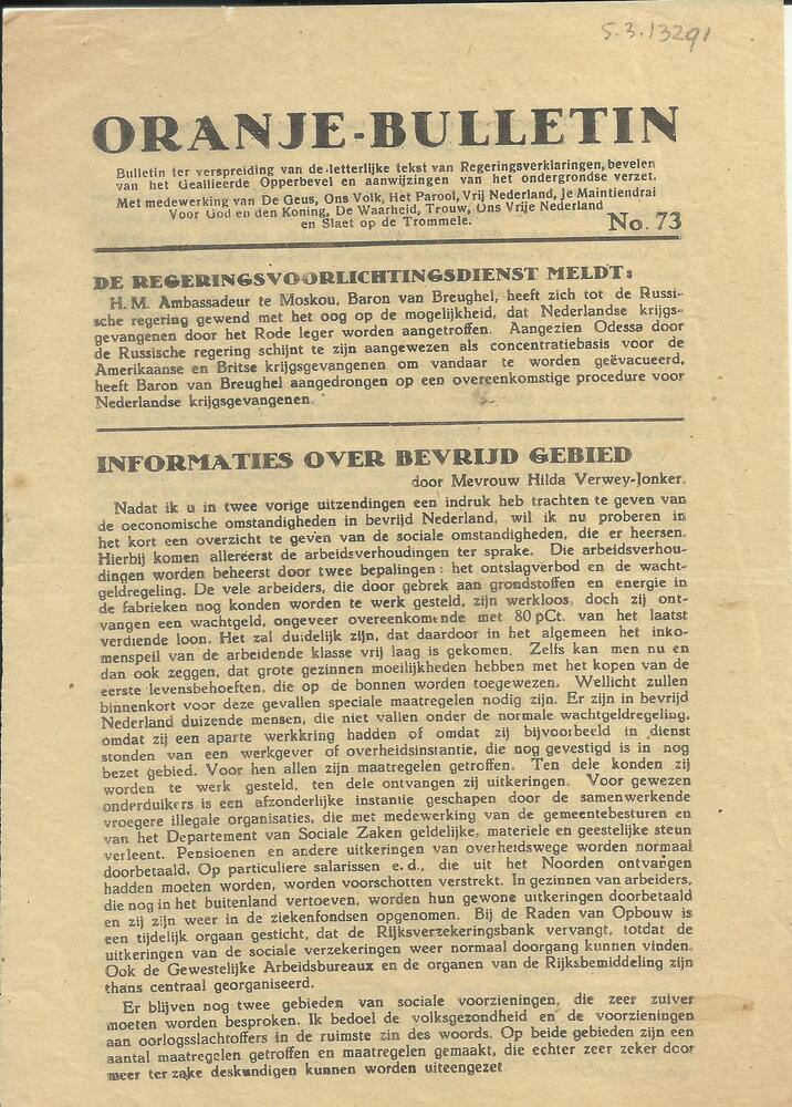 Oranje-bulletin, no. 73