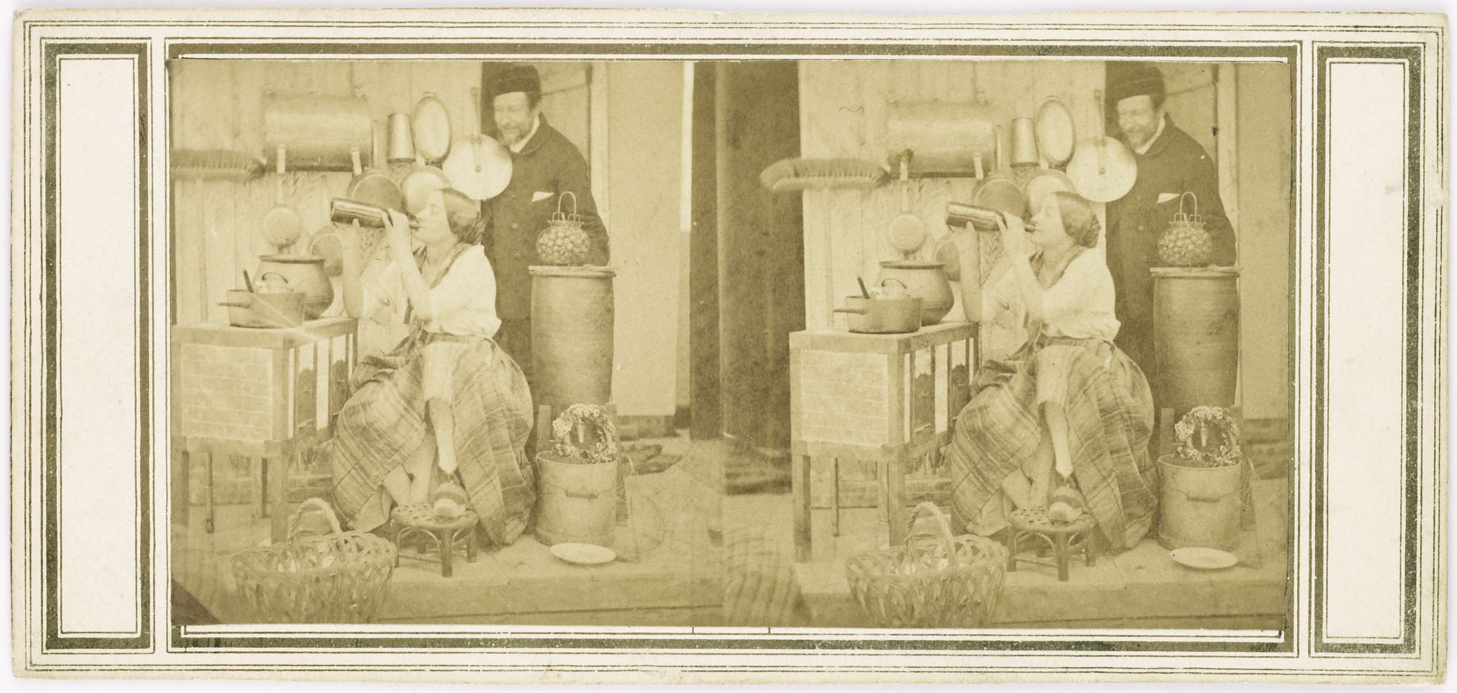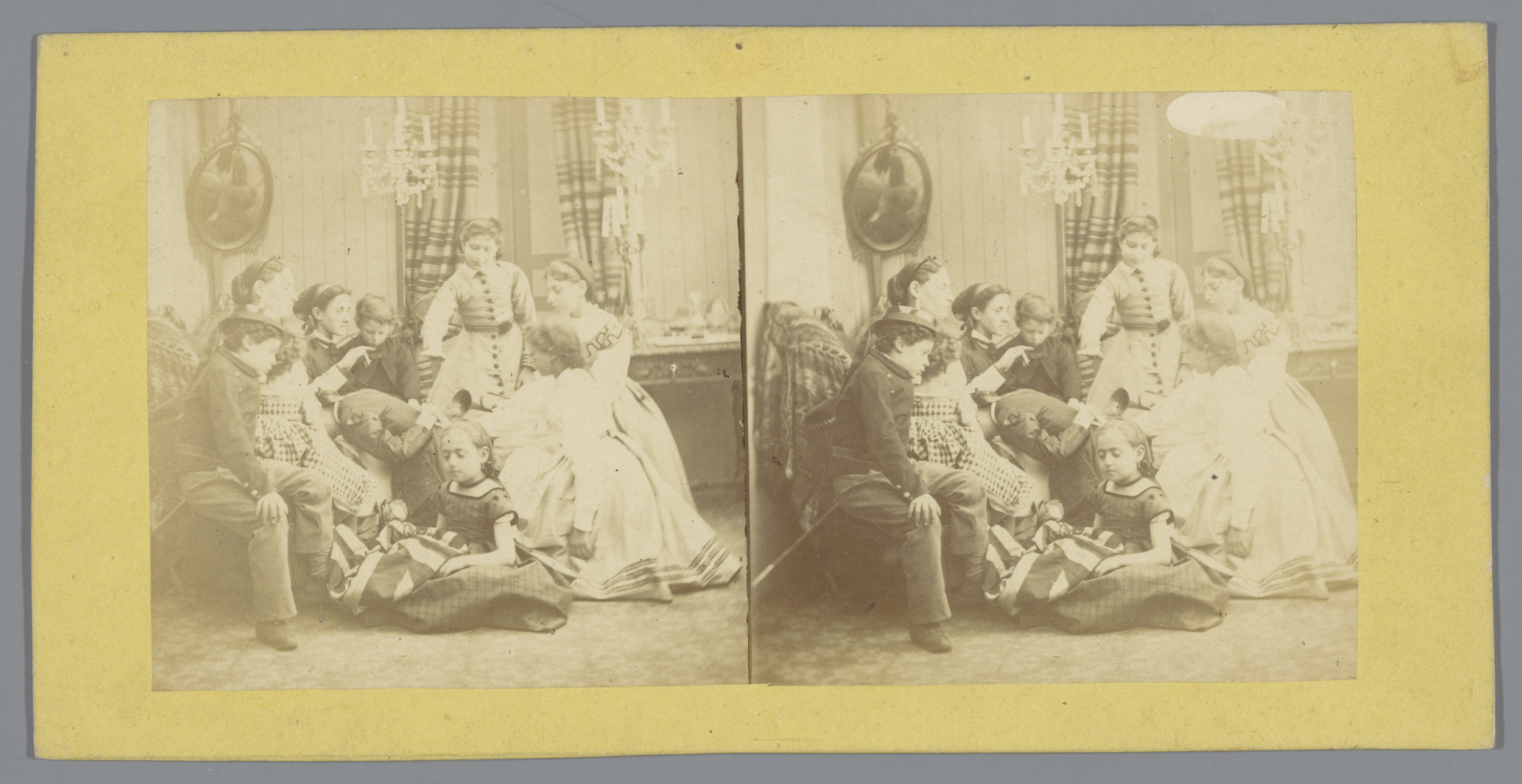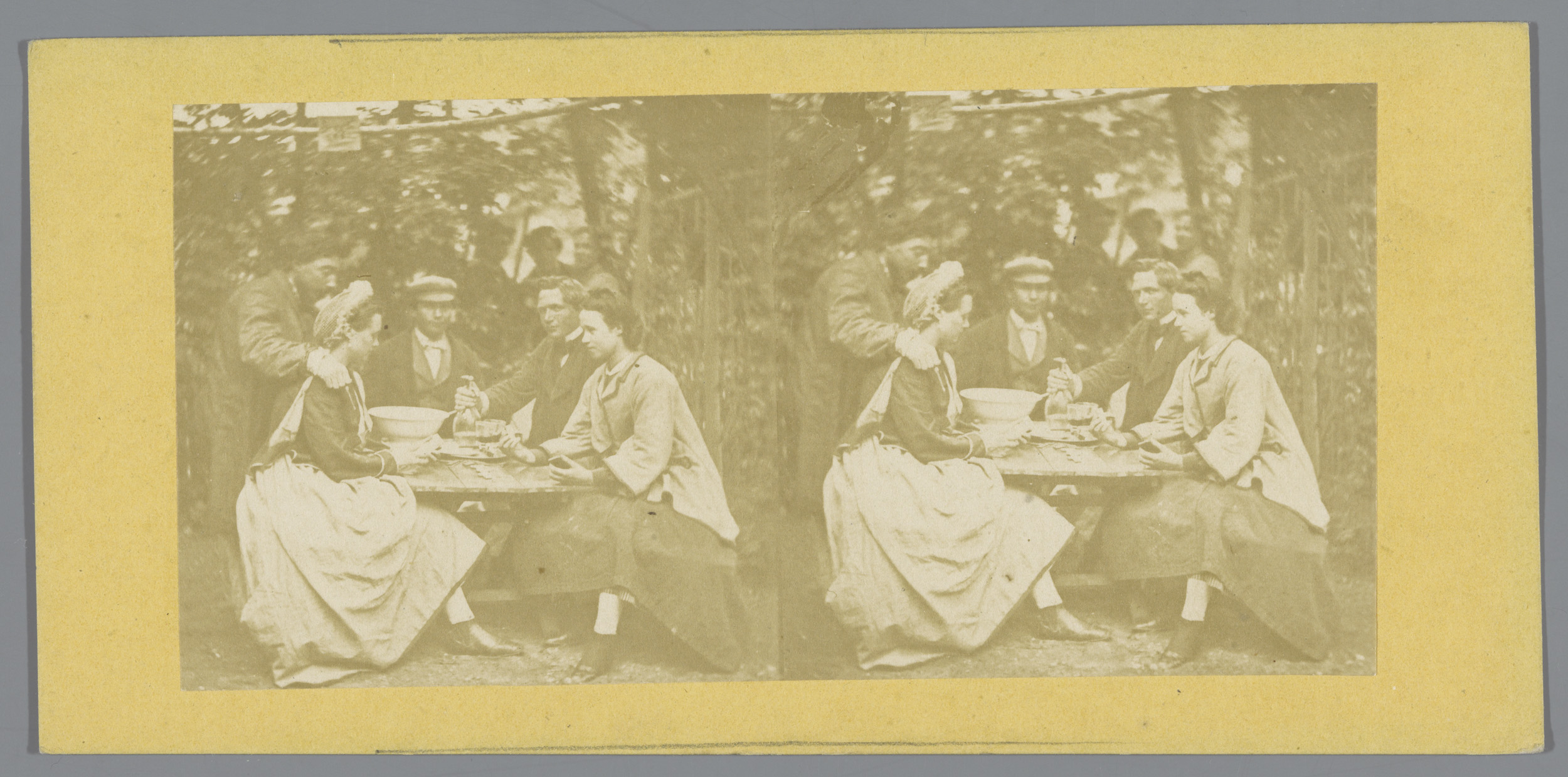 Musicerend gezelschap, meisje kijkt toe