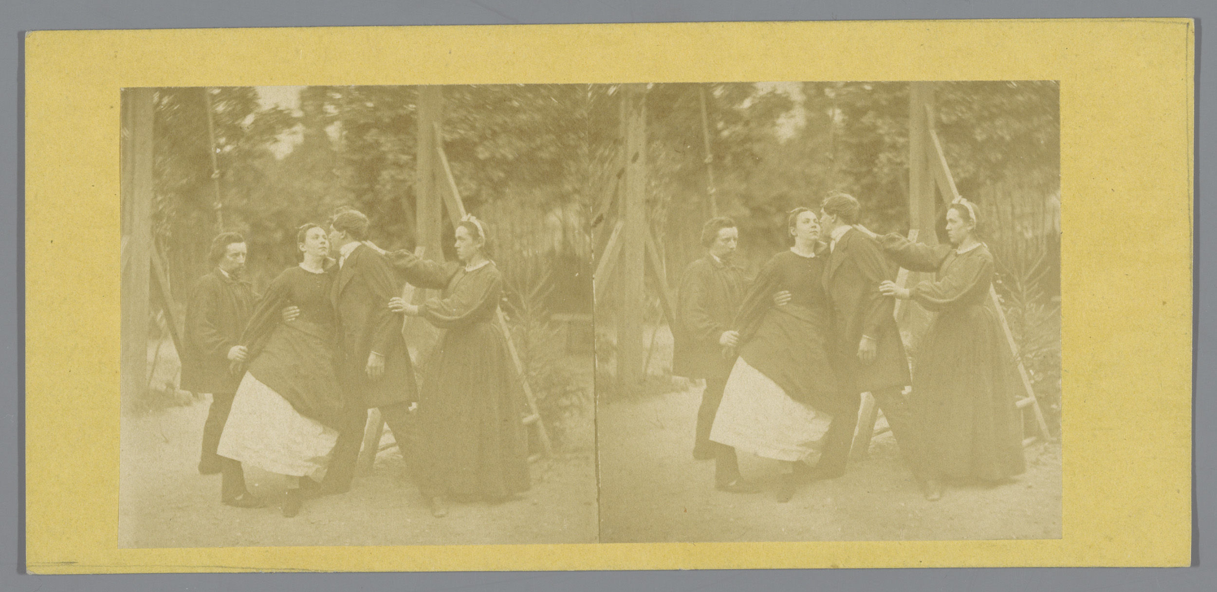 Twee jongens spelen met crinolinerok