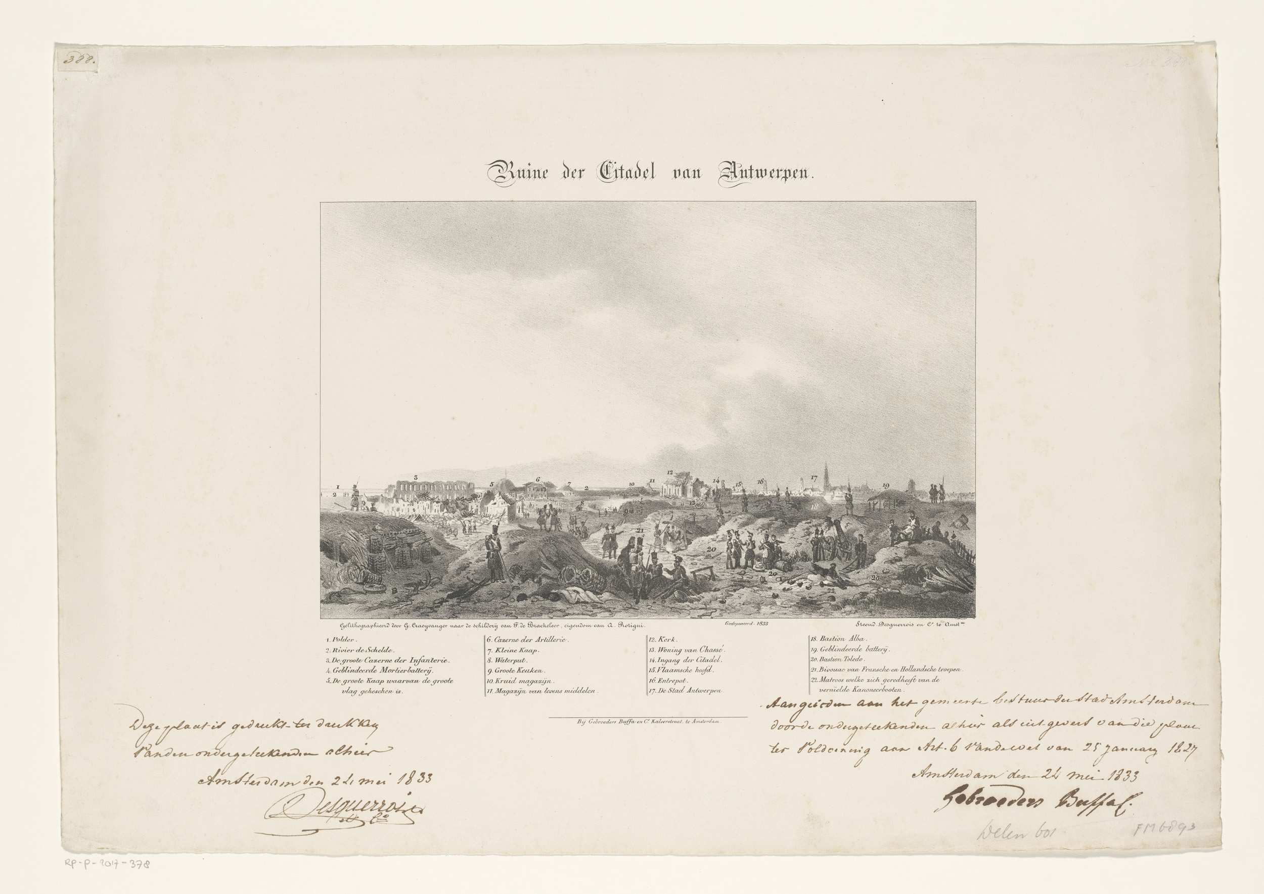 Gezicht op de ruïnes van de Citadel van Antwerpen, 1832