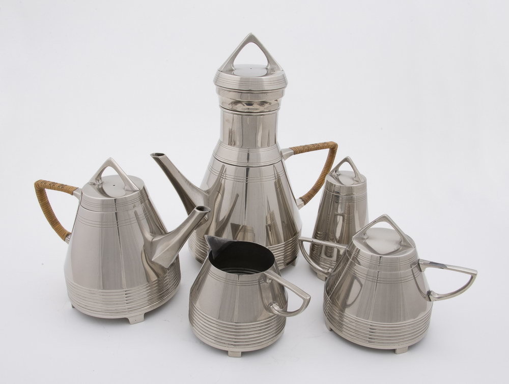 Theeservies van vernikkeld metaal, vervaardigd door ...