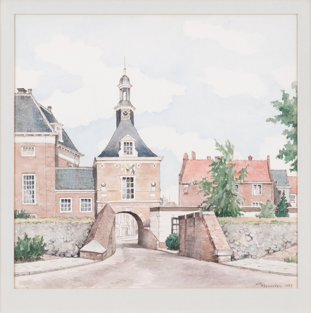 Aquarel voorstellende de Waterpoort en Grote Societe...