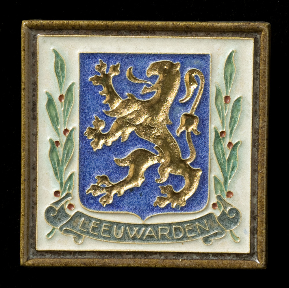 Tegel in cloisonné-techniek, met voorstelling: wapen...