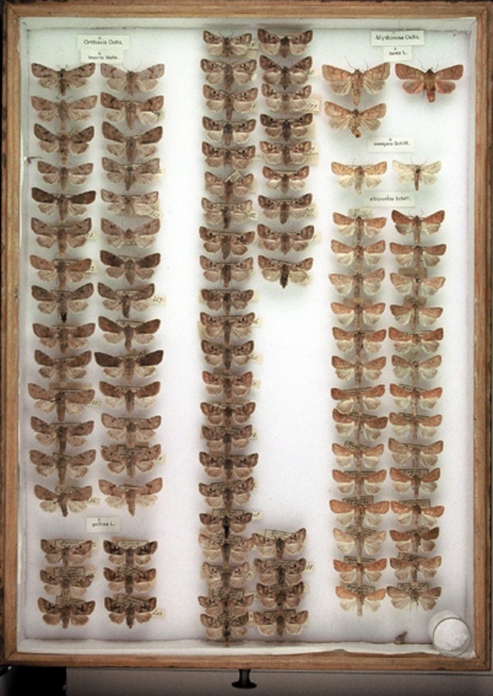 Vlinderdoos 052 van 106 van hout en glas met daarin ...