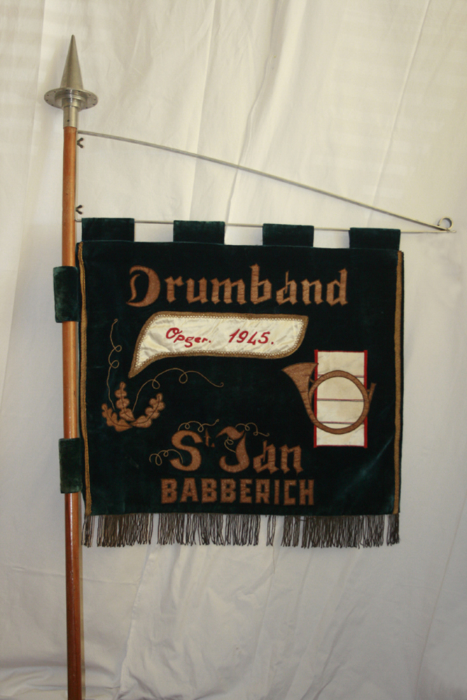 Stok en vaandel van 'Drumband St. Jan' van hout en f...