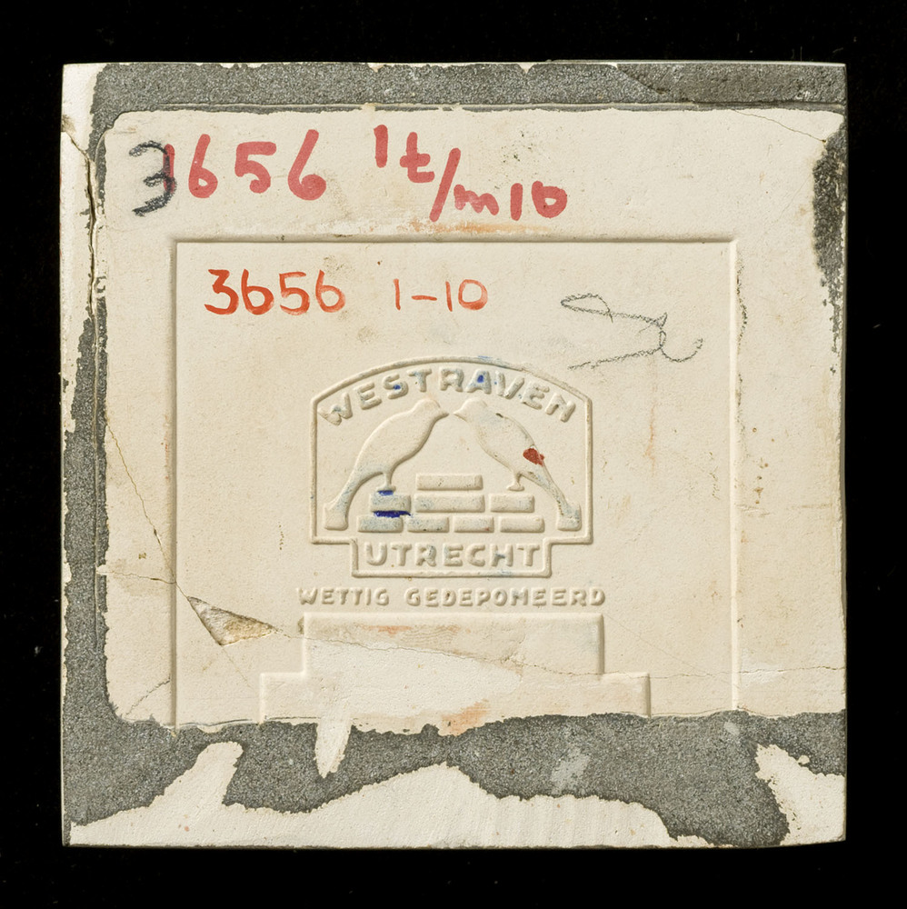 tegel van aardewerk met tinglazuur, voorstellende: o...