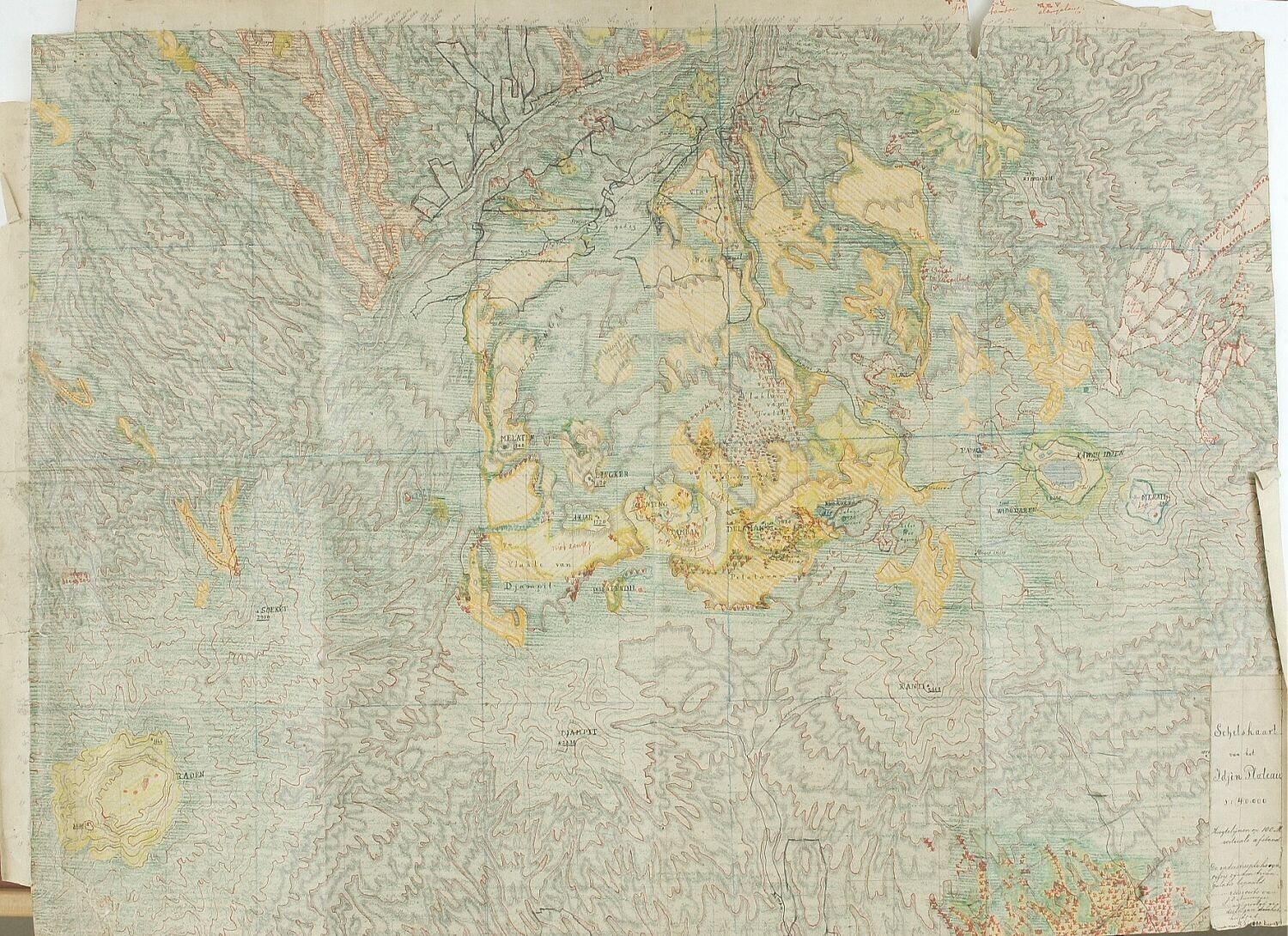 Gekleurde schetskaart van het Ijen-plateau in schaal...