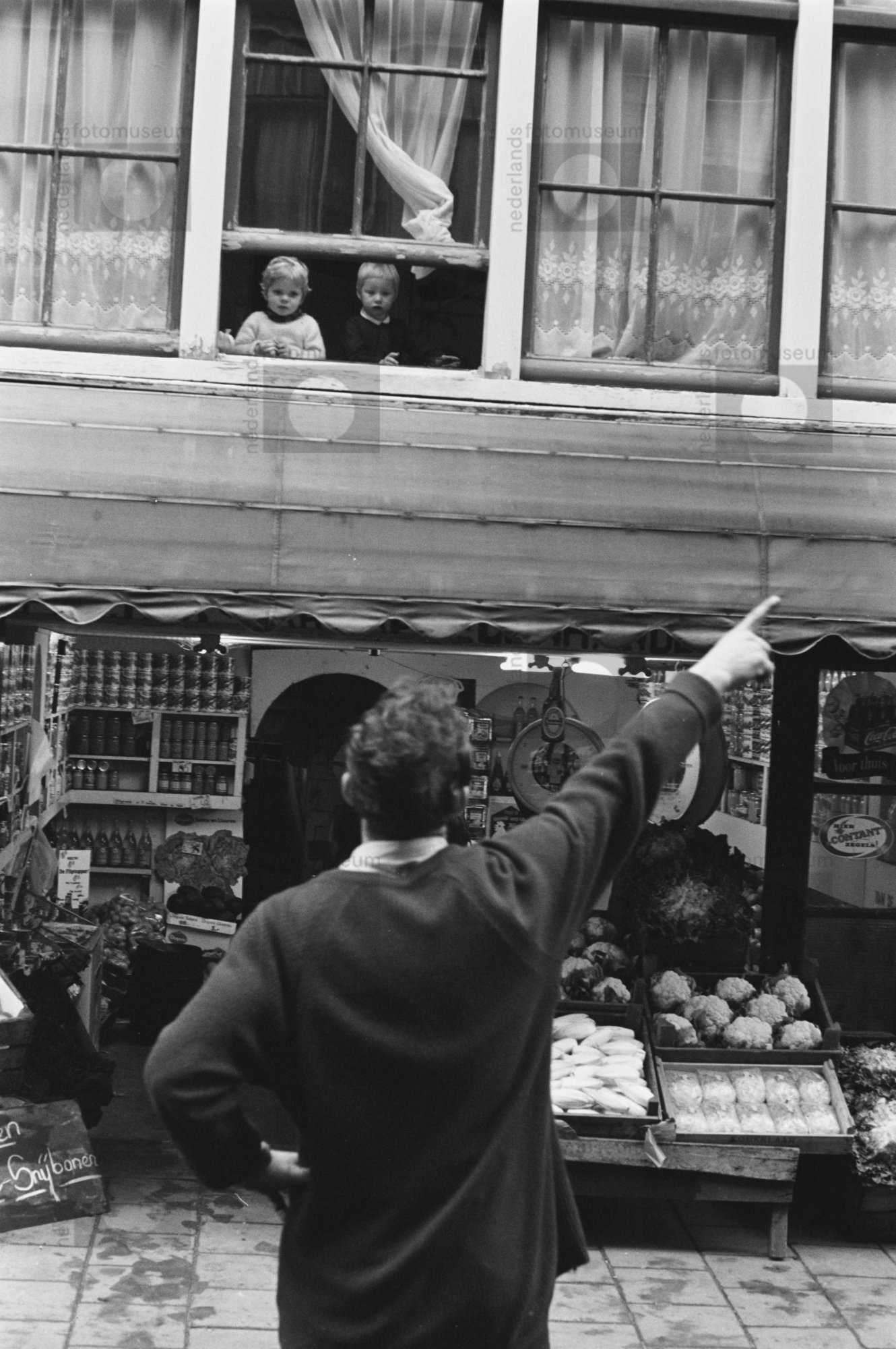 Man wijst gebiedend naar twee kleine kinderen die in...