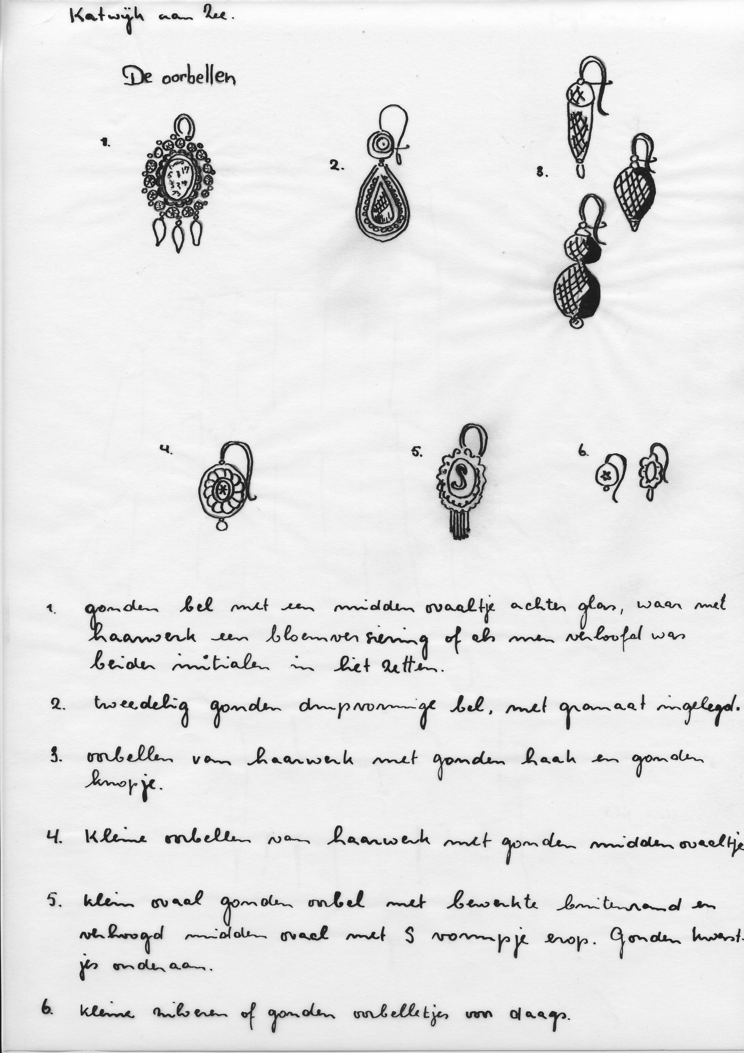 Tekening van oorbellen, Katwijk aan Zee (tekening)